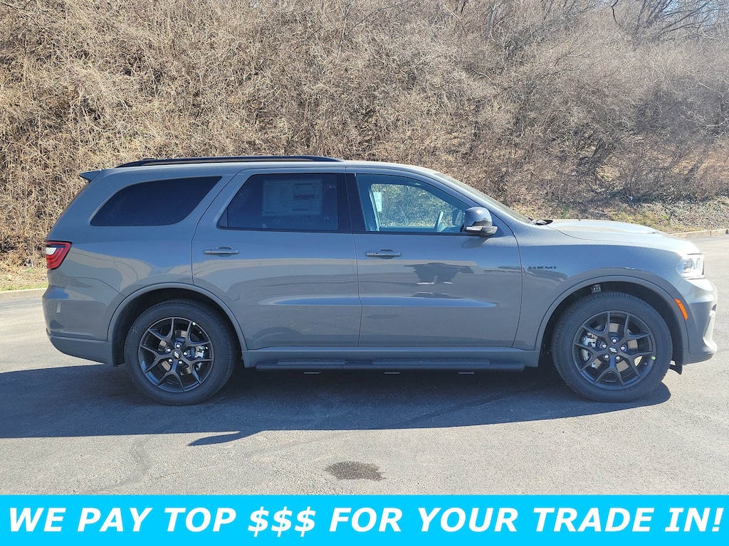 Boasts 21 Highway MPG and 14 City MPG! This Dodge Durango boasts a Regular Unleaded V-8 5.7 L/345 engine powering this Automatic transmission. WHEELS: 20" X 8" BLACK NOISE SPLIT 5-SPOKE, TRANSMISSION: 8-SPEED AUTOMATIC (8HP70) (STD), TIRES: 265/50R20 BSW AS LRR (STD).