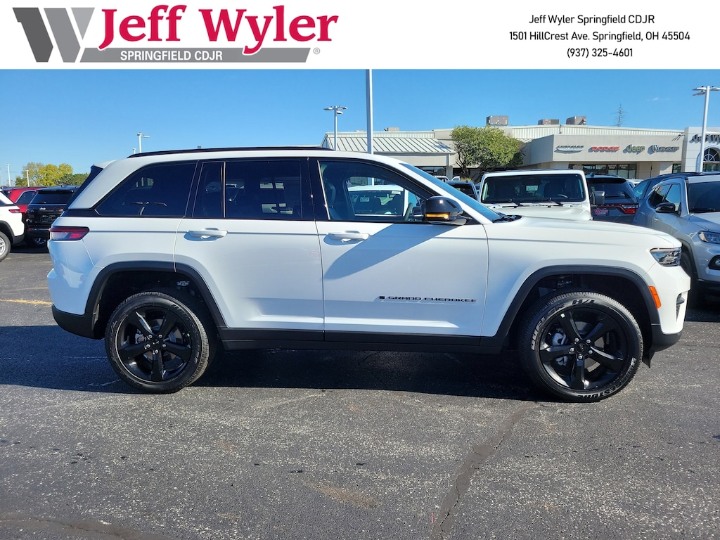 Priced below KBB Fair Purchase Price! Jeff Wyler Springfield Auto Mall is pleased to offer this great-looking 2025 Jeep Grand Cherokee Altitude X in Bright White Clearcoat. Well equipped with: Quick Order Package 23M Altitude X (115V Auxiliary Power Outlet, Altitude X, Black Headliner, Capri Leatherette/Suede Seats, Delete Laredo Badge, Gloss Black Exterior Accents, Heated Front Seats, Heated Steering Wheel, Power Liftgate, Power Sunroof, Rain Sensitive Windshield Wipers, Remote Start System, Selectable Tire Fill Alert, Wheels: 18" x 8" Fully Painted Aluminum 1, and Wireless Charging Pad), 4-Wheel Disc Brakes, 6 Speakers, ABS brakes, Air Conditioning, Alloy wheels, AM/FM radio: SiriusXM, Anti-whiplash front head restraints, Automatic temperature control, Brake assist, Bumpers: body-color, Cloth Seats, Compass, Delay-off headlights, Driver door bin, Driver vanity mirror, Dual front impact airbags, Dual front side impact airbags, Electronic Stability Control, Emergency communication system, Four wheel independent suspension, Front anti-roll bar, Front Bucket Seats, Front Center Armrest w/Storage, Front dual zone A/C, Front License Plate Bracket, Front reading lights, Fully automatic headlights, Heated door mirrors, Illuminated entry, Knee airbag, Low tire pressure warning, Model Year Tracking, Normal Duty Suspension, Occupant sensing airbag, Outside temperature display, Overhead airbag, Overhead console, Panic alarm, ParkView Rear Back-Up Camera, Passenger door bin, Passenger vanity mirror, Power door mirrors, Power driver seat, Power steering, Power windows, Radio data system, Radio: Uconnect 5 w/8.4" Display, Rear anti-roll bar, Rear reading lights, Rear window defroster, Rear window wiper, Remote keyless entry, Security system, Speed control, Speed-Sensitive Wipers, Split folding rear seat, Spoiler, Steering wheel mounted audio controls, Tachometer, Telescoping steering wheel, Tilt steering wheel, Traction control, Trip computer, Variably intermittent wipers, Voltmeter, Wheels: 17" x 6.5" Fully Painted Aluminum, and Wheels: 20" x 8.5" Gloss Black Painted Aluminum. 19/26 City/Highway MPG 19/26 City/Highway MPGWyler Family First Package Includes: NanoCure Appearance Protection: Exterior & Interior Chemical Sealant Applied to Protect Against Environmental Hazards (7 Year Warranty Coverage). Pulse- Rear end Collision Avoidance System Theft Deterrent Strategy gives you 5 Years of Coverage against vehicle Theft, Offering up to a $5,000 benefit. Available Incentives: $1000 - 2025 National Grand Cherokee Loyalty Retail Bonus Cash . Exp. 11/03/2025 $1000 - Driveability / Automobility Program. Exp. 01/05/2026 $1750 - 2025 National Retail Bonus Cash . Exp. 11/03/2025 $500 - 2025 National 2025 Military Bonus Cash. Exp. 01/05/2026 $500 - 2025 National Jeep Monopoly Money Bonus Cash . Exp. 11/03/2025