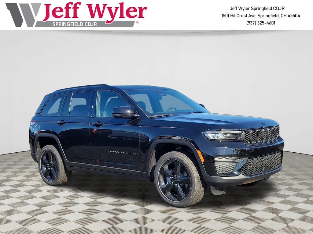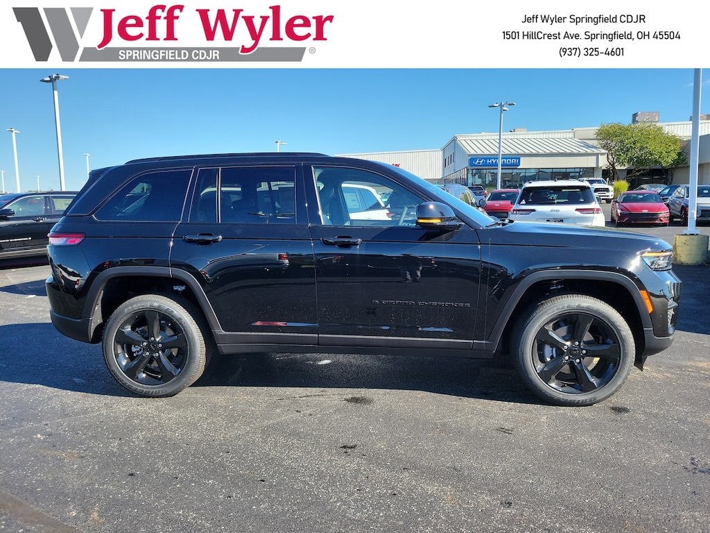 Jeff Wyler Springfield Auto Mall is excited to offer this good-looking 2025 Jeep Grand Cherokee Altitude X in Diamond Black Crystal Pearlcoat. Well equipped with: Quick Order Package 23M Altitude X (115V Auxiliary Power Outlet, Altitude X, Black Headliner, Capri Leatherette/Suede Seats, Delete Laredo Badge, Gloss Black Exterior Accents, Heated Front Seats, Heated Steering Wheel, Power Liftgate, Power Sunroof, Rain Sensitive Windshield Wipers, Remote Start System, Selectable Tire Fill Alert, Wheels: 18" x 8" Fully Painted Aluminum 1, and Wireless Charging Pad), 4-Wheel Disc Brakes, 6 Speakers, ABS brakes, Air Conditioning, Alloy wheels, AM/FM radio: SiriusXM, Anti-whiplash front head restraints, Automatic temperature control, Brake assist, Bumpers: body-color, Cloth Seats, Compass, Delay-off headlights, Driver door bin, Driver vanity mirror, Dual front impact airbags, Dual front side impact airbags, Electronic Stability Control, Emergency communication system, Four wheel independent suspension, Front anti-roll bar, Front Bucket Seats, Front Center Armrest w/Storage, Front dual zone A/C, Front License Plate Bracket, Front reading lights, Fully automatic headlights, Heated door mirrors, Illuminated entry, Knee airbag, Low tire pressure warning, Model Year Tracking, Normal Duty Suspension, Occupant sensing airbag, Outside temperature display, Overhead airbag, Overhead console, Panic alarm, ParkView Rear Back-Up Camera, Passenger door bin, Passenger vanity mirror, Power door mirrors, Power driver seat, Power steering, Power windows, Radio data system, Radio: Uconnect 5 w/8.4" Display, Rear anti-roll bar, Rear reading lights, Rear window defroster, Rear window wiper, Remote keyless entry, Security system, Speed control, Speed-Sensitive Wipers, Split folding rear seat, Spoiler, Steering wheel mounted audio controls, Tachometer, Telescoping steering wheel, Tilt steering wheel, Traction control, Trip computer, Variably intermittent wipers, Voltmeter, Wheels: 17" x 6.5" Fully Painted Aluminum, and Wheels: 20" x 8.5" Gloss Black Painted Aluminum. 19/26 City/Highway MPG 19/26 City/Highway MPGWyler Family First Package Includes: NanoCure Appearance Protection: Exterior & Interior Chemical Sealant Applied to Protect Against Environmental Hazards (7 Year Warranty Coverage). Pulse- Rear end Collision Avoidance System Theft Deterrent Strategy gives you 5 Years of Coverage against vehicle Theft, Offering up to a $5,000 benefit. Available Incentives: $1000 - 2025 National Grand Cherokee Loyalty Retail Bonus Cash . Exp. 11/03/2025 $1000 - Driveability / Automobility Program. Exp. 01/05/2026 $1750 - 2025  National Retail Bonus Cash . Exp. 11/03/2025 $500 - 2025 National 2025 Military Bonus Cash. Exp. 01/05/2026 $500 - 2025 National Jeep Monopoly Money Bonus Cash . Exp. 11/03/2025