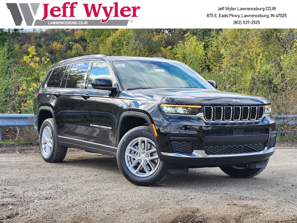 Jeff Wyler Chrysler Dodge Jeep of Lawrenceburg is honored to offer this stunning 2025 Jeep Grand Cherokee L Laredo in Diamond Black Crystal Pearlcoat. Well equipped with: Quick Order Package 23D Laredo X (Laredo X and Power Sunroof), 2nd Row 60/40 Bench w/Manual Tip/Slide, 2nd Row Seat Center Armrest/Cupholders, 3 Rear Seat Head Restraints, 3.45 Rear Axle Ratio, 3rd row seats: split-bench, 4-Wheel Disc Brakes, 6 Speakers, 7-Passenger Seating, ABS brakes, Air Conditioning, Alloy wheels, AM/FM radio: SiriusXM, Anti-whiplash front head restraints, Automatic temperature control, Brake assist, Bumpers: body-color, Center Rear 3-Point Seat Belt, Cloth Seats, Compass, Delay-off headlights, Driver door bin, Driver vanity mirror, Dual front impact airbags, Dual front side impact airbags, Electronic Stability Control, Emergency communication system, Four wheel independent suspension, Front anti-roll bar, Front Bucket Seats, Front Center Armrest w/Storage, Front dual zone A/C, Front reading lights, Fully automatic headlights, Heated door mirrors, Illuminated entry, Knee airbag, Low tire pressure warning, Manual Fold Seatbacks, Model Year Tracking, Normal Duty Suspension, Occupant sensing airbag, Outside temperature display, Overhead airbag, Overhead console, Panic alarm, ParkView Rear Back-Up Camera, Passenger door bin, Passenger vanity mirror, Power door mirrors, Power driver seat, Power steering, Power windows, Radio data system, Radio: Uconnect 5 w/8.4" Display, Rear air conditioning, Rear anti-roll bar, Rear reading lights, Rear window defroster, Rear window wiper, Reclining 3rd row seat, Remote keyless entry, Security system, Speed control, Speed-Sensitive Wipers, Split folding rear seat, Spoiler, Steering wheel mounted audio controls, Tachometer, Telescoping steering wheel, Tilt steering wheel, Traction control, Trip computer, Variably intermittent wipers, Voltmeter, and Wheels: 18" x 8.0" Fully Painted Aluminum.Wyler Family First Package Includes: NanoCure Appearance Protection: Exterior & Interior Chemical Sealant Applied to Protect Against Environmental Hazards (7 Year Warranty Coverage). Pulse- Rear end Collision Avoidance System Theft Deterrent Strategy gives you 5 Years of Coverage against vehicle Theft, Offering up to a $5,000 benefit. Used vehicles 10 years of age or newer with less than 100,000 miles are eligible for the Wyler Assurance Program, but eligible vehicles must pass our reconditioning process and multi-point inspection. Provided the vehicle passes inspection, vehicles will be eligible for the 6 month/6,000 mile limited warranty. The 6 month/6,000 mile limited warranty is NOT available on AS-IS vehicles, wholesale vehicles, lease buyback/pass-thru vehicles or un-inspected vehicles. Note that this program can also apply to vehicles where the remaining factory coverage is less than 6 months or 6,000 miles. Please check the Federal Trade Commission (FTC) Buyers guide on the vehicle for full details as to whether or not warranty coverage may apply. Contact Dealer for additional details.The Wyler Assurance 6 month/6,000 Mile limited warranty ends 6 months from the date of the Retail Purchase Agreement (BUYERS ORDER) or when the vehicle's odometer registers 6,000 additional miles to the mileage listed on the BUYERS ORDER, whichever comes first. Your Deductible - The warranty holder on your contract pays the first $100 of each covered repair. Price includes: $2000 - 2025 National Retail Bonus Cash . Exp. 11/03/2025 $500 - 2025 National Jeep Monopoly Money Bonus Cash . Exp. 11/03/2025