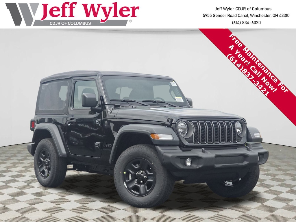 Adventure Awaits in This Brand-New 2025 Jeep Wrangler Sport!Experience the legendary Wrangler capability with modern convenience! This Black Clearcoat beauty features the powerful 270HP turbocharged 2.0L engine paired with Command-Trac 4WD system, ready to conquer any terrain. The removable Sunrider soft top lets you embrace open-air freedom at a moment's notice. Safety & Technology You Can Trust Advanced safety features include ParkView backup camera, electronic stability control, and adaptive cruise control with stop-and-go capability. Stay connected with the massive 12.3" Uconnect touchscreen, wireless Apple CarPlay/Android Auto, and 4G LTE Wi-Fi hotspot. Incredible Value with Exclusive Incentives Take advantage of up to $2,500 in available rebates, including National Retail Bonus Cash and Military Bonus Cash for qualifying buyers. This competitively priced Wrangler delivers exceptional value. Why Choose Jeff Wyler Columbus? Our Wyler Family First Package includes 7-year NanoCure protection, theft deterrent coverage up to $5,000, and Pulse collision avoidance system. With over 45 years serving Central Ohio, we're your trusted Jeep experts with the largest inventory and most dedicated service team in the region. Price does not include Tax, Title, License and Documentary Fee$1500 - 2025 National Stellantis Loyalty Retail Bonus Cash . Exp. 12/01/2025 $2000 - 2025 National Retail Bonus Cash . Exp. 12/01/2025 $500 - 2025 National 2025 Military Bonus Cash. Exp. 01/05/2026