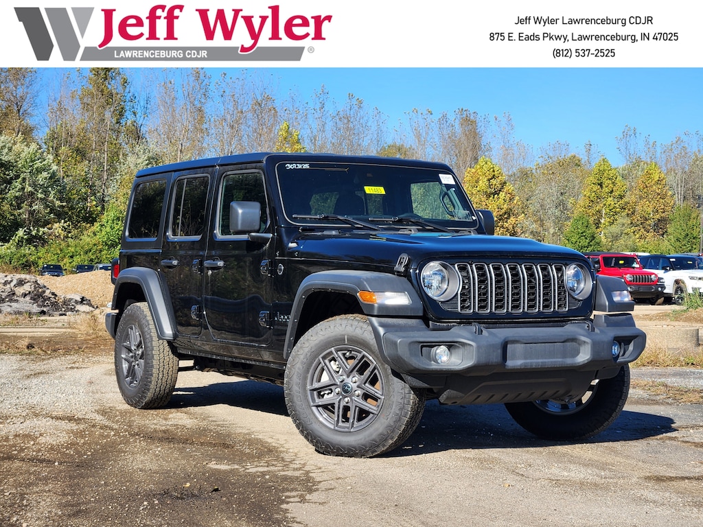 Jeff Wyler Chrysler Dodge Jeep of Lawrenceburg is pleased to offer this superb-looking and fun 2025 Jeep Wrangler Sport S in Black Clearcoat. Well equipped with: Convenience Group (2-Door Passive Entry, Front Door Locks, Air Conditioning w/Auto Temperature Control, Air Filtering, Cluster 7.0" TFT Color Display, Emergency/Assistance Call, Heated Front Seats, Heated Steering Wheel, Remote Start System, and Universal Garage Door Opener), Quick Order Package 24S Sport S (Advanced Brake Assist, Automatic Headlamps, Corning Gorilla Glass, Deep Tint Sunscreen Windows, Enhanced Adaptive Cruise Control, Full Speed Forward Collision Warning Plus, Power Heated Mirrors, Premium Wrapped Steering Wheel, Security Alarm, Sun Visors w/Illuminated Vanity Mirrors, and Wheels: 17" x 7.5" Gray), 110 MPH Vehicle Max Speed Calibration, 3.45 Overall Top Gear Ratio, 4-Wheel Disc Brakes, 8 Speakers, ABS brakes, Air Conditioning, AM/FM radio: SiriusXM, Apple CarPlay/Android Auto, Aux Battery, Black 3-Piece Hard Top, Brake assist, Cloth Low-Back Bucket Seats, Compass, Delay-off headlights, Driver door bin, Driver vanity mirror, Dual front impact airbags, Dual front side impact airbags, Electronic Stability Control, Freedom Panel Storage Bag, Front anti-roll bar, Front Bucket Seats, Front Center Armrest w/Storage, Front fog lights, Front reading lights, Illuminated entry, Integrated roll-over protection, Jeep Trail Rated Kit, Low tire pressure warning, MOPAR All-Weather Floor Mats, Non-Lock Fuel Cap w/o Discriminator, Normal Duty Suspension, Occupant sensing airbag, Outside temperature display, Overhead airbag, Panic alarm, ParkView Rear Back-Up Camera, Passenger door bin, Passenger vanity mirror, Power steering, Power windows, Radio data system, Radio: Uconnect 5 w/12.3" Display, Rear anti-roll bar, Rear reading lights, Rear Window Defroster, Rear Window Wiper/Washer, Remote keyless entry, Speed control, Split folding rear seat, Steering wheel mounted audio controls, Stop-Start Dual Battery System, Tachometer, Telescoping steering wheel, Tilt steering wheel, Traction control, Trip computer, Variably intermittent wipers, and Wheels: 17" x 7.5" Black Steel Styled.Wyler Family First Package Includes: NanoCure Appearance Protection: Exterior & Interior Chemical Sealant Applied to Protect Against Environmental Hazards (7 Year Warranty Coverage). Pulse- Rear end Collision Avoidance System Theft Deterrent Strategy gives you 5 Years of Coverage against vehicle Theft, Offering up to a $5,000 benefit. Used vehicles 10 years of age or newer with less than 100,000 miles are eligible for the Wyler Assurance Program, but eligible vehicles must pass our reconditioning process and multi-point inspection. Provided the vehicle passes inspection, vehicles will be eligible for the 6 month/6,000 mile limited warranty. The 6 month/6,000 mile limited warranty is NOT available on AS-IS vehicles, wholesale vehicles, lease buyback/pass-thru vehicles or un-inspected vehicles. Note that this program can also apply to vehicles where the remaining factory coverage is less than 6 months or 6,000 miles. Please check the Federal Trade Commission (FTC) Buyers guide on the vehicle for full details as to whether or not warranty coverage may apply. Contact Dealer for additional details.The Wyler Assurance 6 month/6,000 Mile limited warranty ends 6 months from the date of the Retail Purchase Agreement (BUYERS ORDER) or when the vehicle's odometer registers 6,000 additional miles to the mileage listed on the BUYERS ORDER, whichever comes first. Your Deductible - The warranty holder on your contract pays the first $100 of each covered repair. Price includes: $1500 - 2025 National Bonus Cash . Exp. 11/03/2025 $2000 - 2025 National Overaged Select Inventory Bonus Cash. Exp. 11/03/2025 $2500 - 2025 National Retail Bonus Cash . Exp. 11/03/2025