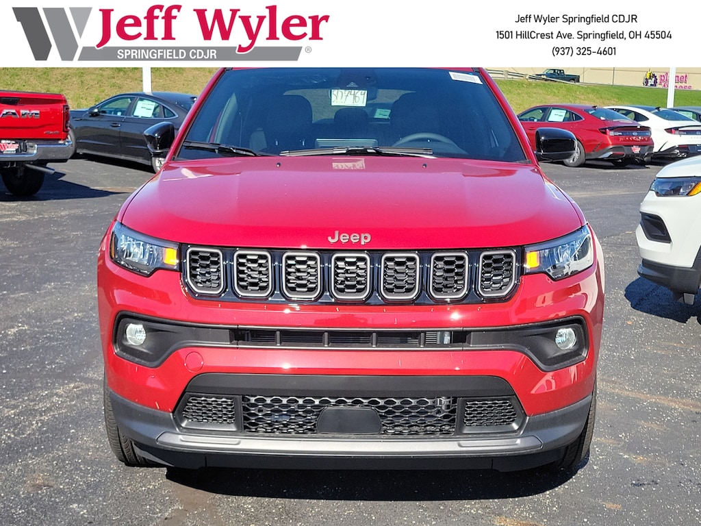 Jeff Wyler Springfield Auto Mall is proud to offer this handsome 2026 Jeep Compass Latitude in Pr6. Well equipped with: 17" x 7" Aluminum Wheels, 3.73 Final Drive Ratio, 4-Wheel Disc Brakes, 6 Speakers, ABS brakes, Air Conditioning, Alloy wheels, AM/FM radio: SiriusXM with 360L, Anti-whiplash front head restraints, Apple CarPlay/Android Auto, Auto High-beam Headlights, Automatic temperature control, Brake assist, Bumpers: body-colour, Compass, Delay-off headlights, Driver door bin, Driver vanity mirror, Dual front impact airbags, Dual front side impact airbags, Electronic Stability Control, Emergency communication system: SiriusXM Guardian, Four wheel independent suspension, Front anti-roll bar, Front Bucket Seats, Front fog lights, Front reading lights, Fully automatic headlights, Heated door mirrors, Heated front seats, Heated steering wheel, Illuminated entry, Knee airbag, Leather Shift Knob, Leather steering wheel, Low tire pressure warning, Occupant sensing airbag, Outside temperature display, Overhead airbag, Overhead console, Panic alarm, ParkView Rear Back-Up Camera, Passenger door bin, Passenger vanity mirror, Power door mirrors, Power steering, Power windows, Premium audio system: UConnect 5, Premium Cloth/Vinyl Bucket Seats, Radio: Uconnect 5 w/8.4" Display, Rear anti-roll bar, Rear window defroster, Rear window wiper, Remote keyless entry, Security system, Speed control, Split folding rear seat, Spoiler, Steering wheel mounted audio controls, Tachometer, Telescoping steering wheel, Tilt steering wheel, Traction control, Variably intermittent wipers, and Wheels: 18" x 7" Gloss Black Painted Aluminum. 24/32 City/Highway MPG 24/32 City/Highway MPGWyler Family First Package Includes: NanoCure Appearance Protection: Exterior & Interior Chemical Sealant Applied to Protect Against Environmental Hazards (7 Year Warranty Coverage). Pulse- Rear end Collision Avoidance System Theft Deterrent Strategy gives you 5 Years of Coverage against vehicle Theft, Offering up to a $5,000 benefit.
