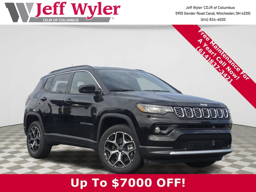 Experience the All-New 2026 Jeep Compass Limited - where adventure meets luxury! This stunning Diamond Black Crystal Pearlcoat SUV delivers exceptional capability with full-time 4WD and a powerful 200HP turbocharged engine, perfect for Ohio's diverse terrain. Advanced Safety Technology keeps your family protected with Blind Spot Detection, Full Speed Forward Collision Warning, Pedestrian Emergency Braking, and Active Lane Management. Plus, enjoy peace of mind with comprehensive safety ratings.Premium Comfort Features: Heated leather-appointed seats & steering wheel 8-way power driver seat with lumbar support Dual-zone climate control 10.1" touchscreen with wireless connectivity Smart Convenience: Remote start, hands-free liftgate, adaptive cruise control, and 4G Wi-Fi hotspot make every drive effortless. Exceptional Value: Take advantage of $2,121 in manufacturer discounts plus additional national incentives - competitively priced below market value! Why Choose Jeff Wyler Columbus? With 45+ years of trusted service, we're Central Ohio's premier Chrysler Dodge Jeep Ram dealer. Our dedicated team provides personalized service and maintains the highest customer satisfaction ratings in the region.Optimized Description:Experience the All-New 2026 Jeep Compass Limited - where adventure meets luxury! This stunning Diamond Black Crystal Pearlcoat SUV delivers exceptional capability with full-time 4WD and a powerful 200HP turbocharged engine, perfect for Ohio's diverse terrain.Advanced Safety Technology keeps your family protected with Blind Spot Detection, Full Speed Forward Collision Warning, Pedestrian Emergency Braking, and Active Lane Management. Plus, enjoy peace of mind with comprehensive safety ratings.Premium Comfort Features: Heated leather-appointed seats & steering wheel 8-way power driver seat with lumbar support Dual-zone climate control 10.1" touchscreen with wireless connectivitySmart Convenience: Remote start, hands-free liftgate, adaptive cruise control, and 4G Wi-Fi hotspot make every drive effortless.Exceptional Value: Take advantage of $2,121 in manufacturer discounts plus additional national incentives - competitively priced below market value!Why Choose Jeff Wyler Columbus? With 45+ years of trusted service, we're Central Ohio's premier Chrysler Dodge Jeep Ram dealer. Our dedicated team provides personalized service and maintains the highest customer satisfaction ratings in the region. Price does not include Tax, Title, License and Documentary Fee$1000 - 2026 National Retail Bonus Cash . Exp. 01/05/2026 $1500 - 2026 National Stellantis Loyalty Retail Bonus Cash . Exp. 01/05/2026 $500 - 2026 National 2026 Military Bonus Cash . Exp. 01/05/2026