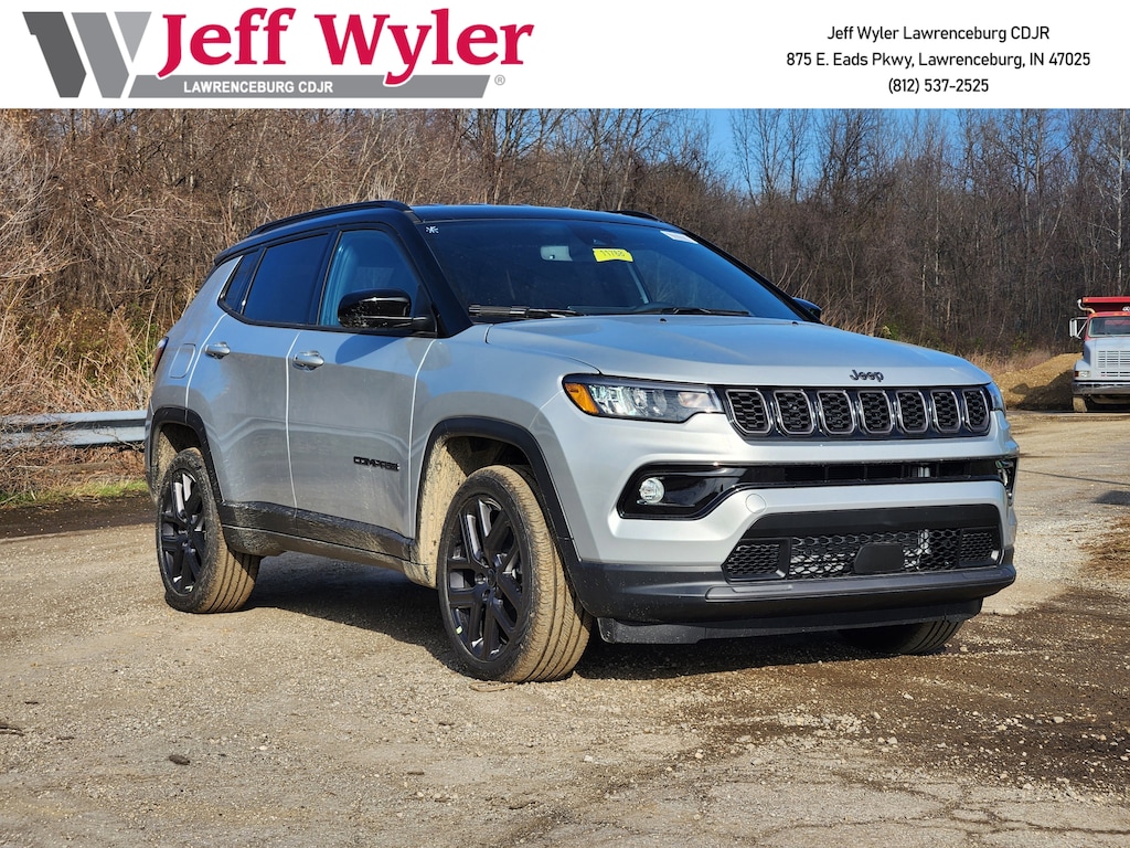Jeff Wyler Chrysler Dodge Jeep of Lawrenceburg is honored to offer this good-looking 2026 Jeep Compass Limited in silver zynith metallic clearcoat. Well equipped with: Limited Altitude Pack (Black Day Light Opening Moldings, Gloss Black Surround/Neutral Gray Rings, Neutral Gray Exterior Accents, Neutral Gray Exterior Badging, Piano Black Interior Accents, and Wheels: 19" x 7.5" Aluminum Painted), Quick Order Package 29W Limited Altitude, 4WD, 10.1" Touchscreen Display, 3.73 Final Drive Ratio, 4-Wheel Disc Brakes, 4G LTE Wi-Fi Hot Spot, 6 Speakers, ABS brakes, Air Conditioning, Alloy wheels, AM/FM radio: SiriusXM, Auto High-beam Headlights, Auto-dimming Rear-View mirror, Automatic temperature control, Brake assist, Bumpers: body-color, Compass, Delay-off headlights, Driver door bin, Driver vanity mirror, Dual front impact airbags, Dual front side impact airbags, Electronic Stability Control, Emergency communication system: SiriusXM Guardian, Four wheel independent suspension, Front anti-roll bar, Front Bucket Seats, Front Center Armrest w/Storage, Front dual zone A/C, Front fog lights, Front reading lights, Fully automatic headlights, Global Telematics Box Module, Heated door mirrors, Heated front seats, Heated steering wheel, Illuminated entry, Knee airbag, Leather Shift Knob, Leather steering wheel, Leatherette Seats, Low tire pressure warning, Occupant sensing airbag, Outside temperature display, Overhead airbag, Overhead console, Panic alarm, ParkView Rear Back-Up Camera, Passenger door bin, Passenger vanity mirror, Power door mirrors, Power driver seat, Power Liftgate, Power steering, Power windows, Premium audio system: UConnect 5, Radio: Uconnect 5 with 10.1" Display, Rain sensing wipers, Rear anti-roll bar, Rear seat center armrest, Rear window defroster, Rear window wiper, Remote keyless entry, Security system, SiriusXM Guardian - Included Trail (B), SiriusXM Radio Service, Speed control, Split folding rear seat, Spoiler, Steering wheel mounted audio controls, Tachometer, Telescoping steering wheel, Tilt steering wheel, Traction control, Trip computer, Turn signal indicator mirrors, Variably intermittent wipers, and Wheels: 18" x 7" Painted Diamond Cut Aluminum. 23/31 City/Highway MPGWyler Family First Package Includes: NanoCure Appearance Protection: Exterior & Interior Chemical Sealant Applied to Protect Against Environmental Hazards (7 Year Warranty Coverage). Pulse- Rear end Collision Avoidance System Theft Deterrent Strategy gives you 5 Years of Coverage against vehicle Theft, Offering up to a $5,000 benefit. Used vehicles 10 years of age or newer with less than 100,000 miles are eligible for the Wyler Assurance Program, but eligible vehicles must pass our reconditioning process and multi-point inspection. Provided the vehicle passes inspection, vehicles will be eligible for the 6 month/6,000 mile limited warranty. The 6 month/6,000 mile limited warranty is NOT available on AS-IS vehicles, wholesale vehicles, lease buyback/pass-thru vehicles or un-inspected vehicles. Note that this program can also apply to vehicles where the remaining factory coverage is less than 6 months or 6,000 miles. Please check the Federal Trade Commission (FTC) Buyers guide on the vehicle for full details as to whether or not warranty coverage may apply. Contact Dealer for additional details.The Wyler Assurance 6 month/6,000 Mile limited warranty ends 6 months from the date of the Retail Purchase Agreement (BUYERS ORDER) or when the vehicle's odometer registers 6,000 additional miles to the mileage listed on the BUYERS ORDER, whichever comes first. Your Deductible - The warranty holder on your contract pays the first $100 of each covered repair. Price includes: $1000 - 2026 National Retail Bonus Cash . Exp. 01/05/2026