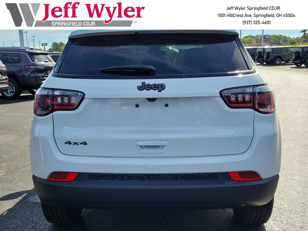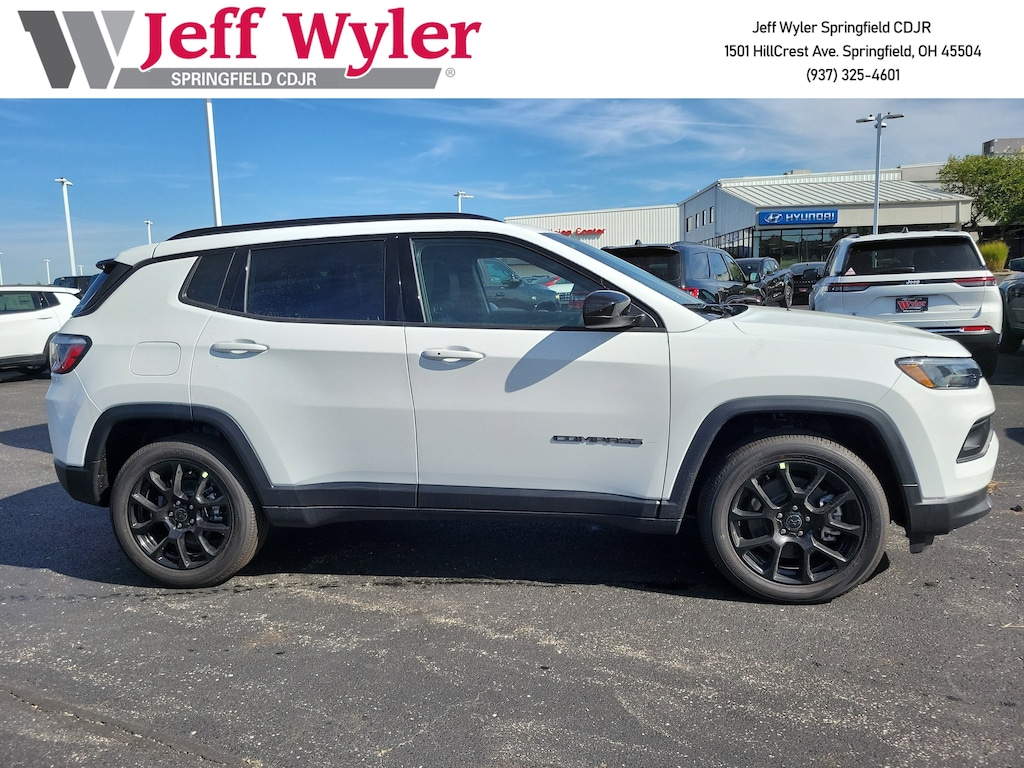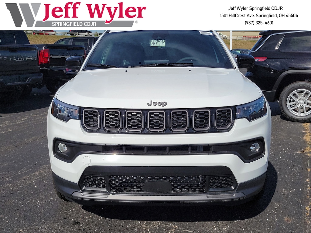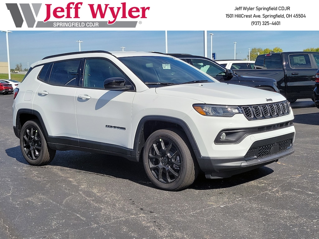 Jeff Wyler Springfield Auto Mall is pleased to offer this wonderful-looking 2026 Jeep Compass Latitude in Bright White Clearcoat. Well equipped with: 17" x 7" Aluminum Wheels, 3.73 Final Drive Ratio, 4-Wheel Disc Brakes, 6 Speakers, ABS brakes, Air Conditioning, Alloy wheels, AM/FM radio: SiriusXM with 360L, Anti-whiplash front head restraints, Apple CarPlay/Android Auto, Auto High-beam Headlights, Automatic temperature control, Brake assist, Bumpers: body-colour, Compass, Delay-off headlights, Driver door bin, Driver vanity mirror, Dual front impact airbags, Dual front side impact airbags, Electronic Stability Control, Emergency communication system: SiriusXM Guardian, Four wheel independent suspension, Front anti-roll bar, Front Bucket Seats, Front fog lights, Front reading lights, Fully automatic headlights, Heated door mirrors, Heated front seats, Heated steering wheel, Illuminated entry, Knee airbag, Leather Shift Knob, Leather steering wheel, Low tire pressure warning, Occupant sensing airbag, Outside temperature display, Overhead airbag, Overhead console, Panic alarm, ParkView Rear Back-Up Camera, Passenger door bin, Passenger vanity mirror, Power door mirrors, Power steering, Power windows, Premium audio system: UConnect 5, Premium Cloth/Vinyl Bucket Seats, Radio: Uconnect 5 w/8.4" Display, Rear anti-roll bar, Rear window defroster, Rear window wiper, Remote keyless entry, Security system, Speed control, Split folding rear seat, Spoiler, Steering wheel mounted audio controls, Tachometer, Telescoping steering wheel, Tilt steering wheel, Traction control, Variably intermittent wipers, and Wheels: 18" x 7" Gloss Black Painted Aluminum. 24/32 City/Highway MPG 24/32 City/Highway MPGWyler Family First Package Includes: NanoCure Appearance Protection: Exterior & Interior Chemical Sealant Applied to Protect Against Environmental Hazards (7 Year Warranty Coverage). Pulse- Rear end Collision Avoidance System Theft Deterrent Strategy gives you 5 Years of Coverage against vehicle Theft, Offering up to a $5,000 benefit.