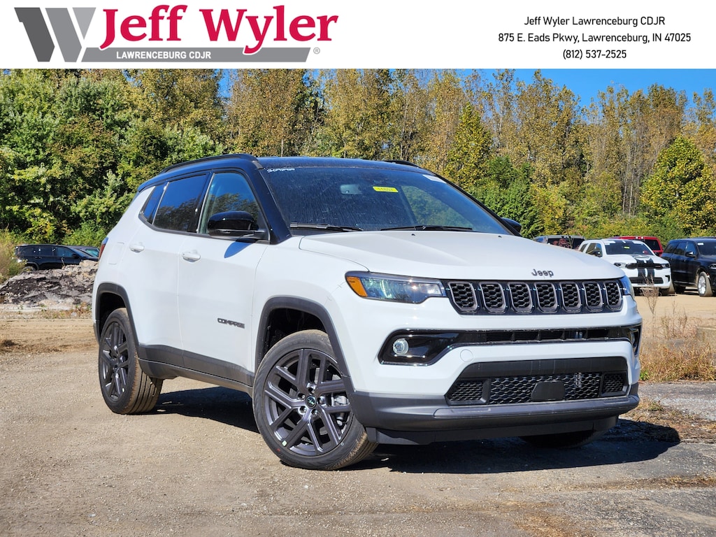 Jeff Wyler Chrysler Dodge Jeep of Lawrenceburg is pleased to offer this great 2026 Jeep Compass Limited in Bright White Clearcoat. Well equipped with: 4WD, 3.73 Final Drive Ratio, 4-Wheel Disc Brakes, 6 Speakers, ABS brakes, Air Conditioning, Alloy wheels, Auto High-beam Headlights, Auto-dimming Rear-View mirror, Automatic temperature control, Brake assist, Compass, Delay-off headlights, Driver door bin, Driver vanity mirror, Dual front impact airbags, Dual front side impact airbags, Electronic Stability Control, Four wheel independent suspension, Front anti-roll bar, Front Bucket Seats, Front dual zone A/C, Front fog lights, Front reading lights, Fully automatic headlights, Heated door mirrors, Heated front seats, Heated steering wheel, Illuminated entry, Knee airbag, Leather Shift Knob, Leather steering wheel, Leatherette Seats, Low tire pressure warning, Occupant sensing airbag, Outside temperature display, Overhead airbag, Overhead console, Panic alarm, ParkView Rear Back-Up Camera, Passenger door bin, Passenger vanity mirror, Piano Black Interior Accents, Power door mirrors, Power driver seat, Power Liftgate, Power steering, Power windows, Radio: Uconnect 5 w/10.1" Display, Rain sensing wipers, Rear anti-roll bar, Rear window defroster, Rear window wiper, Remote keyless entry, Security system, Speed control, Split folding rear seat, Spoiler, Steering wheel mounted audio controls, Tachometer, Telescoping steering wheel, Tilt steering wheel, Traction control, Turn signal indicator mirrors, and Variably intermittent wipers. 23/31 City/Highway MPGWyler Family First Package Includes: NanoCure Appearance Protection: Exterior & Interior Chemical Sealant Applied to Protect Against Environmental Hazards (7 Year Warranty Coverage). Pulse- Rear end Collision Avoidance System Theft Deterrent Strategy gives you 5 Years of Coverage against vehicle Theft, Offering up to a $5,000 benefit. Used vehicles 10 years of age or newer with less than 100,000 miles are eligible for the Wyler Assurance Program, but eligible vehicles must pass our reconditioning process and multi-point inspection. Provided the vehicle passes inspection, vehicles will be eligible for the 6 month/6,000 mile limited warranty. The 6 month/6,000 mile limited warranty is NOT available on AS-IS vehicles, wholesale vehicles, lease buyback/pass-thru vehicles or un-inspected vehicles. Note that this program can also apply to vehicles where the remaining factory coverage is less than 6 months or 6,000 miles. Please check the Federal Trade Commission (FTC) Buyers guide on the vehicle for full details as to whether or not warranty coverage may apply. Contact Dealer for additional details.The Wyler Assurance 6 month/6,000 Mile limited warranty ends 6 months from the date of the Retail Purchase Agreement (BUYERS ORDER) or when the vehicle's odometer registers 6,000 additional miles to the mileage listed on the BUYERS ORDER, whichever comes first. Your Deductible - The warranty holder on your contract pays the first $100 of each covered repair. Price includes: $500 - 2026 National Retail Bonus Cash . Exp. 11/03/2025