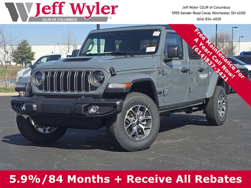 Jeff Wyler Columbus Auto Mall is pleased to offer this wonderful 2026 Jeep Gladiator Sport S in Anvil Clearcoat. Well equipped with: Convenience Group (Air Conditioning with Auto Temp Control, Cluster 7.0" TFT Color Display, Corning Gorilla Glass, Daytime Running Lamp System, Emergency/Assistance Call, Front Door Locks 2-Door Passive Entry, Heated Front Seats, Heated Steering Wheel, Remote Start System, and Universal Garage Door Opener), Dark Sky Appearance Package (2-Piece Body Color Fender Flares, Mold in Color Bumper with Gloss Black, and Performance Hood), LED Headlamp and Fog Lamp Group (Daytime Running Lamps LED Accents, Front LED Fog Lamps, and LED Premium Reflector Headlamps), Quick Order Package 24S Sport S (Advanced Brake Assist, Automatic Headlamps, Deep Tint Sunscreen Windows, Full Speed Forward Collision Warning Plus, Normal Duty Plus Suspension, Power Heated Mirrors, Premium Wrapped Steering Wheel, Security Alarm, Sun Visors with Illuminated Vanity Mirrors, and Wheels: 17" x 7.5" Gray), 110 Mph Vehicle Max Speed Calibration, 12.3" Touchscreen Display, 3.73 Rear Axle Ratio, 4-Wheel Disc Brakes, 4G LTE Wi-Fi Hot Spot, 8 Speakers, ABS brakes, Air Conditioning, Alexa Built-in, AM/FM radio: SiriusXM with 360L, Apple CarPlay, Apple CarPlay/Android Auto, Brake assist, Compass, Connectivity - US/Canada, Delay-off headlights, Driver door bin, Driver vanity mirror, Dual front impact airbags, Dual front side impact airbags, Electronic Stability Control, For Details, Visit DriveUconnect.com, Front anti-roll bar, Front Bucket Seats, Front Center Armrest w/Storage, Front fog lights, Front License Plate Bracket, Front reading lights, Google Android Auto, Illuminated entry, Integrated Center Stack Radio, Integrated roll-over protection, Low tire pressure warning, MOPAR All-Weather Slush Mats, MyFlexCare Service Plan, Normal Duty Suspension, Occupant sensing airbag, Outside temperature display, Overhead airbag, Panic alarm, ParkView Rear Back-Up Camera, Passenger door bin, Passenger vanity mirror, Power steering, Power windows, Radio data system, Radio: Uconnect 5 with 12.3" Display, Rear anti-roll bar, Rear reading lights, Remote keyless entry, SiriusXM Radio Service, SiriusXM with 360L, Speed control, Split folding rear seat, Steering wheel mounted audio controls, Tachometer, Telescoping steering wheel, Tilt steering wheel, Traction control, Trip computer, USB Host Flip, Variably intermittent wipers, Voltmeter, Wheels: 17" x 7.5" Black Steel Styled, and Wheels: 17" x 7.5" Machined with Black PocketS.Wyler Family First Package Includes: NanoCure Appearance Protection: Exterior & Interior Chemical Sealant Applied to Protect Against Environmental Hazards (7 Year Warranty Coverage). Pulse- Rear End Collision Avoidance System Theft Deterrent Strategy gives you 5 Years of Coverage against vehicle theft, Offering up to a $5,000 benefit. Price does not include Tax, Title, License and Documentary Fee$1000 - 2026 National Retail Bonus Cash . Exp. 03/31/2026 $1000 - 2026 National Stellantis Loyalty Bonus Cash . Exp. 03/31/2026 $500 - 2026 National 2026 Military Bonus Cash . Exp. 01/04/2027 $750 - 2026 Great Lakes BC Bonus Cash . Exp. 03/31/2026 $1,750 - SFS Bonus cash rebate up to $1750. Must finance through Stellantis Financial Services to receive incentive