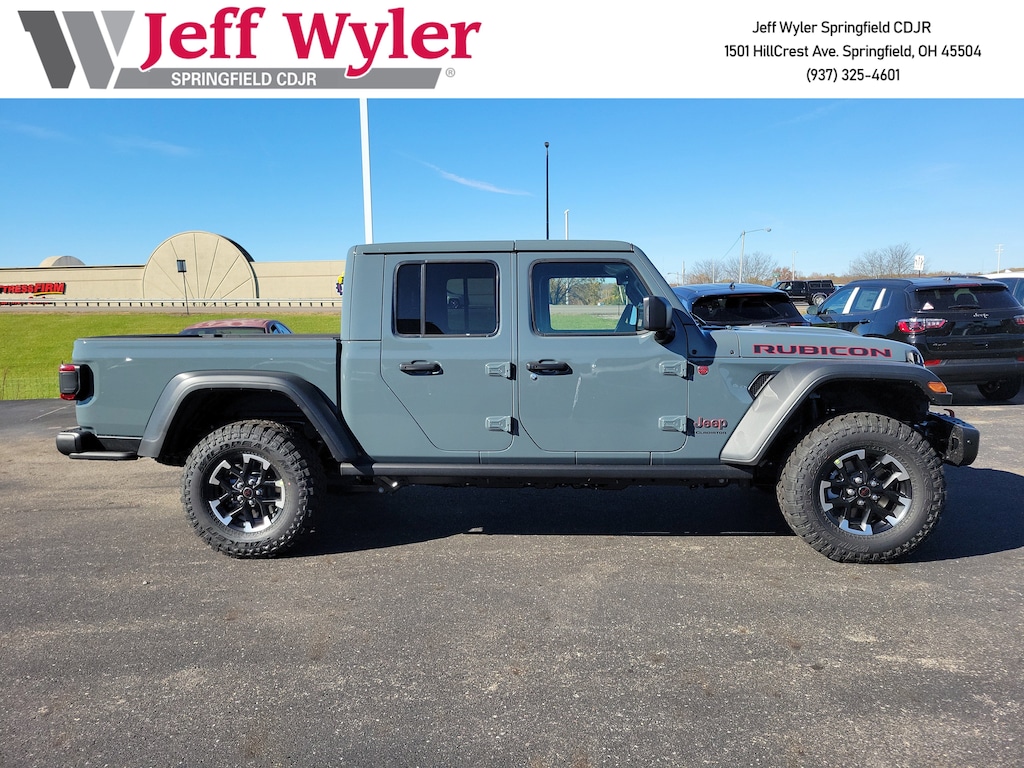 Jeff Wyler Springfield Auto Mall is very proud to offer this wonderful-looking 2026 Jeep Gladiator Rubicon in Anvil Clearcoat. Well equipped with: Convenience Group (Heated Front Seats, Heated Steering Wheel, Remote Start System, and Universal Garage Door Opener), Quick Order Package 24R Rubicon, Safety Group (Auto High Beam Headlamp Control, Blind Spot & Cross Path Detection, and ParkSense Rear Park Assist System), Steel Bumper Group (Steel Front Bumper), Technology Group (Auto-Dimming Rear-View Mirror, Connected Travel & Traffic Services, GPS Navigation, HD Radio, Integrated Off-Road Camera, Integrated Voice Command w/Bluetooth, and Radio: Uconnect 5 Nav w/12.3" Display), 4-Wheel Disc Brakes, 4.10 Rear Axle Ratio, 8 Speakers, ABS brakes, Air Conditioning, Alloy wheels, Alpine Premium Audio System, AM/FM radio: SiriusXM with 360L, Apple CarPlay/Android Auto, Automatic temperature control, Body Color 3-Piece Hard Top, Brake assist, Cloth Low-Back Bucket Seats, Compass, Delay-off headlights, Driver door bin, Driver vanity mirror, Dual front impact airbags, Dual front side impact airbags, Electronic Stability Control, Emergency communication system: Jeep Connect, Freedom Panel Storage Bag, Front anti-roll bar, Front Bucket Seats, Front Center Armrest w/Storage, Front dual zone A/C, Front fog lights, Front License Plate Bracket, Front reading lights, Fully automatic headlights, Heated door mirrors, Illuminated entry, Integrated roll-over protection, Low tire pressure warning, MOPAR Hardtop Headliner, MOPAR Spray In Bedliner, Occupant sensing airbag, Outside temperature display, Overhead airbag, Panic alarm, Passenger door bin, Passenger vanity mirror, Performance Suspension, Power door mirrors, Power steering, Power windows, Radio data system, Radio: Uconnect 5 w/12.3" Display, Rear anti-roll bar, Rear reading lights, Rear Sliding Window, Rear Window Defroster, Remote keyless entry, Security system, Speed control, Split folding rear seat, Steering wheel mounted audio controls, Tachometer, Telescoping steering wheel, Tilt steering wheel, Traction control, Trip computer, USB Host Flip, Variably intermittent wipers, Voltmeter, Wheels: 17" x 7.5" Machined w/Black Pockets, and Wheels: 17" x 7.5" Machined/Painted Black. 17/22 City/Highway MPGWyler Family First Package Includes: NanoCure Appearance Protection: Exterior & Interior Chemical Sealant Applied to Protect Against Environmental Hazards (7 Year Warranty Coverage). Pulse- Rear end Collision Avoidance System Theft Deterrent Strategy gives you 5 Years of Coverage against vehicle Theft, Offering up to a $5,000 benefit.