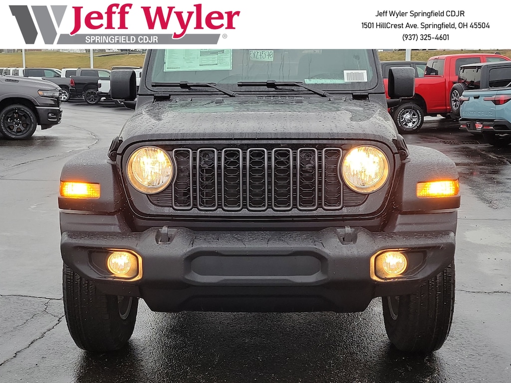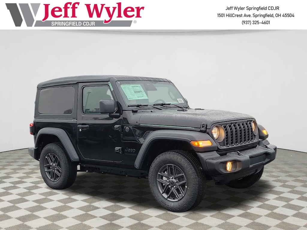 Jeff Wyler Springfield Auto Mall is delighted to offer this wonderful 2026 Jeep Wrangler Sport S in Black Clearcoat. Well equipped with: Convenience Group (2-Door Passive Entry, Front Door Locks, Air Conditioning with Auto Temp Control, Air Filtering, Cluster 7.0" TFT Color Display, Emergency/Assistance Call, Heated Front Seats, Heated Steering Wheel, and Universal Garage Door Opener), Quick Order Package 22S Sport S (Advanced Brake Assist, Automatic Headlamps, Corning Gorilla Glass, Deep Tint Sunscreen Windows, Enhanced Adaptive Cruise Control, Full Speed Forward Collision Warning Plus, Power Heated Mirrors, Premium Wrapped Steering Wheel, Security Alarm, Sun Visors with Illuminated Vanity Mirrors, and Wheels: 17" x 7.5" Gray), Safety Group (Auto High Beam Headlamp Control, Blind Spot and Cross Path Detection, Injection Molded Black Rear Bumper, LED Taillamps, and ParkSense Rear Park Assist System), 12.3" Touchscreen Display, 3.45 Overall Top Gear Ratio, 4-Wheel Disc Brakes, 4G LTE Wi-Fi Hot Spot, 8 Speakers, ABS brakes, Air Conditioning, AM/FM radio: SiriusXM with 360L, Apple CarPlay, Apple CarPlay/Android Auto, Aux Battery, Brake assist, Cloth Low-Back Bucket Seats, Compass, Connectivity - US/Canada, Delay-off headlights, Driver door bin, Driver vanity mirror, Dual front impact airbags, Dual front side impact airbags, Electronic Stability Control, For More Info, Call 800-643-2112, Front anti-roll bar, Front Bucket Seats, Front Center Armrest w/Storage, Front fog lights, Front reading lights, Google Android Auto, Illuminated entry, Integrated Center Stack Radio, Integrated roll-over protection, Low tire pressure warning, MOPAR All-Weather Floor Mats, Non-Lock Fuel Cap Without Discriminator, Normal Duty Suspension, Occupant sensing airbag, Outside temperature display, Overhead airbag, Panic alarm, ParkView Rear Back-Up Camera, Passenger door bin, Passenger vanity mirror, Power steering, Power windows, Radio data system, Radio: Uconnect 5 with 12.3" Display, Rear anti-roll bar, Rear reading lights, Remote keyless entry, SiriusXM Radio Service, SiriusXM with 360L, Speed control, Steering wheel mounted audio controls, Stop-Start Dual Battery System, Tachometer, Telescoping steering wheel, Tilt steering wheel, Traction control, Trip computer, Variably intermittent wipers, and Wheels: 17" x 7.5" Black Steel Styled. 20/23 City/Highway MPGWyler Family First Package Includes: NanoCure Appearance Protection: Exterior & Interior Chemical Sealant Applied to Protect Against Environmental Hazards (7 Year Warranty Coverage). Pulse- Rear end Collision Avoidance System Theft Deterrent Strategy gives you 5 Years of Coverage against vehicle Theft, Offering up to a $5,000 benefit. Available Incentives: $1000 - 2026 National Select Inventory Bonus Cash . Exp. 01/04/2027 $1500 - 2026 National Stellantis Loyalty Retail Bonus Cash . Exp. 02/02/2026