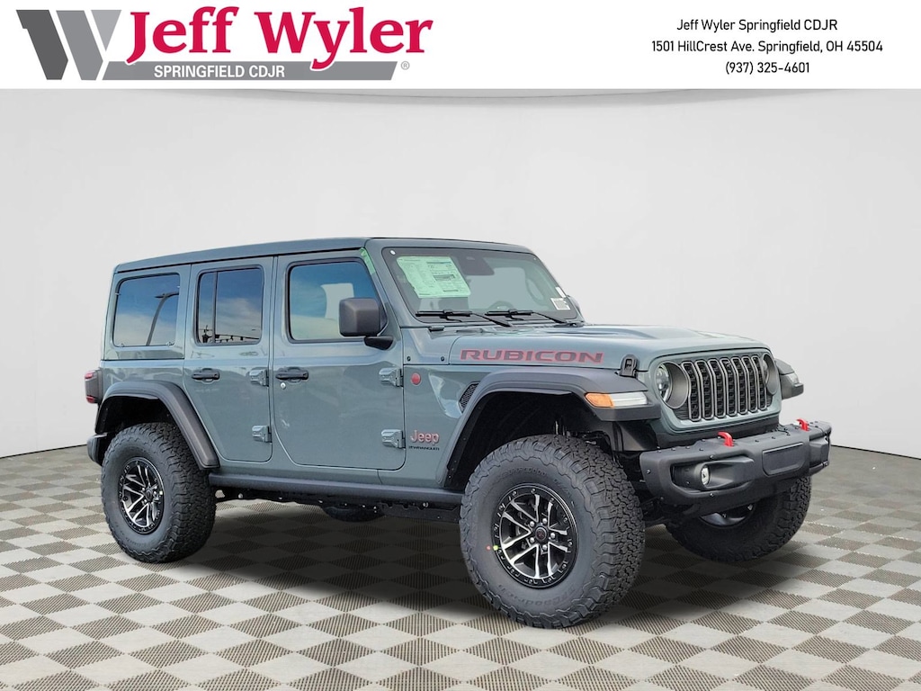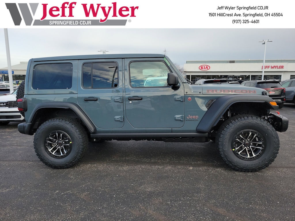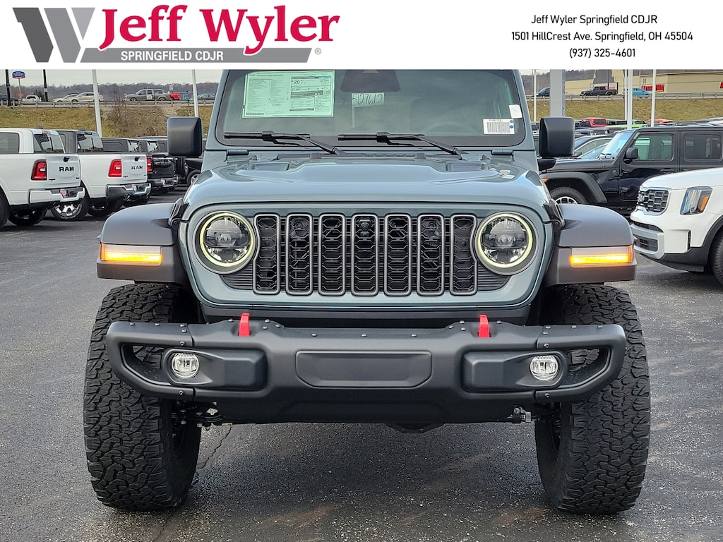 Jeff Wyler Springfield Auto Mall is very proud to offer this wonderful-looking 2026 Jeep Wrangler Rubicon in Anvil Clear Coat. Well equipped with: Convenience Group (Heated Front Seats, Heated Steering Wheel, and Universal Garage Door Opener), Quick Order Package 24R Rubicon, Safety Group (Auto High Beam Headlamp Control, Blind Spot and Cross Path Detection, and ParkSense Rear Park Assist System), Steel Bumper Group (Steel Front Bumper and Steel Rear Bumper), Technology Group (12.3" Touchscreen Display, 4G LTE Wi-Fi Hot Spot, Apple CarPlay, Auto-Dimming Rear-View Mirror, Connected Travel and Traffic Services, Connectivity - US/Canada, For More Info, Call 800-643-2112, Google Android Auto, GPS Navigation, HD Radio, Integrated Center Stack Radio, Integrated Off-Road Camera, Integrated Voice Command with Bluetooth, Radio: Uconnect 5 Navigation with 12.3" Display, SiriusXM Radio Service, and SiriusXM with 360L), Xtreme 35 Tire Package (35" Tire Suspension, Anti-Lock 4-Wheel Disc Perf Brakes, MOPAR Hinge-Gate Reinforcement, MOPAR Jack Spacer, MOPAR Tire Relocation Kit, Wheel Flare Extensions, and Wheels: 17" x 8" Machined with Black Pockets), 4-Wheel Disc Brakes, 8 Speakers, ABS brakes, Air Conditioning, Alloy wheels, Alpine Premium Audio System, AM/FM radio: SiriusXM with 360L, Apple CarPlay/Android Auto, Automatic temperature control, Aux Battery, Auxiliary Switches, Brake assist, Class II Receiver Hitch, Cloth Low-Back Bucket Seats, Compass, Delay-off headlights, Driver door bin, Driver vanity mirror, Dual front impact airbags, Dual front side impact airbags, Electronic Stability Control, Emergency communication system: Jeep Connect, Front anti-roll bar, Front Bucket Seats, Front Center Armrest w/Storage, Front dual zone A/C, Front fog lights, Front License Plate Bracket, Front reading lights, Fully automatic headlights, Heated door mirrors, Illuminated entry, Integrated roll-over protection, Jeep Trail Rated Kit, Low tire pressure warning, MOPAR All-Weather Floor Mats, Non-Lock Fuel Cap Without Discriminator, Occupant sensing airbag, Outside temperature display, Overhead airbag, Panic alarm, ParkView Rear Back-Up Camera, Passenger door bin, Passenger vanity mirror, Performance Suspension, Power door mirrors, Power steering, Power Top Quarter Window Storage Bag, Power windows, Radio data system, Radio: Uconnect 5 with 12.3" Display, Rear anti-roll bar, Rear reading lights, Rear Window Defroster, Rear Window Wiper/Washer, Remote keyless entry, Removable Rear Quarter Windows, Security system, Sky One-Touch Power Top, Speed control, Split folding rear seat, Steering wheel mounted audio controls, Stop-Start Dual Battery System, Tachometer, Telescoping steering wheel, Tilt steering wheel, Traction control, Trip computer, Variably intermittent wipers, Voltmeter, and Wheels: 17" x 7.5" Machined/Painted Black. 18/23 City/Highway MPGWyler Family First Package Includes: NanoCure Appearance Protection: Exterior & Interior Chemical Sealant Applied to Protect Against Environmental Hazards (7 Year Warranty Coverage). Pulse- Rear end Collision Avoidance System Theft Deterrent Strategy gives you 5 Years of Coverage against vehicle Theft, Offering up to a $5,000 benefit. Available Incentives: $1000 - 2026 Midwest BC Loyalty Bonus Cash . Exp. 01/20/2026 $1500 - 2026 National Stellantis Loyalty Retail Bonus Cash . Exp. 02/02/2026 $6000 - 2026 National Select Inventory Bonus Cash. Exp. 01/04/2027