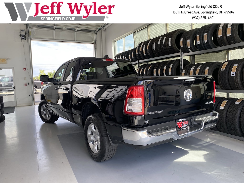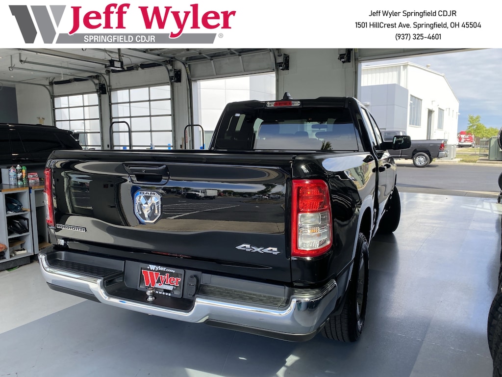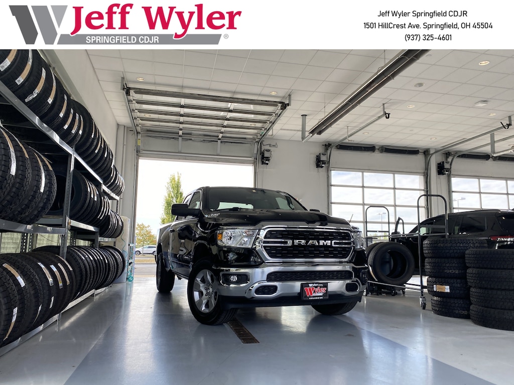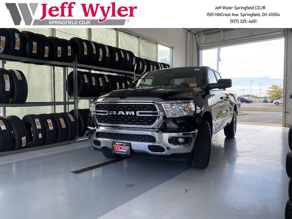 Jeff Wyler Springfield Auto Mall is honored to offer this gorgeous-looking 2022 Ram 1500 Big Horn/Lone Star in Diamond Black Crystal Pearlcoat. Well equipped with: Quick Order Package 23Z Big Horn (Big Horn Badge), 3 Rear Seat Head Restraints, 3.21 Rear Axle Ratio, 4 Way Front Headrests, 4-Wheel Disc Brakes, 48V Belt Starter Generator, 6 Speakers, ABS brakes, Air Conditioning, Alloy wheels, AM/FM radio, Black Exterior Mirrors, Brake assist, Bumpers: chrome, Cloth Bench Seat, Compass, Connected Services Delete Credit, Convex Wide-Angle Mirror Insert, Delay-off headlights, Driver door bin, Dual front impact airbags, Dual front side impact airbags, Electronic Stability Control, Emergency communication system: SiriusXM Guardian, Front anti-roll bar, Front Center Armrest w/Storage, Front fog lights, Front License Plate Bracket, Front reading lights, Front Seat Back Map Pockets, Front wheel independent suspension, Fully automatic headlights, Global Telematics Box Module (TBM), GPS Antenna Input, Heated door mirrors, Illuminated entry, Integrated Voice Command w/Bluetooth, Leather steering wheel, Low tire pressure warning, Manual Adjust 4-Way Front Passenger Seat, MOPAR Front & Rear Rubber Floor Mats, Occupant sensing airbag, Outside temperature display, Overhead airbag, Overhead console, Panic alarm, ParkView Rear Back-Up Camera, Passenger door bin, Passenger vanity mirror, Power door mirrors, Power steering, Power windows, Radio data system, Radio: Uconnect 3 w/5" Display, Rear 60/40 Folding Seat, Rear anti-roll bar, Rear seat center armrest, Rear step bumper, Remote keyless entry, Remote Start System, Speed control, Split folding rear seat, Steering wheel mounted audio controls, Tachometer, Telescoping steering wheel, Tilt steering wheel, Traction control, Trip computer, Variably intermittent wipers, Voltmeter, and Wheels: 18" x 8" Cast-Aluminum Painted. 19/24 City/Highway MPGWyler Family First Package Includes: NanoCure Appearance Protection: Exterior & Interior Chemical Sealant Applied to Protect Against Environmental Hazards (7 Year Warranty Coverage). Pulse- Rear end Collision Avoidance System Theft Deterrent Strategy gives you 5 Years of Coverage against vehicle Theft, Offering up to a $5,000 benefit.