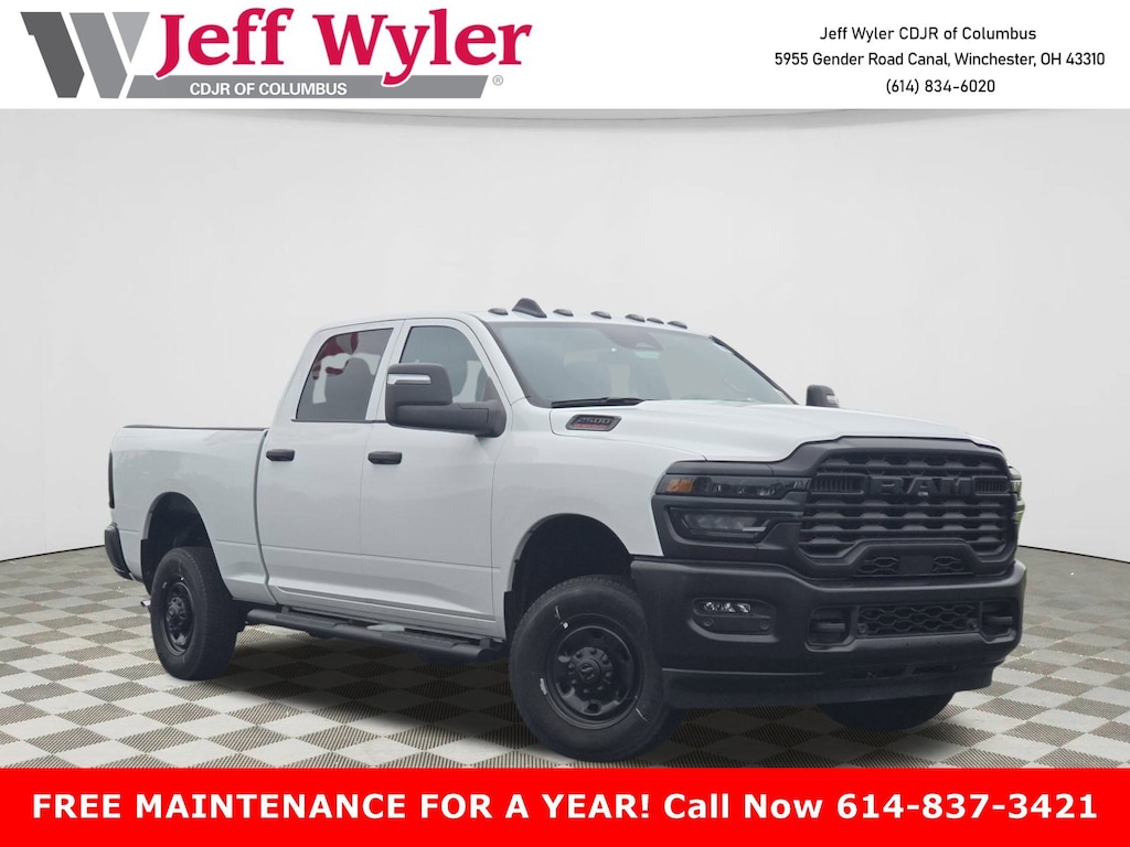 Jeff Wyler Columbus Auto Mall is delighted to offer this beautiful-looking 2025 Ram 2500 Tradesman in Bright White Clearcoat. Well equipped with: Quick Order Package 2UA Tradesman, Tradesman Level 1 Equipment Group (115V Auxiliary Front Power Outlet, 12" Touchscreen Display, 2 Way Rear Headrest Seat, 4 Way Front Headrests, 40/20/40 Split Bench Seat, 400W Inverter, 4G LTE Wi-Fi Hot Spot, Air Conditioning ATC w/Dual Zone Control, Alexa Built-In, Anti-Spin Differential Rear Axle, Apple CarPlay, Auto-Dimming Rear-View Mirror, Black Exterior Mirrors, Carpet Floor Covering, Cloth 40/20/40 Bench Seat, Connected Travel & Traffic Services, Connectivity - US/Canada, Disassociated Touchscreen Display, Emergency Vehicle Alert System (EVAS), Exterior 115V AC Outlet, Exterior Mirrors Courtesy Lamps, Exterior Mirrors w/Heating Element, Exterior Mirrors w/Supplemental Signals, Front & Rear Floor Mats, Front Armrest w/Cupholders, Global Telematics Box Module (TBM), Google Android Auto, GPS Antenna Input, GPS Navigation, HD Radio, Integrated Voice Command w/Bluetooth, Manual Adjust 4-Way Driver Seat, Manual Adjust 4-Way Front Passenger Seat, Manual Folding Exterior Mirrors, Manual Telescoping Mirrors, Mirror Running Lights, Mopar Black Tubular Side Steps, Off-Road Info Pages, ParkSense Front/Rear Park Assist System, Power Adjust Mirrors, Power Adjustable Convex Aux Mirrors, Power Heated Folding Telescope Mirrors, Radio: Uconnect 5 Nav w/12.0" Display, Rear Folding Seat, Rear Power Sliding Window, Remote USB Port - Charge Only, Selectable Tire Fill Alert, SiriusXM Radio Service, SiriusXM w/360L, Storage Tray, Tinted Acoustic Windshield Glass, and Trailer Tow Pages), 4-Wheel Disc Brakes, 6 Speakers, ABS brakes, Air Conditioning, AM/FM radio: SiriusXM, Apple CarPlay/Android Auto, Black Wheel Center Hub, Brake assist, Clearance Lamps, Compass, Dash Pass Thru Wire Circuits, Delay-off headlights, Driver door bin, Dual front impact airbags, Dual front side impact airbags, Electronic Stability Control, Front anti-roll bar, Front Center Armrest w/Storage, Front fog lights, Front License Plate Bracket, Front reading lights, Fully automatic headlights, Heavy Duty Vinyl 40/20/40 Split Bench Seat, I/P Mounted Auxiliary Switches, Illuminated entry, Low tire pressure warning, Occupant sensing airbag, Outside temperature display, Overhead airbag, Overhead console, Panic alarm, ParkView Rear Back-Up Camera, Passenger door bin, Passenger vanity mirror, Power steering, Power windows, Radio data system, Radio: Uconnect 5 w/8.4" Display, Rear anti-roll bar, Rear step bumper, Rear window defroster, Remote keyless entry, Speed control, Tachometer, Tilt steering wheel, Traction control, Variably intermittent wipers, Voltmeter, and Wheels: 17" x 7.5" Black Steel Styled.Wyler Family First Package Includes: NanoCure Appearance Protection: Exterior & Interior Chemical Sealant Applied to Protect Against Environmental Hazards (7 Year Warranty Coverage). Pulse- Rear End Collision Avoidance System Theft Deterrent Strategy gives you 5 Years of Coverage against vehicle theft, Offering up to a $5,000 benefit. Price does not include Tax, Title, License and Documentary Fee$1000 - Driveability / Automobility Program. Exp. 01/05/2026 $2000 - 2025 National Bonus Cash . Exp. 11/03/2025 $500 - 2025 National 2025 Military Bonus Cash. Exp. 01/05/2026