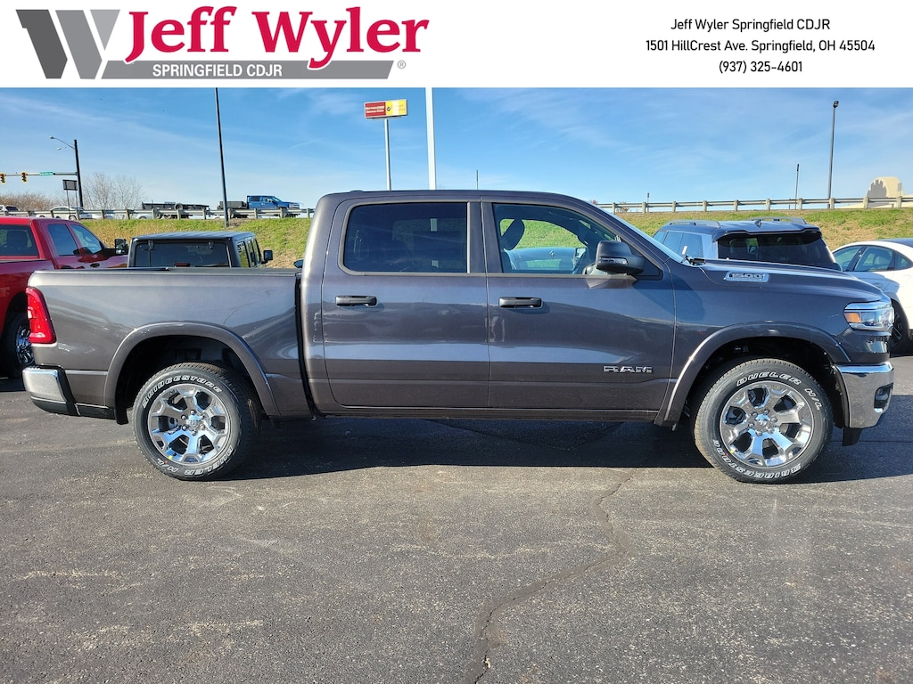 Jeff Wyler Springfield Auto Mall is delighted to offer this good-looking 2026 Ram 1500 Big Horn/Lone Star in Granite Crystal Metallic Clearcoat. Well equipped with: Big Horn Level 2 Equipment Group (115V Auxiliary Power Outlet, 115V Auxiliary Rear Power Outlet, 12" Touchscreen Display, 2nd Row In Floor Storage Bins, 3 Rear Seat Head Restraints, 4 Way Front Headrests, 400W Inverter, 4G LTE Wi-Fi Hot Spot, 9 Amplified Speakers w/Subwoofer, Air Conditioning ATC w/Dual Zone Control, Apple CarPlay, Auto Power-Folding Mirrors, Auto-Dimming Exterior Driver Mirror, Auto-Dimming Rear-View Mirror, Black Exterior Mirrors, Black Premium Power Mirrors, Body Color Fender Flares, Bucket Seats, Center Console Parts Module, Cluster 7.0" TFT Color Display, Configurable Drive Mode, Connected Travel & Traffic Services, Connectivity - US/Canada, Convex Wide-Angle Exterior Mirror Insert, Deluxe Cloth Bucket Seats, Disassociated Touchscreen Display, Exterior Mirrors Courtesy Lamps, Exterior Mirrors w/Heating Element, Exterior Mirrors w/Supplemental Signals, Front Seat Back Map Pockets, Full Length Floor Console, Global Telematics Box Module (TBM), Glove Box Lamp, Google Android Auto, GPS Antenna Input, GPS Navigation, HD Radio, Heated Front Seats, Heated Steering Wheel, Integrated Center Stack Radio, Integrated Voice Command w/Bluetooth, Leather Wrapped Steering Wheel, LED Dome Lamp w/On/Off Switch, LED Footwell Lighting, Manual Adjust 4-Way Front Passenger Seat, Media Hub w/2 Charge Only USBs, Overhead LED Lamps, Power 2-Way Driver Lumbar Adjust, Power Adjust 8-Way Driver Seat, Power Adjustable Pedals, Premium Overhead Console, Radio: Uconnect 5 Nav w/12.0" Display, Rear 60/40 Folding Seat, Rear Center Armrest, Rear Power Sliding Window, Rear Window Defroster, Remote Tailgate Release, Security Alarm, SiriusXM Radio Service, SiriusXM w/360L, Steering Wheel Mounted Audio Controls, Sun Visors w/Illuminated Vanity Mirrors, Universal Garage Door Opener, USB Host Flip, and Wheels: 20" x 9" Aluminum Chrome Clad (WRK)), Quick Order Package 21Z Big Horn, 4-Wheel Disc Brakes, 48V Belt Starter Generator, 6 Speakers, ABS brakes, Air Conditioning, Alloy wheels, AM/FM radio, Anti-Spin Differential Rear Axle, Apple CarPlay/Android Auto, Auto High-beam Headlights, Brake assist, Bumpers: chrome, Cloth Bucket Seats, Compass, Delay-off headlights, Driver door bin, Dual front impact airbags, Dual front side impact airbags, Electronic Stability Control, Front anti-roll bar, Front Bucket Seats, Front Center Armrest w/Storage, Front fog lights, Front License Plate Bracket, Front reading lights, Front wheel independent suspension, Fully automatic headlights, Heated door mirrors, Illuminated entry, Low tire pressure warning, Manual Adjust 4-Way Driver Seat, Manual Folding Exterior Mirrors, MOPAR Front & Rear Rubber Floor Mats, Occupant sensing airbag, Outside temperature display, Overhead airbag, Overhead console, Panic alarm, ParkView Rear Back-Up Camera, Passenger door bin, Passenger vanity mirror, Power door mirrors, Power steering, Power windows, Radio data system, Radio: Uconnect 5 W w/8.4" Display, RAM Grille Badge - Chrome, Rear anti-roll bar, Rear step bumper, Rear Wheelhouse Liners, Remote keyless entry, Speed control, Supplier Part Tracking (J-1), Tachometer, Telescoping steering wheel, Tilt steering wheel, Traction control, Trailer Brake Control, Trip computer, Variably intermittent wipers, Voltmeter, and Wheels: 18" x 8" Cast-Aluminum Painted. 18/24 City/Highway MPGWyler Family First Package Includes: NanoCure Appearance Protection: Exterior & Interior Chemical Sealant Applied to Protect Against Environmental Hazards (7 Year Warranty Coverage). Pulse- Rear end Collision Avoidance System Theft Deterrent Strategy gives you 5 Years of Coverage against vehicle Theft, Offering up to a $5,000 benefit. Available Incentives: $3500 - 2026 National Retail Consumer Cash . Exp. 12/01/2025 $500 - 2026 National 2026 Military Bonus Cash . Exp. 01/05/2026