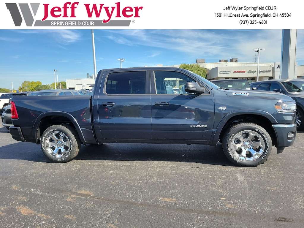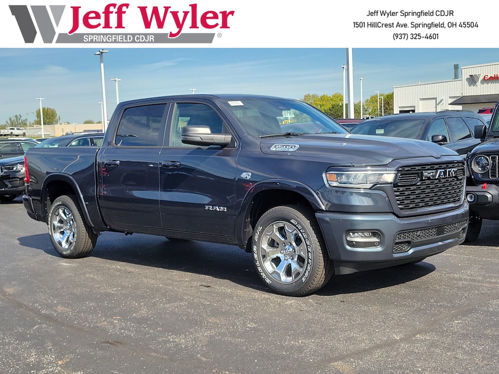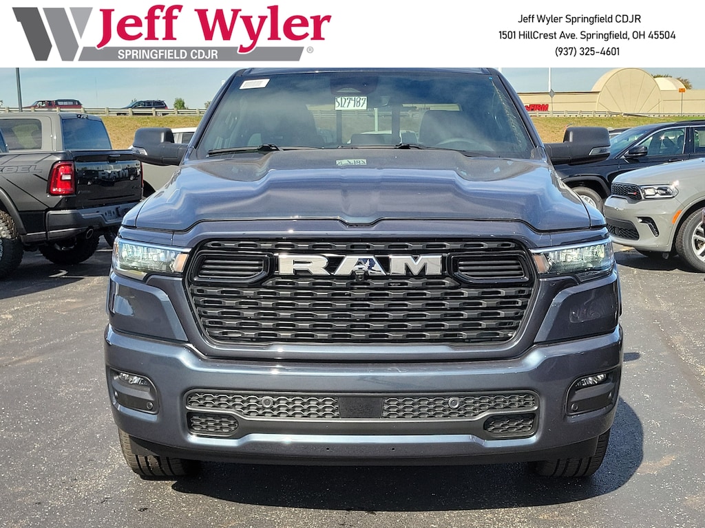 Jeff Wyler Springfield Auto Mall is pleased to offer this gorgeous 2026 Ram 1500 Big Horn/Lone Star in Forged Blue Metallic. Well equipped with: Big Horn Level 2 Equipment Group (115V Auxiliary Power Outlet, 115V Auxiliary Rear Power Outlet, 12" Touchscreen Display, 2nd Row In Floor Storage Bins, 3 Rear Seat Head Restraints, 4 Way Front Headrests, 400W Inverter, 4G LTE Wi-Fi Hot Spot, 9 Amplified Speakers w/Subwoofer, Air Conditioning ATC w/Dual Zone Control, Apple CarPlay, Auto Power-Folding Mirrors, Auto-Dimming Exterior Driver Mirror, Auto-Dimming Rear-View Mirror, Black Exterior Mirrors, Black Premium Power Mirrors, Body Color Fender Flares, Bucket Seats, Center Console Parts Module, Cluster 7.0" TFT Color Display, Configurable Drive Mode, Connected Travel & Traffic Services, Connectivity - US/Canada, Convex Wide-Angle Exterior Mirror Insert, Deluxe Cloth Bucket Seats, Disassociated Touchscreen Display, Exterior Mirrors Courtesy Lamps, Exterior Mirrors w/Heating Element, Exterior Mirrors w/Supplemental Signals, Front Seat Back Map Pockets, Full Length Floor Console, Global Telematics Box Module (TBM), Glove Box Lamp, Google Android Auto, GPS Antenna Input, GPS Navigation, HD Radio, Heated Front Seats, Heated Steering Wheel, Integrated Center Stack Radio, Integrated Voice Command w/Bluetooth, Leather Wrapped Steering Wheel, LED Dome Lamp w/On/Off Switch, LED Footwell Lighting, Manual Adjust 4-Way Front Passenger Seat, Media Hub w/2 Charge Only USBs, Overhead LED Lamps, Power 2-Way Driver Lumbar Adjust, Power Adjust 8-Way Driver Seat, Power Adjustable Pedals, Premium Overhead Console, Radio: Uconnect 5 Nav w/12.0" Display, Rear 60/40 Folding Seat, Rear Center Armrest, Rear Power Sliding Window, Rear Window Defroster, Remote Tailgate Release, Secondary Active Grille Shutters, Security Alarm, SiriusXM Radio Service, SiriusXM w/360L, Steering Wheel Mounted Audio Controls, Sun Visors w/Illuminated Vanity Mirrors, Universal Garage Door Opener, USB Host Flip, Wheels: 20" x 9" Aluminum Chrome Clad (WRK), and Wireless Charging Pad), Quick Order Package 27Z Big Horn, Sport Appearance Package (Black Interior Accents, Body Color Door Handles, Body Color Front Bumper, Body Color Rear Bumper w/Step Pads, Body Color Tailgate Handle, Grille Surround 1 Body Color Texture 1 Black, and RAM Grille Badge - Chrome), 33 Gallon Fuel Tank, 4-Wheel Disc Brakes, 48V Belt Starter Generator, 6 Speakers, ABS brakes, Air Conditioning, Alloy wheels, AM/FM radio, Anti-Spin Differential Rear Axle, Apple CarPlay/Android Auto, Auto High-beam Headlights, Brake assist, Bumpers: chrome, Cloth Bucket Seats, Cluster 12" TFT Color Display, Compass, Delay-off headlights, Driver door bin, Dual front impact airbags, Dual front side impact airbags, Electronic Stability Control, Front anti-roll bar, Front Bucket Seats, Front Center Armrest w/Storage, Front fog lights, Front License Plate Bracket, Front reading lights, Front wheel independent suspension, Fully automatic headlights, Heated door mirrors, Illuminated entry, Low tire pressure warning, Manual Adjust 4-Way Driver Seat, Manual Folding Exterior Mirrors, MOPAR Front & Rear Rubber Floor Mats, Occupant sensing airbag, Outside temperature display, Overhead airbag, Overhead console, Panic alarm, ParkView Rear Back-Up Camera, Passenger door bin, Passenger vanity mirror, Power door mirrors, Power steering, Power windows, Radio data system, Radio: Uconnect 5 W w/8.4" Display, Rear anti-roll bar, Rear step bumper, Remote keyless entry, Speed control, Supplier Part Tracking (J-1), Tachometer, Telescoping steering wheel, Tilt steering wheel, Traction control, Trailer Brake Control, Trip computer, Variably intermittent wipers, Voltmeter, and Wheels: 18" x 8" Cast-Aluminum Painted.Wyler Family First Package Includes: NanoCure Appearance Protection: Exterior & Interior Chemical Sealant Applied to Protect Against Environmental Hazards (7 Ye Available Incentives: $3500 - 2026 National Retail Consumer Cash . Exp. 11/03/2025