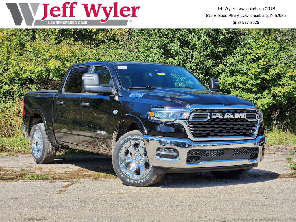 Jeff Wyler Chrysler Dodge Jeep of Lawrenceburg is proud to offer this stunning-looking 2026 Ram 1500 Big Horn/Lone Star in Diamond Black Crystal Pearlcoat. Well equipped with: Big Horn Level 2 Equipment Group (115V Auxiliary Power Outlet, 115V Auxiliary Rear Power Outlet, 12" Touchscreen Display, 2nd Row In Floor Storage Bins, 3 Rear Seat Head Restraints, 4 Way Front Headrests, 400W Inverter, 4G LTE Wi-Fi Hot Spot, 9 Amplified Speakers w/Subwoofer, Air Conditioning ATC w/Dual Zone Control, Apple CarPlay, Auto Power-Folding Mirrors, Auto-Dimming Exterior Driver Mirror, Auto-Dimming Rear-View Mirror, Black Exterior Mirrors, Black Premium Power Mirrors, Body Color Fender Flares, Bucket Seats, Center Console Parts Module, Cluster 7.0" TFT Color Display, Configurable Drive Mode, Connected Travel & Traffic Services, Connectivity - US/Canada, Convex Wide-Angle Exterior Mirror Insert, Deluxe Cloth Bucket Seats, Disassociated Touchscreen Display, Exterior Mirrors Courtesy Lamps, Exterior Mirrors w/Heating Element, Exterior Mirrors w/Supplemental Signals, Front Seat Back Map Pockets, Full Length Floor Console, Global Telematics Box Module (TBM), Glove Box Lamp, Google Android Auto, GPS Antenna Input, GPS Navigation, HD Radio, Heated Front Seats, Heated Steering Wheel, Integrated Center Stack Radio, Integrated Voice Command w/Bluetooth, Leather Wrapped Steering Wheel, LED Dome Lamp w/On/Off Switch, LED Footwell Lighting, Manual Adjust 4-Way Front Passenger Seat, Media Hub w/2 Charge Only USBs, Overhead LED Lamps, Power 2-Way Driver Lumbar Adjust, Power Adjust 8-Way Driver Seat, Power Adjustable Pedals, Premium Overhead Console, Radio: Uconnect 5 Nav w/12.0" Display, Rear 60/40 Folding Seat, Rear Center Armrest, Rear Power Sliding Window, Rear Window Defroster, Remote Tailgate Release, Security Alarm, SiriusXM Radio Service, SiriusXM w/360L, Steering Wheel Mounted Audio Controls, Sun Visors w/Illuminated Vanity Mirrors, Universal Garage Door Opener, USB Host Flip, and Wheels: 20" x 9" Aluminum Chrome Clad (WRK)), Quick Order Package 27Z Big Horn, 33 Gallon Fuel Tank, 4-Wheel Disc Brakes, 48V Belt Starter Generator, 6 Speakers, ABS brakes, Air Conditioning, Alloy wheels, AM/FM radio, Apple CarPlay/Android Auto, Auto High-beam Headlights, Black Trailer Tow Power Mirrors, Brake assist, Bumpers: chrome, Cloth Bucket Seats, Compass, Delay-off headlights, Driver door bin, Dual front impact airbags, Dual front side impact airbags, Electronic Stability Control, Front anti-roll bar, Front Bucket Seats, Front Center Armrest w/Storage, Front fog lights, Front reading lights, Front wheel independent suspension, Fully automatic headlights, Heated door mirrors, Illuminated entry, Low tire pressure warning, Manual Adjust 4-Way Driver Seat, Manual Folding Exterior Mirrors, Manual Telescoping Mirrors, Mirror Clearance/Running Lights, MOPAR Front & Rear Rubber Floor Mats, Occupant sensing airbag, Outside temperature display, Overhead airbag, Overhead console, Panic alarm, ParkView Rear Back-Up Camera, Passenger door bin, Passenger vanity mirror, Power door mirrors, Power steering, Power windows, Power-Adjustable Convex Aux Mirrors, Radio data system, Radio: Uconnect 5 W w/8.4" Display, RAM Grille Badge - Chrome, Rear anti-roll bar, Rear step bumper, Remote keyless entry, Speed control, Supplier Part Tracking (J-1), Tachometer, Telescoping steering wheel, Tilt steering wheel, Traction control, Trailer Brake Control, Trailer Tow Mirrors, Tri-Fold Tonneau Cover, Trip computer, Variably intermittent wipers, Voltmeter, and Wheels: 18" x 8" Cast-Aluminum Painted.Wyler Family First Package Includes: NanoCure Appearance Protection: Exterior & Interior Chemical Sealant Applied to Protect Against Environmental Hazards (7 Year Warranty Coverage). Pulse- Rear end Collision Avoidance System Theft Deterrent Strategy gives you 5 Years of Coverage against vehicle Theft, Offering up to a $5, Price includes: $3500 - 2026 National Retail Consumer Cash . Exp. 11/03/2025