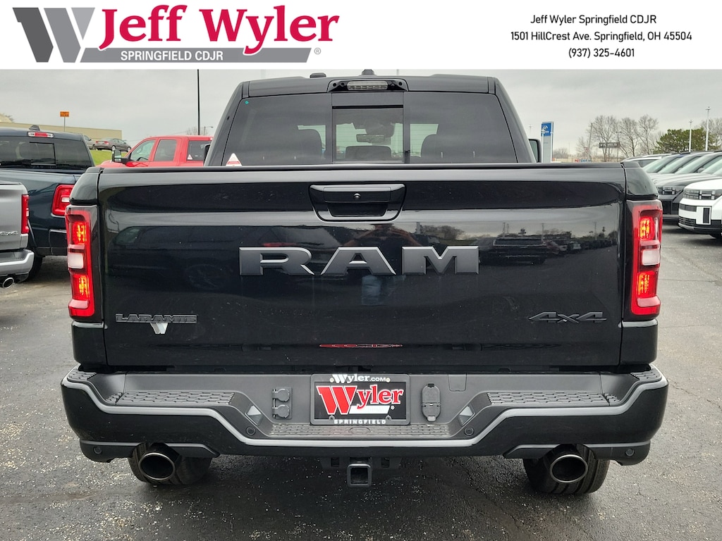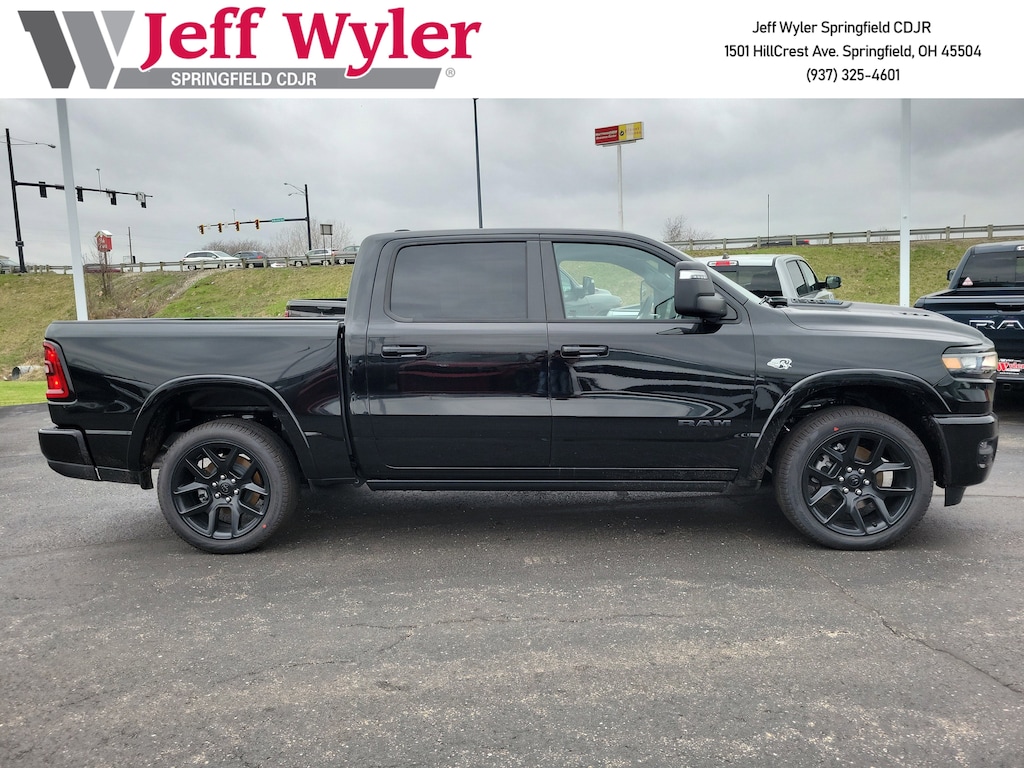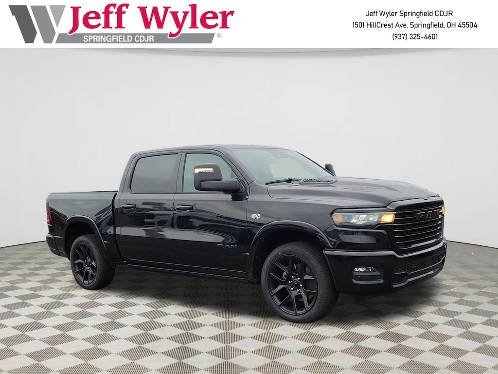 Jeff Wyler Springfield Auto Mall is very proud to offer this fantastic-looking 2026 Ram 1500 Laramie in Diamond Black Crystal Pearlcoat. Well equipped with: Advanced Safety Group II (12-Way/1-Way Trailer Connector, Active Driving Assist System, Drowsy Driver Detection, Evasive Steer Assist, Exterior Mirrors Approach Lamps, Intersection Collision Assist System, Surround View Camera System, and Traffic Sign Recognition), Laramie Level 2 Equipment Group (14.4" Touchscreen Display, 4G LTE Wi-Fi Hot Spot, Cluster 12" TFT Color Display, Connected Travel and Traffic Services, Connectivity - US/Canada, Front Passenger Interactive Display, GPS Navigation, Harman/Kardon 19 Speaker Premium Sound, Integrated Center Stack Radio, Integrated Voice Command with Bluetooth, Power Tailgate, Radio: Uconnect 5 Nav with 14.4" Display, Rain Sensitive Windshield Wipers, SiriusXM Radio Service, SiriusXM with 360L, and USB Host Flip), Night Edition (Accent Color Door Handles, Accent Color Premium Power Mirrors, Accent Color Tailgate Handle, Anti-Spin Differential Rear Axle, Auto Power-Folding Mirrors, Auto-Dimming Exterior Driver Mirror, Black Exterior Truck Badging, Black Headlamp Bezels, Black Interior Accents, Black Painted Exterior Mirrors Caps, Black Tail Lamp Bezels, Body Color Front Bumper, Body Color Rear Bumper with Step Pads, Convex Wide-Angle Exterior Mirror Insert, Dual Exhaust with Black Tips, Exterior Mirrors Courtesy Lamps, Exterior Mirrors with Heating Element, Exterior Mirrors with Memory, Exterior Mirrors with Supplemental Signals, Grille Surround 3 Black Texture 2 Black, Pirelli Brand Tires, Proximity Approach/Departure Lamps, RAM Grille Badge - Black, Sport Performance Hood, and Wheels: 22" x 9" Forged Aluminum), Quick Order Package 27H Laramie, Technology Group (Heads-Up Display and LED CHMSL Lamp), Towing Technology Group (Trailer Hitch Line-Up Assist), Trailer Tow Group (Trailer Brake Control, Trailer Reverse Steering Control, and Trailer Tire Pressure Monitoring System), 10 Speakers, 240 Amp Alternator, 4-Wheel Disc Brakes, ABS brakes, Active Noise Control System, Adjustable pedals, Air Conditioning, Alloy wheels, AM/FM radio: SiriusXM with 360L, Apple CarPlay/Android Auto, Audio memory, Auto High-beam Headlights, Auto-dimming door mirrors, Auto-Dimming Exterior Passenger Mirror, Auto-dimming Rear-View mirror, Automatic temperature control, Black Exterior Mirrors, Black Power-Fold Trailer Tow Mirrors, Brake assist, Bumpers: chrome, Chrome Exterior Mirrors, Compass, Delay-off headlights, Dome Dual LED Reading Lamp, Driver door bin, Driver vanity mirror, Dual front impact airbags, Dual front side impact airbags, Dual-Pane Panoramic Sunroof, E-Locker Rear Axle, Electronic Stability Control, Forward and Reverse Utility Lights, Front anti-roll bar, Front Bucket Seats, Front Center Armrest w/Storage, Front dual zone A/C, Front fog lights, Front License Plate Bracket, Front reading lights, Front wheel independent suspension, Fully automatic headlights, Garage door transmitter, Hands-Free Active Driving Assist System, Heated door mirrors, Heated front seats, Heated rear seats, Heated steering wheel, Illuminated entry, Leather steering wheel, Leather Trimmed Bucket Seats, LED Dome/Reading Lamp, Low tire pressure warning, Memory seat, Mirror Clearance/Running Lights, Navigation System, Occupant sensing airbag, Off-Road Information Pages, Outside temperature display, Overhead airbag, Overhead console, Panic alarm, ParkView Rear Back-Up Camera, Passenger door bin, Passenger vanity mirror, Pedal memory, Power Deployable Running Boards, Power door mirrors, Power driver seat, Power passenger seat, Power steering, Power Telescoping Mirrors, Power windows, Power-Adjustable Convex Aux Mirrors, Radio data system, Radio: Uconnect 5 Navigation with 12.0" Display, RAM Grille Badge - Chrome, Rear anti-roll bar, Rear rea Available Incentives: $1000 - 2026 National Bonus Cash . Exp. 03/31/2026 $3500 - 2026 National Retail Bonus Cash . Exp. 03/31/2026
