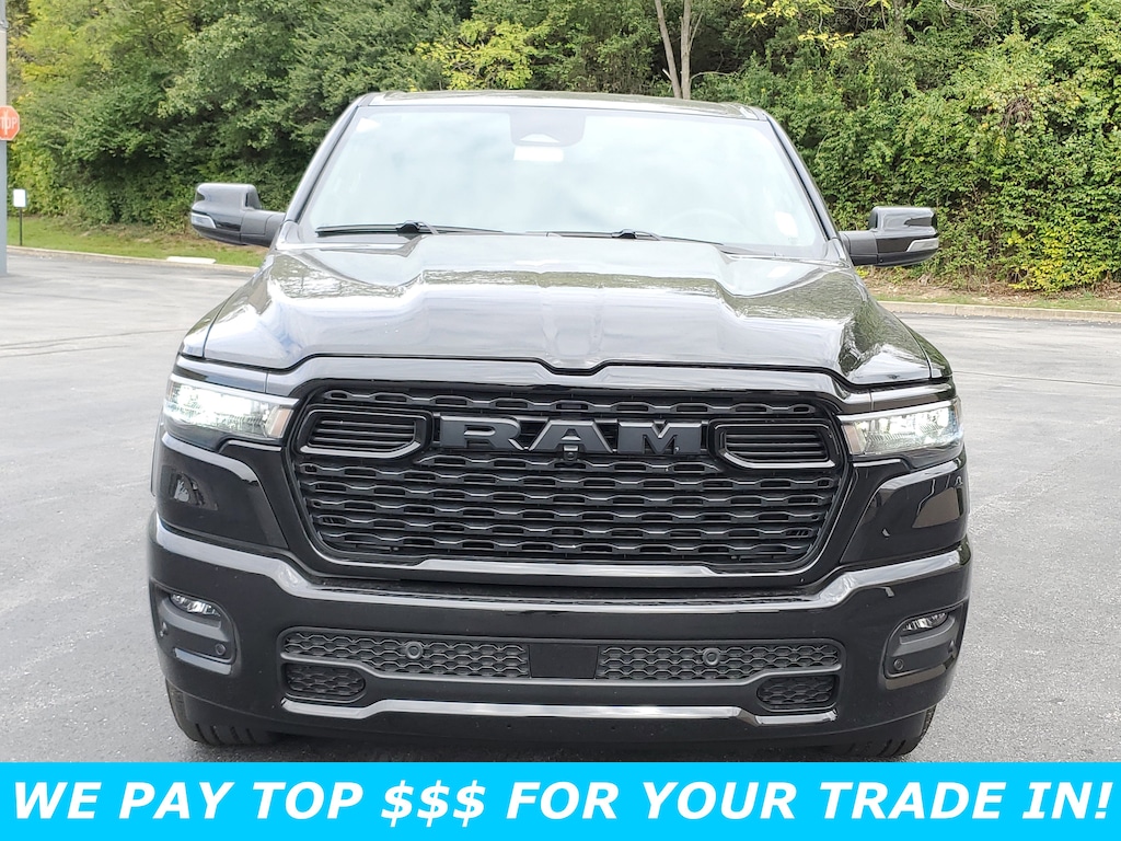 RADIO: UCONNECT 5 NAV W/12.0" DISPLAY, NIGHT EDITION -inc: Tires: 275/55R20 OWL All Season, Bridgestone Brand Tires, Accent Color Premium Power Mirrors, Exterior Mirrors w/Supplemental Signals, Black Headlamp Bezels, Exterior Mirrors Courtesy Lamps, Grille Black Surround Black Mesh, Auto Power-Folding Mirrors, Wheels: 20" x 9.0" Aluminum Painted Clad, Auto Dim Exterior Driver Mirror, Black Exterior Truck Badging, Anti-Spin Differential Rear Axle, Accent Color Door Handles, Accent Color Tailgate Handle, Black Interior Accents, Dual Exhaust w/Black Tips, Body Color Front Bumper, Body Color Rear Bumper w/Step Pads, Black Tail Lamp Bezels, RAM Grille Badge - Black, Black Painted Exterior Mirrors Caps, MOPAR FRONT & REAR RUBBER FLOOR MATS, GVWR: 7,100 LBS, DIAMOND BLACK CRYSTAL PEARLCOAT, BLACK, DELUXE CLOTH BUCKET SEATS -inc: Power Adjust 8-Way Driver Seat, Rear 60/40 Folding Seat, Rear Center Armrest, Front Seat Back Map Pockets, Power 2-Way Driver Lumbar Adjust, BIG HORN LEVEL 2 EQUIPMENT GROUP -inc: SiriusXM Radio Service, Power Adjustable Pedals, Leather Wrapped Steering Wheel, 12" Touchscreen Display, Glove Box Lamp, Auto Power-Folding Mirrors, 115V Auxiliary Rear Power Outlet, Media Hub w/2 Charge Only USBs, Heated Front Seats, Security Alarm, Black Premium Power Mirrors, Premium Overhead Console, 9 Amplified Speakers w/Subwoofer, Disassociated Touchscreen Display, Secondary Active Grille Shutters, Wireless Charging Pad, Body Color Fender Flares, Remote Tailgate Release, 115V Auxiliary Power Outlet, LED Dome Lamp w/On/Off Switch, Universal Garage Door Opener, 2nd Row In Floor Storage Bins, Sun Visors w/Illuminated Vanity Mirrors, LED Footwell Lighting, Rear Window Defroster, Rear View Auto Dim Mirror, Rear Power Sliding Window, GPS Navigation, Overhead LED Lamps, Wheels: 20" x 9" Aluminum Chrome Clad (WRK), Tires: 275/55R20 OWL All Season, Bridgestone Brand Tires, Auto Dim Exterior Driver Mirror, SiriusXM w/360L, Connected Travel & Traffi, BED UTILITY GROUP -inc: MOPAR Spray In Bedliner, MOPAR 4 Adjustable Cargo Tie-Down Hooks, Pick-Up Box Lighting, Exterior 115V AC Outlet, ANTI-SPIN DIFFERENTIAL REAR AXLE, 9 AMPLIFIED SPEAKERS W/SUBWOOFER.