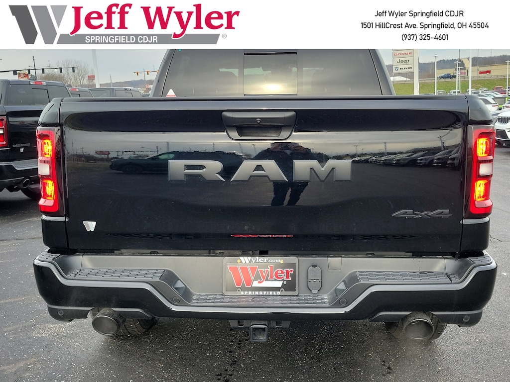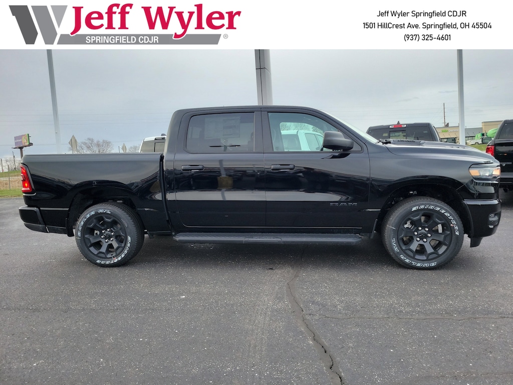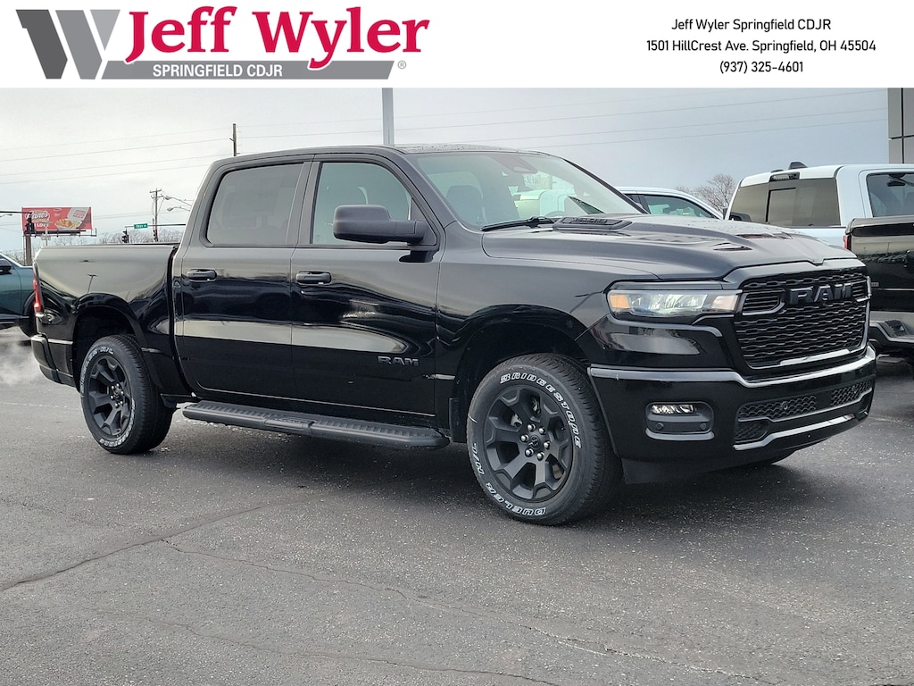Priced below KBB Fair Purchase Price! Jeff Wyler Springfield Auto Mall is very proud to offer this outstanding-looking 2026 Ram 1500 Express in Diamond Black Crystal Pearlcoat. Well equipped with: Black Express Edition (2nd Row in Floor Storage Bins, 3 Rear Seat Head Restraints, 4 Way Front Headrests, Anti-Spin Differential Rear Axle, Black Chrome Front Lower Fascia Trim, Black Interior Accents, Body Color Front Bumper, Body Color Rear Bumper with Step Pads, Bridgestone Brand Tires, Bucket Seats, Center Console Parts Module, Cloth Bucket Seats, Cluster 7.0" TFT Color Display, For More Info, Call 800-643-2112, Front and Rear Floor Mats, Front LED Fog Lamps, Full Length Floor Console, Grille Black Surround Black Mesh, Manual Adjust 4-Way Driver Seat, Manual Adjust 4-Way Front Passenger Seat, Mopar Black Tubular Side Steps, Rear Folding Seat, Rear Power Sliding Window, SiriusXM Radio Service, SiriusXM Satellite Radio, Sport Performance Hood, and Wheels: 20" x 9.0" Aluminum Painted Clad), Quick Order Package 21D Express (Front Center Seat Cushion Storage, Grille Surround 1 Body Color Texture 1 Black, and Wheels: 20" x 9.0" Aluminum Polished Painted), Tradesman Level 1 Equipment Group (Cloth Bench Seat), 4-Wheel Disc Brakes, 48V Belt Starter Generator, 4G LTE Wi-Fi Hot Spot, 6 Speakers, ABS brakes, Air Conditioning, AM/FM radio, Apple CarPlay, Apple CarPlay/Android Auto, Auto High-beam Headlights, Black Exterior Mirrors, Brake assist, Compass, Connectivity - US/Canada, Delay-off headlights, Driver door bin, Dual front impact airbags, Dual front side impact airbags, Electronic Stability Control, Exterior Mirrors with Heating Element, For Details Visit DriveUconnect.com, Front anti-roll bar, Front Center Armrest, Front License Plate Bracket, Front reading lights, Front wheel independent suspension, Fully automatic headlights, Global Telematics Box Module, Google Android Auto, GPS Antenna Input, Heated door mirrors, Heavy Duty Vinyl 40/20/40 Split Bench Seat, Illuminated entry, Integrated Center Stack Radio, Integrated Voice Command with Bluetooth, Low tire pressure warning, Manual Folding Exterior Mirrors, Occupant sensing airbag, Outside temperature display, Overhead airbag, Overhead console, Panic alarm, ParkView Rear Back-Up Camera, Passenger door bin, Passenger vanity mirror, Power door mirrors, Power steering, Power windows, Radio data system, Radio: Uconnect 5 W with 8.4" Display, Rear anti-roll bar, Rear step bumper, Remote keyless entry, Speed control, Supplier Part Tracking (J-1), Tachometer, Telescoping steering wheel, Tilt steering wheel, Traction control, USB Host Flip, Variably intermittent wipers, Voltmeter, and Wheels: 18" x 7.5" Steel PainteD. 18/24 City/Highway MPGWyler Family First Package Includes: NanoCure Appearance Protection: Exterior & Interior Chemical Sealant Applied to Protect Against Environmental Hazards (7 Year Warranty Coverage). Pulse- Rear end Collision Avoidance System Theft Deterrent Strategy gives you 5 Years of Coverage against vehicle Theft, Offering up to a $5,000 benefit. Available Incentives: $3500 - 2026 National Retail Bonus Cash . Exp. 04/30/2026 $500 - 2026 National 2026 Military Bonus Cash . Exp. 01/04/2027