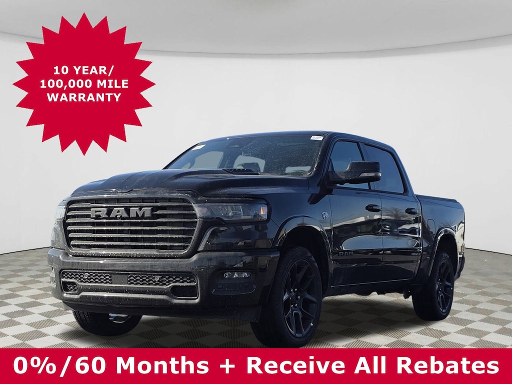 Jeff Wyler Columbus Auto Mall is delighted to offer this terrific 2026 Ram 1500 Laramie in Diamond Black Crystal Pearlcoat. Well equipped with: Laramie Level 2 Equipment Group (14.4" Touchscreen Display, 4G LTE Wi-Fi Hot Spot, Cluster 12" TFT Color Display, Connected Travel and Traffic Services, Connectivity - US/Canada, Front Passenger Interactive Display, GPS Navigation, Harman/Kardon 19 Speaker Premium Sound, Integrated Center Stack Radio, Integrated Voice Command with Bluetooth, Power Tailgate, Radio: Uconnect 5 Nav with 14.4" Display, Rain Sensitive Windshield Wipers, SiriusXM Radio Service, SiriusXM with 360L, and USB Host Flip), Night Edition (Accent Color Door Handles, Accent Color Premium Power Mirrors, Accent Color Tailgate Handle, Anti-Spin Differential Rear Axle, Auto Power-Folding Mirrors, Auto-Dimming Exterior Driver Mirror, Black Exterior Truck Badging, Black Headlamp Bezels, Black Interior Accents, Black Painted Exterior Mirrors Caps, Black Tail Lamp Bezels, Body Color Front Bumper, Body Color Rear Bumper with Step Pads, Convex Wide-Angle Exterior Mirror Insert, Dual Exhaust with Black Tips, Exterior Mirrors Approach Lamps, Exterior Mirrors Courtesy Lamps, Exterior Mirrors with Heating Element, Exterior Mirrors with Memory, Exterior Mirrors with Supplemental Signals, Grille Surround 3 Black Texture 2 Black, Pirelli Brand Tires, Proximity Approach/Departure Lamps, RAM Grille Badge - Black, Sport Performance Hood, and Wheels: 22" x 9" Forged Aluminum), Quick Order Package 27H Laramie, 10 Speakers, 4-Wheel Disc Brakes, ABS brakes, Active Noise Control System, Adjustable pedals, Air Conditioning, Alloy wheels, AM/FM radio: SiriusXM with 360L, Apple CarPlay/Android Auto, Audio memory, Auto High-beam Headlights, Auto-dimming door mirrors, Auto-dimming Rear-View mirror, Automatic temperature control, Brake assist, Bumpers: chrome, Chrome Exterior Mirrors, Compass, Delay-off headlights, Dome Dual LED Reading Lamp, Driver door bin, Driver vanity mirror, Dual front impact airbags, Dual front side impact airbags, Dual-Pane Panoramic Sunroof, Electronic Stability Control, Front anti-roll bar, Front Bucket Seats, Front Center Armrest w/Storage, Front dual zone A/C, Front fog lights, Front License Plate Bracket, Front reading lights, Front wheel independent suspension, Fully automatic headlights, Garage door transmitter, Heated door mirrors, Heated front seats, Heated rear seats, Heated steering wheel, Illuminated entry, Leather steering wheel, Leather Trimmed Bucket Seats, LED Dome/Reading Lamp, Low tire pressure warning, Memory seat, MOPAR Front and Rear Rubber Floor Mats, MyFlexCare Service Plan, Navigation System, Occupant sensing airbag, Off-Road Information Pages, Outside temperature display, Overhead airbag, Overhead console, Panic alarm, ParkView Rear Back-Up Camera, Passenger door bin, Passenger vanity mirror, Pedal memory, Power door mirrors, Power driver seat, Power passenger seat, Power steering, Power windows, Radio data system, Radio: Uconnect 5 Navigation with 12.0" Display, RAM Grille Badge - Chrome, Rear anti-roll bar, Rear reading lights, Rear seat center armrest, Rear step bumper, Remote keyless entry, Security system, Speed control, Split folding rear seat, Steering wheel mounted audio controls, Tachometer, Telescoping steering wheel, Tilt steering wheel, Traction control, Trailer Brake Control, Tri-Fold Tonneau Cover, Trip computer, Turn signal indicator mirrors, Variably intermittent wipers, Ventilated front seats, Voltmeter, and Wheels: 20" x 9" Premium Paint/Polish.Wyler Family First Package Includes: NanoCure Appearance Protection: Exterior & Interior Chemical Sealant Applied to Protect Against Environmental Hazards (7 Year Warranty Coverage). Pulse- Rear End Collis Price does not include Tax, Title, License and Documentary Fee$1000 - 2026 National Bonus Cash . Exp. 03/31/2026 $3500 - 2026 National Retail Bonus Cash . Exp. 03/31/2026 $500 - 2026 National 2026 Military Bonus Cash . Exp. 01/04/2027