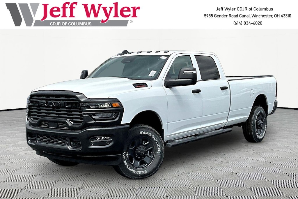 Jeff Wyler Columbus Auto Mall is very proud to offer this charming-looking 2026 Ram 2500 Tradesman in Bright White Clearcoat. Well equipped with: Commercial Features Package, Quick Order Package 2UA Tradesman, Tradesman Level 1 Equipment Group (115-Volt Auxiliary Front Power Outlet, 12" Touchscreen Display, 400W Inverter, 4G LTE Wi-Fi Hot Spot, Air Conditioning ATC with Dual Zone Control, Alexa Built-in, Anti-Spin Differential Rear Axle, Apple CarPlay, Auto-Dimming Rear-View Mirror, Connected Travel and Traffic Services, Connectivity - US/Canada, Disassociated Touchscreen Display, Emergency Vehicle Alert System (EVAS), Exterior 115V AC Outlet, For Details, Visit DriveUconnect.com, For More Info, Call 800-643-2112, Global Telematics Box Module, Google Android Auto, GPS Antenna Input, GPS Navigation, HD Radio, Integrated Voice Command with Bluetooth, Off-Road Info Pages, Radio: Uconnect 5 Navigation with 12.0" Display, Rear Power Sliding Window, Selectable Tire Fill Alert, SiriusXM Radio Service, SiriusXM with 360L, Tinted Acoustic Windshield Glass, and Trailer Tow Pages), 2 Way Rear Headrest Seat, 3.73 Axle Ratio, 4 Way Front Headrests, 4-Wheel Disc Brakes, 40/20/40 Split Bench Seat, 50 Gallon Fuel Tank, 6 Speakers, ABS brakes, Add Vinyl Seat, Air Conditioning, AM/FM radio: SiriusXM, Apple CarPlay/Android Auto, Black Exterior Mirrors, Black Wheel Center Hub, Brake assist, Clearance Lamps, Compass, Delay-off headlights, Driver door bin, Dual front impact airbags, Dual front side impact airbags, Electronic Stability Control, Front anti-roll bar, Front Armrest with Cupholders, Front Center Armrest w/Storage, Front fog lights, Front License Plate Bracket, Front reading lights, Fully automatic headlights, Illuminated entry, Low tire pressure warning, Manual Adjust 4-Way Driver Seat, Manual Adjust 4-Way Front Passenger Seat, Manual Folding Exterior Mirrors, Manual Telescoping Mirrors, Mopar Black Tubular Side Steps, MyFlexCare Service Plan, Occupant sensing airbag, Outside temperature display, Overhead airbag, Overhead console, Panic alarm, ParkView Rear Back-Up Camera, Passenger door bin, Passenger vanity mirror, Power steering, Power windows, Radio data system, Radio: Uconnect 5 with 8.4" Display, Rear anti-roll bar, Rear Folding Seat, Rear step bumper, Rear window defroster, Remote keyless entry, Remote USB Port - Charge Only, Speed control, Storage Tray, Tachometer, Tilt steering wheel, Traction control, Variably intermittent wipers, Voltmeter, Wheels: 17" x 7.5" Black Steel Styled, and Wheels: 18" x 8.0" Black Painted SteeL.Wyler Family First Package Includes: NanoCure Appearance Protection: Exterior & Interior Chemical Sealant Applied to Protect Against Environmental Hazards (7 Year Warranty Coverage). Pulse- Rear End Collision Avoidance System Theft Deterrent Strategy gives you 5 Years of Coverage against vehicle theft, Offering up to a $5,000 benefit. Price does not include Tax, Title, License and Documentary Fee$1000 - 2026 National Bonus Cash . Exp. 04/30/2026 $2000 - 2026 Great Lakes BC Select Inventory Bonus Cash . Exp. 04/30/2026 $500 - 2026 National 2026 Military Bonus Cash . Exp. 01/04/2027