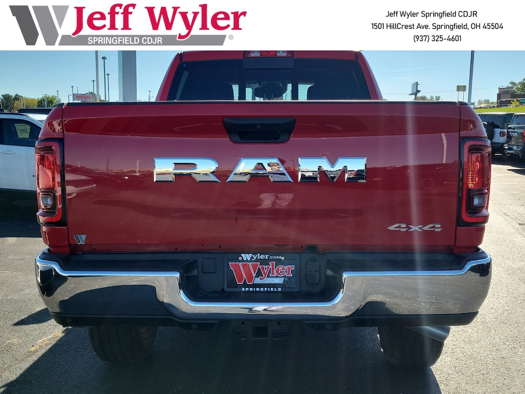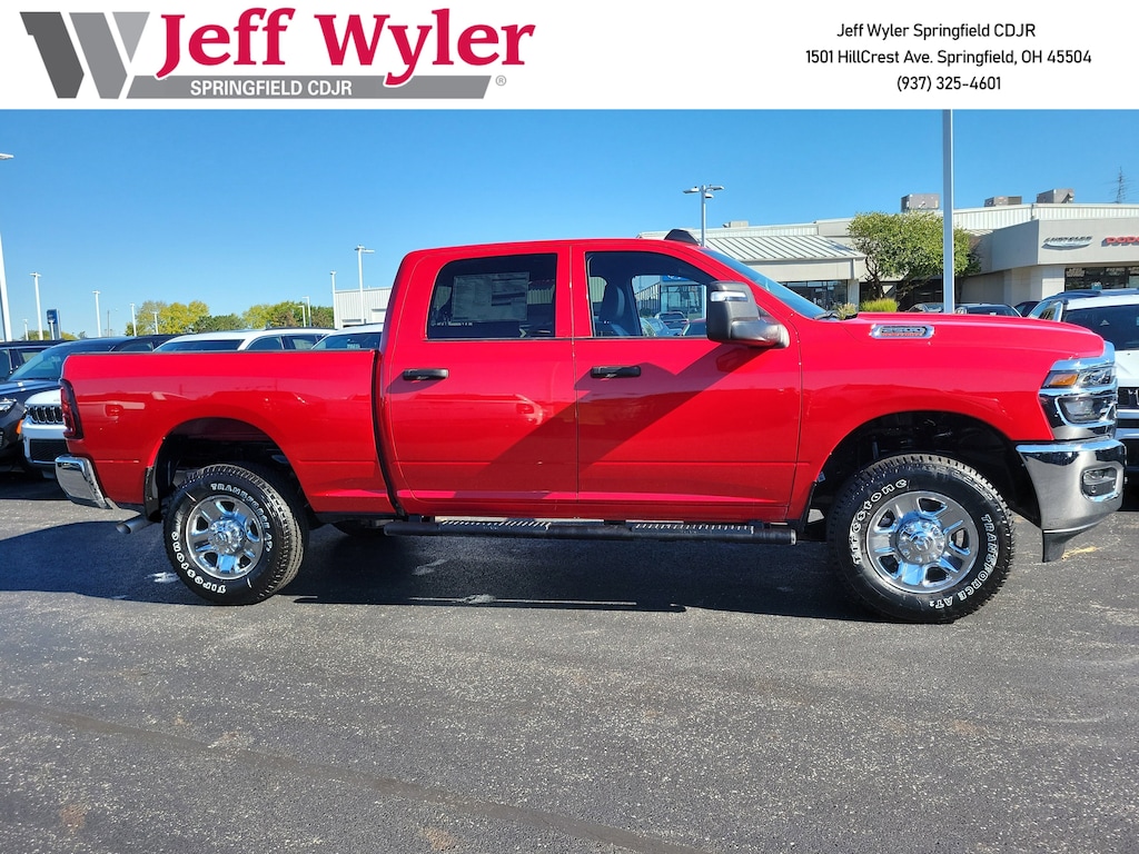 Jeff Wyler Springfield Auto Mall is pumped up to offer this good-looking 2026 Ram 2500 Tradesman in Flame Red Clearcoat. Well equipped with: Bed Utility Group (LED Bed Lighting, MOPAR Deployable Bed Step, and MOPAR Spray In Bedliner), Quick Order Package 2UA Tradesman, Tradesman Level 2 Equipment Group (115V Auxiliary Front Power Outlet, 12" Touchscreen Display, 400W Inverter, 4G LTE Wi-Fi Hot Spot, Air Conditioning ATC w/Dual Zone Control, Alexa Built-In, Anti-Spin Differential Rear Axle, Apple CarPlay, Auto-Dimming Rear-View Mirror, Black Exterior Mirrors, Bright Front Bumper, Bright Rear Bumper, Carpet Floor Covering, Center Hub, Chrome Grille Surround, Cloth 40/20/40 Bench Seat, Connected Travel & Traffic Services, Connectivity - US/Canada, Disassociated Touchscreen Display, Emergency Vehicle Alert System (EVAS), Exterior 115V AC Outlet, Exterior Mirrors Courtesy Lamps, Exterior Mirrors w/Heating Element, Exterior Mirrors w/Supplemental Signals, For Details, Visit DriveUconnect.com, For More Info, Call 800-643-2112, Front & Rear Floor Mats, Global Telematics Box Module (TBM), Google Android Auto, GPS Antenna Input, GPS Navigation, HD Radio, Integrated Voice Command w/Bluetooth, Manual Folding Exterior Mirrors, Manual Telescoping Mirrors, Matte Black Mesh Grille w/Chrome, Mirror Running Lights, Mopar Black Tubular Side Steps, Off-Road Info Pages, ParkSense Front/Rear Park Assist System, Power Adjust Mirrors, Power Heated Folding Telescope Mirrors, Power-Adjustable Convex Aux Mirrors, Radio: Uconnect 5 Nav w/12.0" Display, Rear Power Sliding Window, Selectable Tire Fill Alert, SiriusXM Radio Service, SiriusXM w/360L, Tinted Acoustic Windshield Glass, and Trailer Tow Pages), 2 Way Rear Headrest Seat, 4 Way Front Headrests, 4-Wheel Disc Brakes, 40/20/40 Split Bench Seat, 6 Speakers, ABS brakes, Air Conditioning, AM/FM radio: SiriusXM, Apple CarPlay/Android Auto, Black Wheel Center Hub, Brake assist, Compass, Delay-off headlights, Driver door bin, Dual front impact airbags, Dual front side impact airbags, Electronic Stability Control, Front anti-roll bar, Front Armrest w/Cupholders, Front Center Armrest w/Storage, Front fog lights, Front License Plate Bracket, Front reading lights, Fully automatic headlights, Heavy Duty Vinyl 40/20/40 Split Bench Seat, Illuminated entry, Low tire pressure warning, Manual Adjust 4-Way Driver Seat, Manual Adjust 4-Way Front Passenger Seat, MOPAR Front & Rear Rubber Floor Mats, Occupant sensing airbag, Outside temperature display, Overhead airbag, Overhead console, Panic alarm, ParkView Rear Back-Up Camera, Passenger door bin, Passenger vanity mirror, Power steering, Power windows, Radio data system, Radio: Uconnect 5 w/8.4" Display, Rear anti-roll bar, Rear Folding Seat, Rear step bumper, Rear window defroster, Remote keyless entry, Remote USB Port - Charge Only, Speed control, Storage Tray, Tachometer, Tilt steering wheel, Traction control, Variably intermittent wipers, Voltmeter, Wheels: 17" x 7.5" Black Steel Styled, and Wheels: 18" x 8.0" Steel Chrome ClaD.Wyler Family First Package Includes: NanoCure Appearance Protection: Exterior & Interior Chemical Sealant Applied to Protect Against Environmental Hazards (7 Year Warranty Coverage). Pulse- Rear end Collision Avoidance System Theft Deterrent Strategy gives you 5 Years of Coverage against vehicle Theft, Offering up to a $5,000 benefit. Available Incentives: $1000 - 2026 National Bonus Cash . Exp. 11/03/2025 $500 - 2026 National 2026 Military Bonus Cash . Exp. 01/05/2026