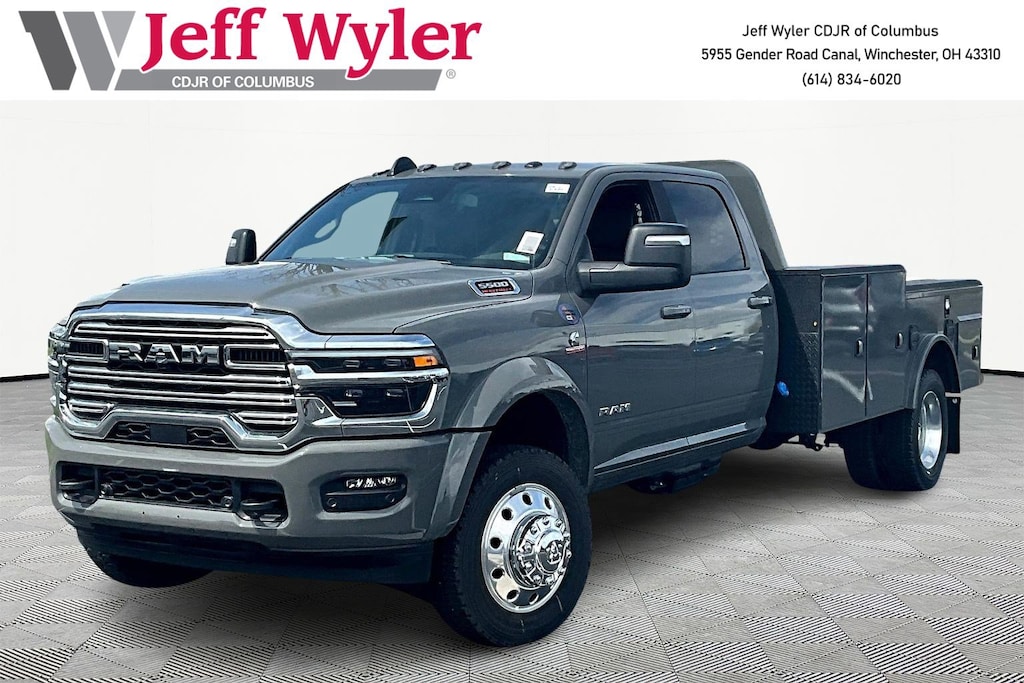 Jeff Wyler Columbus Auto Mall is excited to offer this good-looking 2026 Ram 5500HD Big Horn in Ceramic Gray Clearcoat. Well equipped with: Cold Weather Group (Engine Block Heater and MOPAR Winter Front Grille Cover), Heavy Duty Snow Plow Prep Group (Heavy Duty Front Suspension Group and Upgraded Rear HD Stabilizer Bar), Laramie Trim Group (#1 Seat Foam Cushion, 115V Auxiliary Power Outlet, 115V Auxiliary Rear Power Outlet, 12.0" Touchscreen Display, 17 Speaker Harman/Kardon Premium Sound, 2 Way Rear Headrest Seat, 2-Door Passive Entry, Front Door Locks, 4 Way Front Headrests, 400W Inverter, 4G LTE Wi-Fi Hot Spot, Air Conditioning ATC with Dual Zone Control, Alexa Built-in, Apple CarPlay, Auto High Beam Headlamp Control, Bi-Function LED Projector Headlamps, Body Color Door Handles, Body Color Fender Flares, Bucket Seats, Center Hub, CHMSL Lamp with Camera, Chrome Billets/Accents Grille, Cluster 12" TFT Color Display, Connected Travel and Traffic Services, Connectivity - US/Canada, Courtesy Lamps, Digital Rearview Mirror, Disassociated Touchscreen Display, Dual Glove Boxes, Dual Wireless Charging Pad, Foam Bottle Insert (door Trim Panel), Folding Flat Load Floor Storage, For Details, Visit DriveUconnect.com, For More Info, Call 800-643-2112, Front Door Accent Lighting, Front Seat Back Map Pockets, Full Length Upgraded Floor Console, Global Telematics Box Module, Glove Box Lamp, Google Android Auto, GPS Antenna Input, GPS Navigation, HD Radio, Heated 2nd Row Seats, Heated Front Seats, Heated Steering Wheel, High Back Seats, Highline Door Trim Panel, Integrated Voice Command with Bluetooth, Leather Trimmed Bucket Seats, LED Daytime Running Headlamps, LED Dome Lamp with on/Off Switch, LED Interior Lighting, Locking Lower Glove Box, Luxury Steering Wheel, Media Hub with 2 Charge Only USBs, Off-Road Info Pages, Overhead LED Lamps, Painted Front Bumper, Painted I/P Bezels with Premium Film, ParkSense Front/Rear Park Assist System, Power 2-Way Driver Lumbar Adjust, Power 2-Way Passenger Lumbar Adjust, Power 8-Way Adjustable Driver Seat, Power 8-Way Adjustable Front Passenger Seat, Power Rear Sliding Window, Premium Overhead Console, Radio: Uconnect 5 Navigation with 12.0" Display, Rain Sensitive Windshield Wipers, Rear 60/40 Folding Seat, Rear Door Accent Lighting, Rear Window Defroster, Remote Start System, SiriusXM Radio Service, SiriusXM with 360L, Steering Wheel Mounted Audio Controls, Sun Visors with Illuminated Vanity Mirrors, Temperature and Compass Gauge, Trailer Tow Pages, Universal Garage Door Opener, Ventilated Front Seats, and Wheels: 19.5" x 6.0" Forged Aluminum Polished), Max Tow Package (Trailer Brake Control and Trailer Light Check), Quick Order Package 25Z Big Horn (19.5" x 6.0" Steel Wheels, 40/20/40 Split Bench Seat, Acoustic Front Door Glass, Black Exterior Mirrors, Black Power Heated Fold Telescope Mirrors, Black-Out Tape, Body Insulation, Bright Front Bumper, Chrome Grille Surround, Cloth 40/20/40 Bench Seat, Exterior Mirrors Courtesy Lamps, Exterior Mirrors with Heating Element, Exterior Mirrors with Supplemental Signals, Front Armrest with Cupholders, Manual Adjust 4-Way Driver Seat, Manual Adjust 4-Way Front Passenger Seat, Manual Folding Exterior Mirrors, Manual Telescoping Mirrors, Matte Black Mesh with Chrome Grille, Mirror Running Lights, Painted I/P Bezels with Hydrographics, Passenger Sun Visor with Illuminated Mirror, Power Adjust Mirrors, Power-Adjustable Convex Aux Mirrors, Premium Vinyl Door Trim with Map Pocket, RAM Door Badges, Rear Folding Seat, Remote USB Port - Charge Only, Satin Chrome Key Fob, Storage Tray, Tinted Acoustic Windshield Glass, and Traveler/Mini Trip Computer), Safety Group (Adaptive Steering System, Drowsy Driver Detection, Lane Keep Assist, and Security A Price does not include Tax, Title, License and Documentary Fee$2500 - 2026 National Bonus Cash . Exp. 04/30/2026 $500 - 2026 National 2026 Military Bonus Cash . Exp. 01/04/2027 Price does not include dealer added accessories.