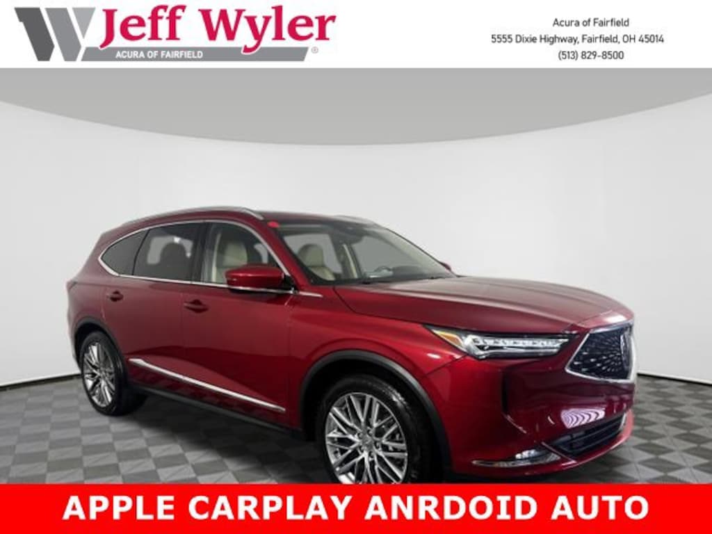Jeff Wyler Acura of Fairfield is very proud to offer this great 2022 Acura MDX Advance in Red. Precision Certified Certified, Parchment Leather, 16 Speakers, 3rd row seats: split-bench, 4-Wheel Disc Brakes, 4.17 Axle Ratio, A/V remote: CabinControl, ABS brakes, Adaptive suspension, Air Conditioning, Alloy wheels, AM/FM radio: SiriusXM, Anti-whiplash front head restraints, Apple CarPlay/Android Auto, Audio memory, Auto High-beam Headlights, Auto tilt-away steering wheel, Auto-dimming Rear-View mirror, Automatic temperature control, Brake assist, Bumpers: body-color, Compass, Delay-off headlights, Driver door bin, Driver vanity mirror, Dual front impact airbags, Dual front side impact airbags, Electronic Stability Control, Emergency communication system: AcuraLink, Four wheel independent suspension, Front anti-roll bar, Front Bucket Seats, Front Center Armrest, Front dual zone A/C, Front fog lights, Front reading lights, Fully automatic headlights, Garage door transmitter: HomeLink, Heads-Up Display, Heated & Ventilated Front Sport Seats, Heated door mirrors, Heated front seats, Heated rear seats, Heated steering wheel, HVAC memory, Illuminated entry, Knee airbag, Lane departure: Lane Keeping Assist System (LKAS) active, Leather steering wheel, Low tire pressure warning, Memory seat, Navigation system: Acura Navigation System with 3D View, Occupant sensing airbag, Outside temperature display, Overhead airbag, Overhead console, Panic alarm, Passenger door bin, Passenger vanity mirror, Perforated Premium Milano Leather Trimmed Seats, Power door mirrors, Power driver seat, Power Liftgate, Power moonroof, Power passenger seat, Power steering, Power windows, Premium audio system: Acura/ELS Studio 3D, Radio data system, Radio: ELS Studio 3D Premium Audio System, Rain sensing wipers, Rear air conditioning, Rear anti-roll bar, Rear reading lights, Rear seat center armrest, Rear window defroster, Rear window wiper, Remote keyless entry, Roof rack: rails only, Security system, Speed control, Speed-sensing steering, Speed-Sensitive Wipers, Split folding rear seat, Spoiler, Steering wheel memory, Steering wheel mounted audio controls, Tachometer, Telescoping steering wheel, Tilt steering wheel, Traction control, Trip computer, Turn signal indicator mirrors, Variably intermittent wipers, Ventilated front seats, and Wheels: 20" x 9" Aluminum Alloy ***ONLINE PRICE DOES NOT INCLUDE WYLER FAMILY FIRST PACKAGE*** Certified. Precision Certified Details: * 182 Point Inspection * Vehicle History * Limited Warranty: 24 Month/100,000 Mile (whichever comes first) after new car warranty expires or from certified purchase date * Transferable Warranty * Powertrain Limited Warranty: 84 Month/100,000 Mile (whichever comes first) from original in-service date * Roadside Assistance * 1st Scheduled Maintenance is Free, Complimentary 3-month AcuraLink trial, Complimentary 3-month SiriusXM Radio Service. Includes Trip Interruption, Rental Vehicle Reimbursement and Concierge Service * Warranty Deductible: $0CARFAX One-Owner. Clean CARFAX. Odometer is 12882 miles below market average!Proudly Serving: Cincinnati, Dayton, Columbus, Louisville, Lexington, Indianapolis, Hamilton, Florence, Alexandria, Beavercreek, Springdale, West Chester, Monroe, Fairfield, Kenwood, Newport and all of greater Cincinnati Ohio, Indiana, and Northern Kentucky.