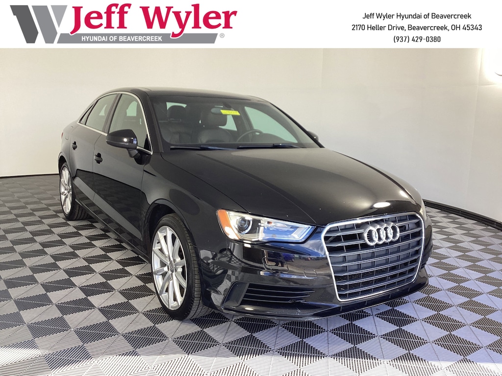 Jeff Wyler Hyundai of Beavercreek is delighted to offer this good-looking 2015 Audi A3 1.8T Premium Plus in Brilliant Black. Well equipped with: Aluminum Interior Package, Aluminum Style Package (Aluminum Mistral Decorative Inlays and High-Gloss Aluminum Window Surrounds), Cold Weather Package (3-Step Heated Front Seats, Heated Side Mirrors, and Heated Windshield Washer Nozzles), Premium Plus Package (12-Way Power Passenger Seat w/4-Way Power Lumbar, Audi Advanced Key, Audi Music Interface w/iPod Integration, and Wheels: 8.0J x 18" 10-Spoke-Audi-Exclusive), 10 Speakers, 4-Wheel Disc Brakes, ABS brakes, Air Conditioning, Alloy wheels, AM/FM radio: SiriusXM, Anti-whiplash front head restraints, Audi First Aid Kit, Audi Guard All-Weather Floor Mats (Set of 4), Audi Guard Cargo Mat, Automatic temperature control, Black Cloth Headliner, Brake assist, Bumpers: body-color, CD player, Collapsible Fabric Audi Cargo Storage Box, Delay-off headlights, Driver door bin, Driver vanity mirror, Dual front impact airbags, Dual front side impact airbags, Electronic Stability Control, Four wheel independent suspension, Front anti-roll bar, Front Bucket Seats, Front Center Armrest, Front dual zone A/C, Front reading lights, Grocery Hooks, High intensity discharge headlights: Xenon plus, Illuminated entry, Knee airbag, Leather Seating Surfaces, Leather Shift Knob, Leather steering wheel, Low tire pressure warning, Occupant sensing airbag, Outside temperature display, Overhead airbag, Panic alarm, Passenger door bin, Passenger vanity mirror, Power door mirrors, Power driver seat, Power moonroof, Power steering, Power windows, Radio data system, Radio: Audi Concert AM/FM/SiriusXM w/CD Player, Rain sensing wipers, Rear anti-roll bar, Rear fog lights, Rear reading lights, Rear seat center armrest, Rear window defroster, Remote keyless entry, Security system, Speed control, Speed-sensing steering, Speed-Sensitive Wipers, Split folding rear seat, Steering wheel mounted audio controls, Tachometer, Telescoping steering wheel, Tilt steering wheel, Traction control, Trip computer, Turn signal indicator mirrors, Variably intermittent wipers, and Wheels: 7.5J x 17" 5-Spoke-Star-Design.Awards: * JD Power Automotive Performance, Execution and Layout (APEAL) Study * 2015 KBB.com 10 Best Luxury Cars Under $35,000 * 2015 KBB.com Best Buy Awards FinalistReviews: * Youâll like the Audi A3 if youâre in the market for a smaller and consequently cheaper luxury car. More traditional than the Mercedes-Benz CLA and more legit than the Acura ILX, the new A3 feels like a real-deal premium car, and an available diesel engine is unique to the class. Source: KBB.com * Superior cabin quality and design; efficient and punchy engines; nimble handling, ample equipment. Source: EdmundsCome see the excitement at Jeff Wyler Hyundai of Beavercreek! Visit us online at www.jeffwylerhyundaiofbeavercreek.com Proudly Serving: Cincinnati, Dayton, Centeville, Ketttering, Moraine,Beavercreek, Xenia,Oakwood, Trotwood, Vandalia, Kettering, Wright Patterson, Riverside, Engelwood, Miamisburg, Huber Heights, Springboro, Brookville, Fairborn, West Carrollton, Yellow Springs, Bellbrook, Springfield Columbus, Hamilton, West Chester, Monroe, Fairfield. PROUDLY SERVING: CINCINNATI, DAYTON,COLUMBUS, LOUISVILLE, LEXINGTON, INDIANAPOLIS,HAMILTON, FLORENCE, ALEXANDRIA, BEAVERCREEK, SPRINGDALE, WEST CHESTER, MONROE, FAIRFIELD, KENWOOD, NEWPORT AND ALL OF GREATER CINCINNATI OHIO, INDIANA, AND NORTHERN KENTUCKY.