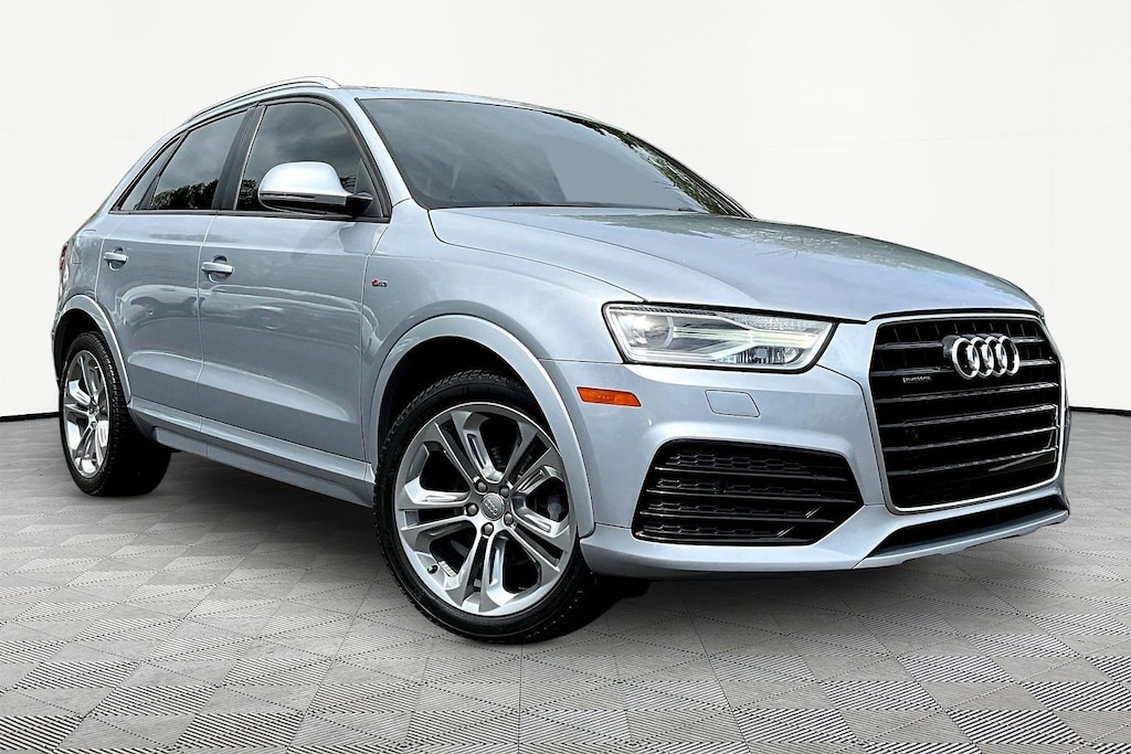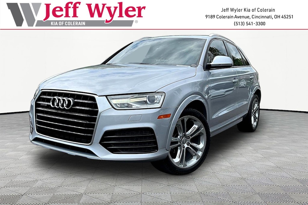 Jeff Wyler Kia of Colerain is excited to offer this gorgeous 2018 Audi Q3 2.0T Premium in Florett Silver Metallic. 10 Speakers, 4-Wheel Disc Brakes, ABS brakes, Air Conditioning, Alloy wheels, AM/FM radio: SiriusXM, Audi Guard Protection Kit, Automatic temperature control, Axle Ratio: TBD, Black HomeLink, Brake assist, Bumpers: body-color, CD player, Delay-off headlights, Driver door bin, Driver vanity mirror, Dual front impact airbags, Dual front side impact airbags, Electronic Stability Control, Exterior Parking Camera Rear, Four wheel independent suspension, Front anti-roll bar, Front Bucket Seats, Front Center Armrest, Front dual zone A/C, Front fog lights, Front reading lights, Fully automatic headlights, Heated door mirrors, Heated front seats, High intensity discharge headlights: Xenon plus, Illuminated entry, Leather Seating Surfaces, Leather Shift Knob, Leather steering wheel, Low tire pressure warning, Occupant sensing airbag, Outside temperature display, Overhead airbag, Overhead console, Panic alarm, Passenger door bin, Passenger vanity mirror, Power door mirrors, Power driver seat, Power moonroof, Power passenger seat, Power steering, Power windows, Radio data system, Radio: Audi Concert System w/AM/FM Radio, Rain sensing wipers, Rear anti-roll bar, Rear fog lights, Rear reading lights, Rear seat center armrest, Rear window defroster, Rear window wiper, Remote keyless entry, Roof rack: rails only, Security system, Speed control, Speed-sensing steering, Split folding rear seat, Spoiler, Steering wheel mounted audio controls, Tachometer, Telescoping steering wheel, Tilt steering wheel, Traction control, Trip computer, Turn signal indicator mirrors, and Variably intermittent wipers Our PRE-OWNED vehicles are put through a rigorous 167- POINT QUALITY ASSURANCE INSPECTION along with an average amount of over $1,400.00 SPENT to recondition each vehicle so we can be sure to deliver you the highest quality vehicle like you deserve! ***ONLINE PRICE DOES NOT INCLUDE WYLER FAMILY FIRST PACKAGE***