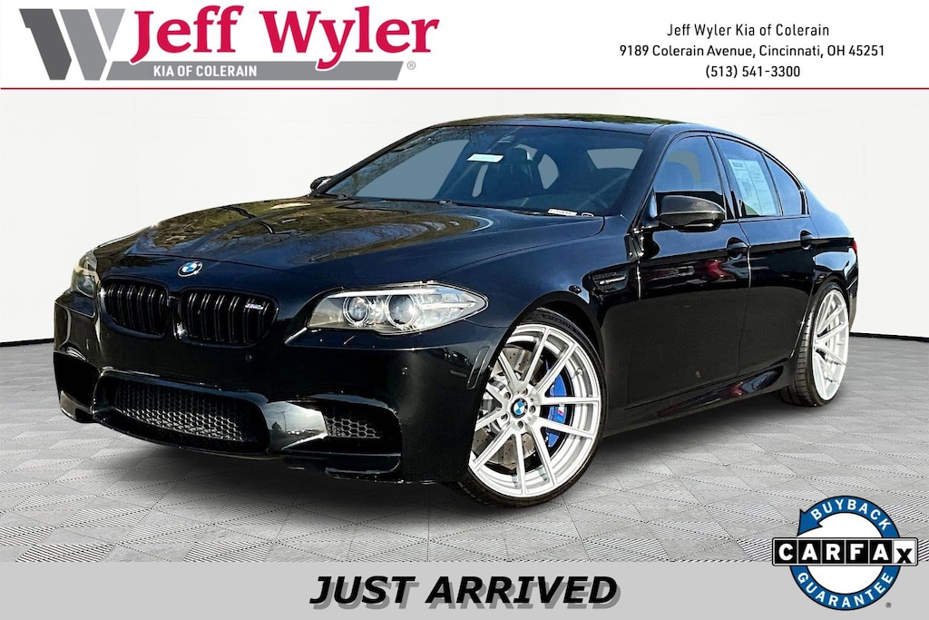 Jeff Wyler Kia of Colerain is very proud to offer this good-looking 2014 BMW M5 in Black Sapphire Metallic. Competition Package (7MA), 16 Speakers, 4-Wheel Disc Brakes, 4-Zone Automatic Climate Control, ABS brakes, Active Blind Spot Detection, Active Driving Assistant, Active Front Seats, Air Conditioning, Alloy wheels, AM/FM radio, Anthracite Alcantara Headliner, Anthracite Wood Trim, Anti-whiplash front head restraints, Auto tilt-away steering wheel, Auto-dimming door mirrors, Auto-dimming Rear-View mirror, Automatic temperature control, Brake assist, Bumpers: body-color, CD player, Comfort Access Keyless Entry, Delay-off headlights, Driver door bin, Driver vanity mirror, Dual front impact airbags, Dual front side impact airbags, Electronic Stability Control, Emergency communication system: BMW Assist eCall, Extended Merino Leather Upholstery, Exterior Parking Camera Rear, Four wheel independent suspension, Front anti-roll bar, Front Bucket Seats, Front Center Armrest, Front dual zone A/C, Front reading lights, Front Ventilated Seats, Fully automatic headlights, Garage door transmitter, harman/kardon® Speakers, Head restraints memory, Headlight cleaning, Heated 20-Way Power Front M Multi-Contour Seats, Heated door mirrors, Heated front seats, Heated Rear Seats, Heated Steering Wheel, High intensity discharge headlights: Bi-xenon, Illuminated entry, Leather Shift Knob, Leather steering wheel, Low tire pressure warning, Memory seat, Navigation System, Occupant sensing airbag, Outside temperature display, Overhead airbag, Panic alarm, Passenger door bin, Passenger vanity mirror, Power adjustable front head restraints, Power door mirrors, Power driver seat, Power moonroof, Power passenger seat, Power Rear Sunshades, Power steering, Power Tailgate, Power windows, Radio data system, Radio: Anti-theft AM/FM Stereo CD/MP3 w/RDS, Rain sensing wipers, Rear air conditioning, Rear anti-roll bar, Rear reading lights, Rear seat center armrest, Rear window defroster, Remote keyless entry, Satellite Radio w/1 Year Subscription, Security system, Side & Top View Cameras, Soft-Close Automatic Doors, Speed control, Speed Limit Information, Speed-sensing steering, Speed-Sensitive Wipers, Split folding rear seat, Spoiler, Sport steering wheel, Steering wheel memory, Steering wheel mounted A/C controls, Steering wheel mounted audio controls, Tachometer, Telescoping steering wheel, Tilt steering wheel, Traction control, Trip computer, Variably intermittent wipers, Wheels: 19" x 9" Fr & 19" x 10" Rr M Light Alloy, and Wheels: 20" x 9" Fr & 20" x 10" Rr M Light Alloy Our PRE-OWNED vehicles are put through a rigorous 167- POINT QUALITY ASSURANCE INSPECTION along with an average amount of over $1,400.00 SPENT to recondition each vehicle so we can be sure to deliver you the highest quality vehicle like you deserve! ***ONLINE PRICE DOES NOT INCLUDE WYLER FAMILY FIRST PACKAGE***