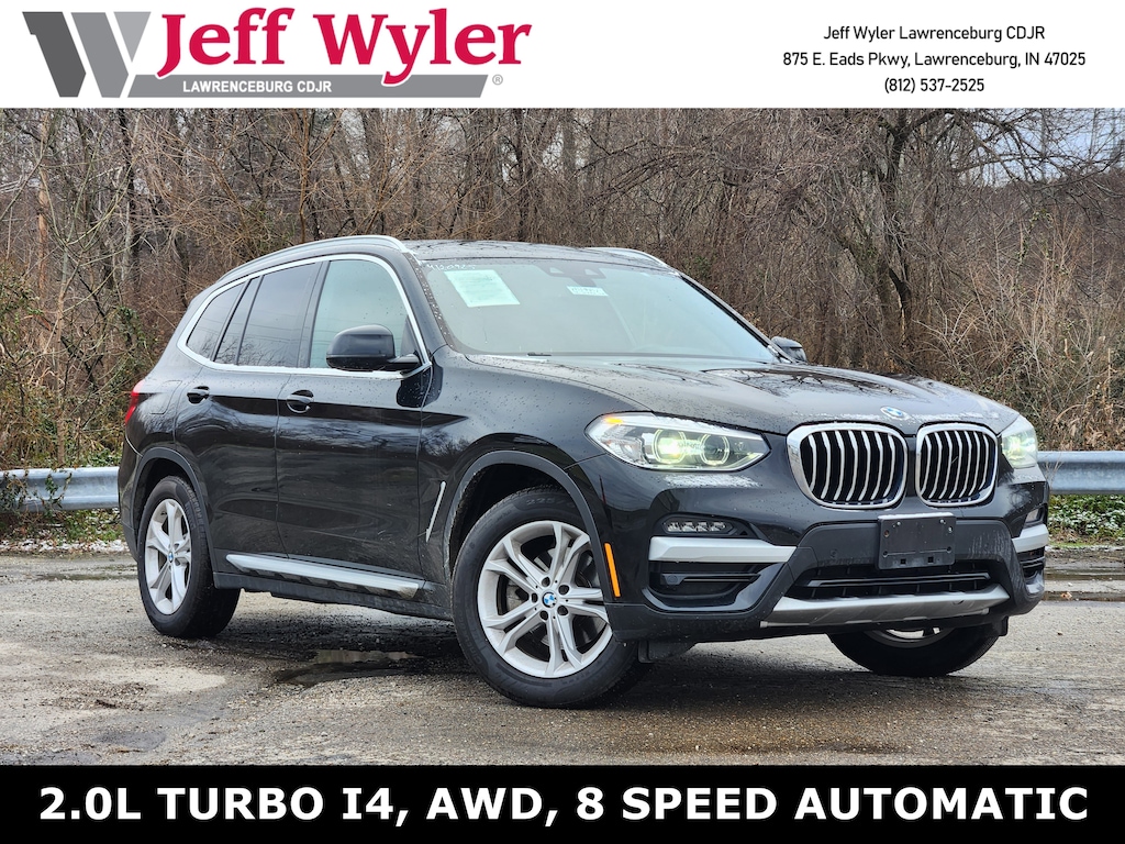Jeff Wyler Chrysler Dodge Jeep of Lawrenceburg is proud to offer this stunning 2020 BMW X3 xDrive30i in Jet Black. Connected Package Plus, Connected Package Pro, 8-Speed Automatic, 12 Speakers, 3.385 Axle Ratio, 4-Wheel Disc Brakes, ABS brakes, Air Conditioning, Alloy wheels, AM/FM radio, Apple CarPlay Compatibility, Apple CarPlay Compatibility with 1-year trial, Auto-dimming door mirrors, Auto-dimming Rear-View mirror, Automatic temperature control, BMW Assist eCall, BMW TeleServices, Brake assist, Bumpers: body-color, ConnectedDrive Services, Delay-off headlights, Driver door bin, Driver vanity mirror, Dual front impact airbags, Dual front side impact airbags, DVD Area Coding (North America), Electronic Stability Control, Emergency communication system: BMW Assist eCall, Exterior Parking Camera Rear, Four wheel independent suspension, Front anti-roll bar, Front Bucket Seats, Front Center Armrest, Front dual zone A/C, Front fog lights, Front reading lights, Fully automatic headlights, Garage door transmitter, Genuine wood dashboard insert, Genuine wood door panel insert, Hands-Free Bluetooth & USB Audio Connection, Heated door mirrors, Heated Front Seats, Hi-Fi Sound System, Illuminated entry, Knee airbag, Live Cockpit Pro w/Navigation, Low tire pressure warning, Memory seat, Navigation, Navigation System, Occupant sensing airbag, Outside temperature display, Overhead airbag, Panic alarm, Panoramic Moonroof, Passenger door bin, Passenger vanity mirror, Power door mirrors, Power driver seat, Power Front Seats, Power Liftgate, Power passenger seat, Power steering, Power windows, Radio Control US, Radio data system, Radio: AM/FM Stereo w/HD, Rain sensing wipers, Rear air conditioning, Rear anti-roll bar, Rear reading lights, Rear seat center armrest, Rear window defroster, Rear window wiper, Remote keyless entry, Roof rack: rails only, Security system, SensaTec Upholstery, Speed control, Speed-sensing steering, Speed-Sensitive Wipers, Split folding rear seat, Spoiler, Sport Bucket Seats, Sport steering wheel, Steering wheel mounted audio controls, Tachometer, Telescoping steering wheel, Tilt steering wheel, Traction control, Trip computer, Turn signal indicator mirrors, Variably intermittent wipers, and Wheels: 18" x 7.0" Y-Spoke (Style 688) Our PRE-OWNED vehicles are put through a rigorous 167- POINT QUALITY ASSURANCE INSPECTION along with an average amount of over $1,400.00 SPENT to recondition each vehicle so we can be sure to deliver you the highest quality vehicle like you deserve! ***ONLINE PRICE DOES NOT INCLUDE WYLER FAMILY FIRST PACKAGE*** Stop by 4136 Shelbyville Road to see for yourself, or give us a call @ 502-897-3151 to schedule your test drive! Ask about available certifications.