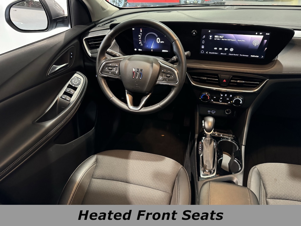 4WD/AWD, XM Radio, Bluetooth, Push Button Start, Backup Camera, CLEAN CARFAX, 2 USB Ports (1 Type-A, 1 Type-C), 2-Way Power Driver Lumbar Control, 3.17 Final Drive Axle Ratio, 4-Way Manual Passenger Seat Adjuster, 4-Wheel Disc Brakes, 6-Way Manual Driver Seat Adjuster, 7 Speakers, 8-Way Power Driver Seat Adjuster, ABS brakes, Air Conditioning, All-Weather Floor Mats, Alloy wheels, AM/FM radio: SiriusXM, Auto High-beam Headlights, Automatic temperature control, Brake assist, Bumpers: body-color, Cloth w/Leatherette Seat Trim, Comfort Package, Compass, Delay-off headlights, Driver door bin, Driver vanity mirror, Dual front impact airbags, Dual front side impact airbags, Electronic Stability Control, Emergency communication system: OnStar and Buick connected services capable, Enhanced Performance 7-Speaker System w/Amplifier, Flat-Folding Front Passenger Seatback, Front anti-roll bar, Front Bucket Seats, Front Center Armrest, Front reading lights, Front wheel independent suspension, Fully automatic headlights, Heated door mirrors, Heated Driver & Front Passenger Seats, Heated Steering Wheel, Illuminated entry, Knee airbag, Low tire pressure warning, Occupant sensing airbag, Outside temperature display, Overhead airbag, Overhead console, Panic alarm, Passenger door bin, Passenger vanity mirror, Power door mirrors, Power steering, Power windows, Preferred Equipment Group 1SB, Radio data system, Radio: Audio System w/AM/FM, Rear Center Armrest, Rear reading lights, Rear side impact airbag, Rear window defroster, Rear window wiper, Remote keyless entry, Remote Vehicle Starter System, Ride & Handling Suspension, Security system, SiriusXM, Speed control, Speed-sensing steering, Split folding rear seat, Spoiler, Steering wheel mounted audio controls, Tachometer, Telescoping steering wheel, Tilt steering wheel, Traction control, Trip computer, Variably intermittent wipers, Wheels: 18" Bright Silver Painted Aluminum, Wireless Apple CarPlay/Wireless Android Auto. Clean CARFAX. AWD 9-Speed Automatic ECOTEC 1.3L Turbo26/28 City/Highway MPGAsk about available certifications.