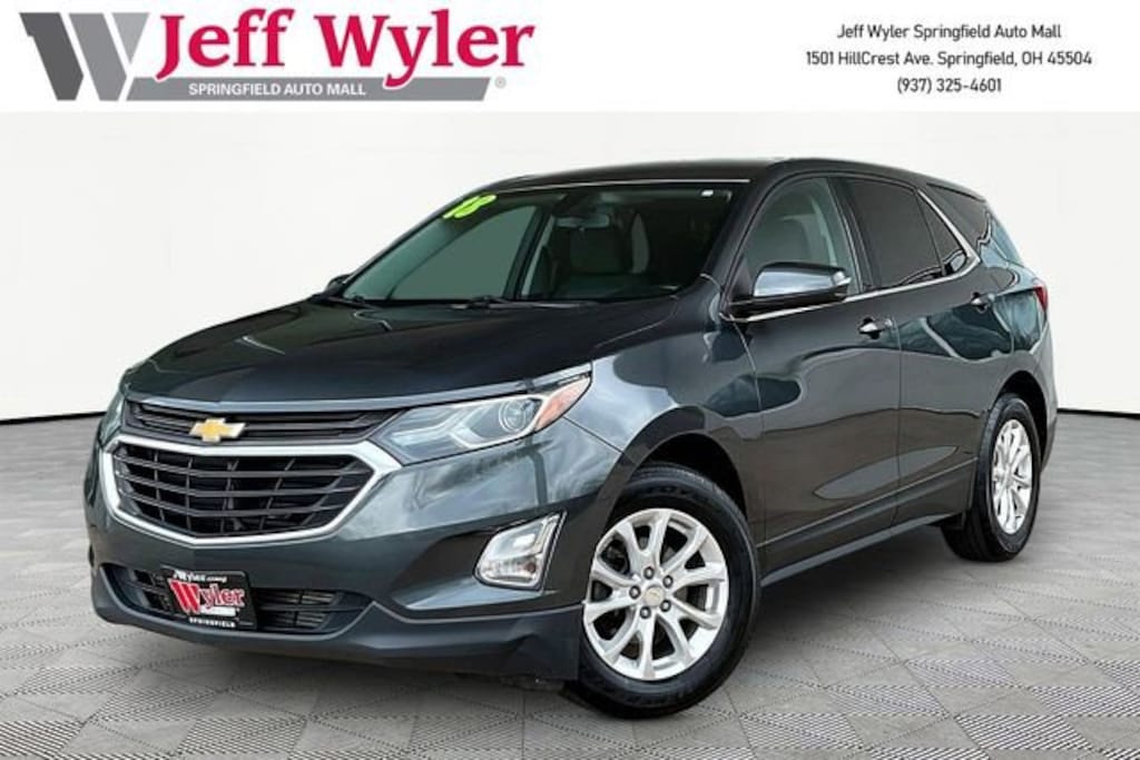 Jeff Wyler Springfield Auto Mall is honored to offer this wonderful 2018 Chevrolet Equinox LT in Nightfall Gray Metallic. Well equipped with: 17 Aluminum Wheels, 3.50 Final Drive Axle Ratio, 4-Wheel Disc Brakes, 6 Speaker Audio System Feature, 6 Speakers, 8-Way Power Driver Seat Adjuster, ABS brakes, Air Conditioning, Alloy wheels, AM/FM radio: SiriusXM, Apple CarPlay/Android Auto, Bluetooth® For Phone, Brake assist, Bumpers: body-color, Compass, Delay-off headlights, Driver door bin, Driver vanity mirror, Dual front impact airbags, Dual front side impact airbags, Electronic Stability Control, Emergency communication system: OnStar and Chevrolet connected services capable, Exterior Parking Camera Rear, Four wheel independent suspension, Front anti-roll bar, Front Bucket Seats, Front Center Armrest, Front Passenger 4-Way Manual Seat Adjuster, Front reading lights, Fully automatic headlights, Heated door mirrors, High-Intensity Discharge Headlights, Illuminated entry, Leather Shift Knob, Low tire pressure warning, Occupant sensing airbag, Outside temperature display, Overhead airbag, Overhead console, Panic alarm, Passenger door bin, Passenger vanity mirror, Power door mirrors, Power driver seat, Power steering, Power windows, Premium audio system: Chevrolet MyLink, Premium Cloth Seat Trim, Radio data system, Radio: Chevrolet MyLink AM/FM Stereo, Rear anti-roll bar, Rear reading lights, Rear seat center armrest, Rear window defroster, Rear window wiper, Remote keyless entry, Security system, SiriusXM Satellite Radio, Speed control, Speed-sensing steering, Split folding rear seat, Spoiler, Steering wheel mounted audio controls, Tachometer, Telescoping steering wheel, Tilt steering wheel, Traction control, Trip computer, USB Port & Auxiliary Input Jack, and Variably intermittent wipers. Awards: