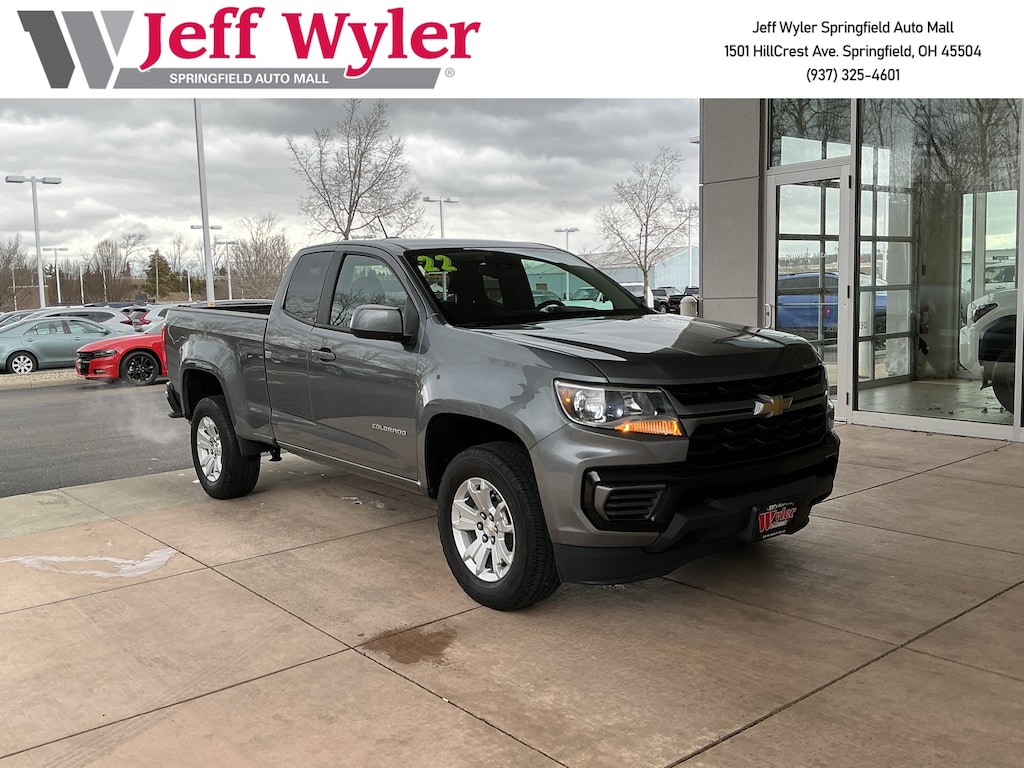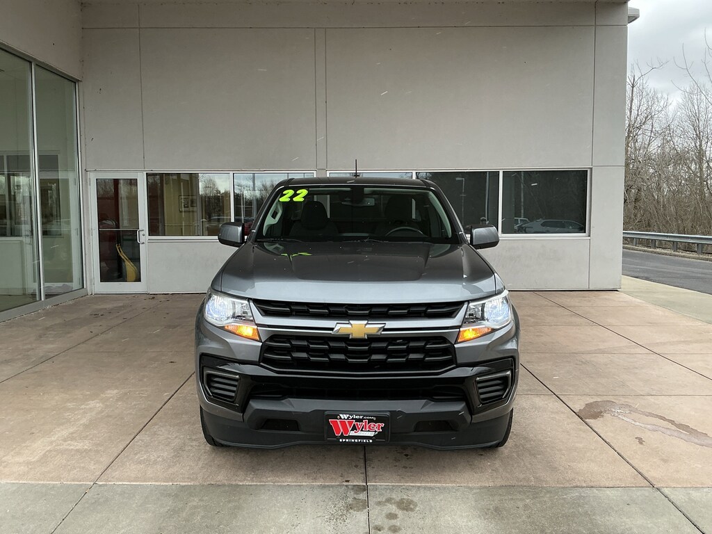 Jeff Wyler Springfield Auto Mall is pumped up to offer this terrific-looking 2022 Chevrolet Colorado LT in Satin Steel Metallic. Well equipped with: Preferred Equipment Group 2LT (Enhanced Driver Instrument Information Display and Rear Vision Camera), Safety Package (Forward Collision Alert, Lane Departure Warning System, and Ultrasonic Rear Park Assist), 4-Wheel Disc Brakes, 4.10 Rear Axle Ratio, 6 Speakers, 6-Speaker Audio System Feature, ABS brakes, Air Conditioning, Alloy wheels, AM/FM radio: SiriusXM, Apple CarPlay/Android Auto, Auto-dimming Rear-View mirror, Automatic Locking Rear Differential, Bumpers: body-color, Cloth Seat Trim, Compass, Delay-off headlights, Driver 6-Way Power Seat Adjuster, Driver door bin, Driver vanity mirror, Dual front impact airbags, Dual front side impact airbags, Electronic Stability Control, Exterior Parking Camera Rear, Front anti-roll bar, Front Bucket Seats, Front Center Armrest, Front License Plate Kit, Front reading lights, Front wheel independent suspension, Fully automatic headlights, Illuminated entry, Low tire pressure warning, Not Equipped w/Rear Park Assist, Occupant sensing airbag, Outside temperature display, Overhead airbag, Overhead console, Panic alarm, Passenger door bin, Passenger vanity mirror, Power door mirrors, Power driver seat, Power steering, Power windows, Premium audio system: Chevrolet Infotainment 3, Radio data system, Radio: Chevrolet Infotainment 3 System, Rear step bumper, Remote keyless entry, Security system, SiriusXM Radio, Speed control, Speed-sensing steering, Split folding rear seat, Steering wheel mounted audio controls, Tachometer, Telescoping steering wheel, Tilt steering wheel, Traction control, Trip computer, Variably intermittent wipers, and Wheels: 17" x 8" Blade Silver Metallic Cast Alloy. Ask about available certifications. Used vehicles 10 years of age or newer with less than 100,000 miles are eligible for the Wyler Assurance Program, but eligible vehicles must pass our reconditioning process and multi-point inspection. Provided the vehicle passes inspection, vehicles will be eligible for the 6 month/6,000 mile limited warranty. The 6 month/6,000 mile limited warranty is NOT available on AS-IS vehicles, wholesale vehicles, lease buyback/pass-thru vehicles or un-inspected vehicles. Note that this program can also apply to vehicles where the remaining factory coverage is less than 6 months or 6,000 miles. Please check the Federal Trade Commission (FTC) Buyers guide on the vehicle for full details as to whether or not warranty coverage may apply. Contact Dealer for additional details. The Wyler Assurance 6 month/6,000 Mile limited warranty ends 6 months from the date of the Retail Purchase Agreement (BUYERS ORDER) or when the vehicle's odometer registers 6,000 additional miles to the mileage listed on the BUYERS ORDER, whichever comes first. Your Deductible - The warranty holder on your contract pays the first $100 of each covered repair.