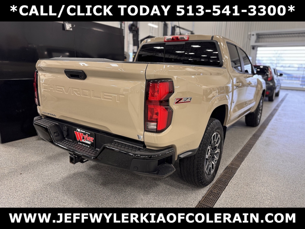 Jeff Wyler Kia of Colerain is honored to offer this good-looking 2023 Chevrolet Colorado Z71 in Sand Dune Metallic. Advanced Trailering Package (Trailering App), Heavy-Duty Trailering Package (Integrated Trailer Brake Controller), Preferred Equipment Group 4Z7 (Automatic Emergency Braking, Chevy Safety Assist, Electronic Automatic Cruise Control, Following Distance Indicator, Forward Collision Alert, Front Pedestrian & Bicyclist Braking, IntelliBeam Automatic High Beam On/Off, Lane Keep Assist w/Lane Departure Warning, and Rear-Window Electric Defogger), Safety Package (Blind Zone Steering Assist, Rear Cross Traffic Braking, and Rear Park Assist), Z71 Convenience Package II (8-Way Power Driver Seat Adjuster, Dual-Zone Automatic Air Conditioning, EZ-Lift & Lower Tailgate, Heated Driver & Front Passenger Seats, Inside Rear-View Auto-Dimming Mirror, Power Driver Lumbar Control Seat Adjuster, Remote Vehicle Starter System, StowFlex Tailgate Storage Compartment, Tailgate Keyed Cylinder Lock, Tilt & Telescoping Steering Column, and Wireless Charging), Z71 Convenience Package III (Driver & Front Passenger Ventilated Seats, Driver Memory Settings, Driver Seatback Map Pocket, Heated Steering Wheel, and Rear Center Armrest), 220 Amp Generator, 3.42 Rear Axle Ratio, 4-Way Manual Passenger Seat Adjuster, 4-Wheel Disc Brakes, 6 Speakers, 6-Speaker Audio System Feature, 6-Way Manual Driver Seat Adjuster, ABS brakes, Air Conditioning, Alloy wheels, AM/FM radio: SiriusXM, Apple CarPlay/Android Auto, Auto High-beam Headlights, Brake assist, Bumpers: body-color, Cloth/Evotex Seat Trim, Compass, Delay-off headlights, Driver door bin, Driver vanity mirror, Dual front impact airbags, Dual front side impact airbags, Electronic Stability Control, Front anti-roll bar, Front Bucket Seats, Front Center Armrest, Front fog lights, Front reading lights, Front wheel independent suspension, Heated door mirrors, Illuminated entry, Low tire pressure warning, Navigation System, Occupant sensing airbag, Outside temperature display, Overhead airbag, Overhead console, Panic alarm, Passenger door bin, Passenger Seatback Map Pocket, Passenger vanity mirror, Power door mirrors, Power steering, Power windows, Radio data system, Radio: 11.3" Diagonal Advanced Color LCD Display, Rear reading lights, Rear step bumper, Rear window defroster, Remote keyless entry, Security system, SiriusXM Radio, Speed control, Speed-sensing steering, Split folding rear seat, Steering Wheel Mounted Audio Controls, Steering wheel mounted audio controls, Tachometer, Tilt steering wheel, Traction control, Trip computer, Variably intermittent wipers, Wheels: 18" x 8.5" Android Dark Full Gloss Aluminum, and Wireless Phone Projection Our PRE-OWNED vehicles are put through a rigorous 167- POINT QUALITY ASSURANCE INSPECTION along with an average amount of over $1,400.00 SPENT to recondition each vehicle so we can be sure to deliver you the highest quality vehicle like you deserve! ***ONLINE PRICE DOES NOT INCLUDE WYLER FAMILY FIRST PACKAGE***