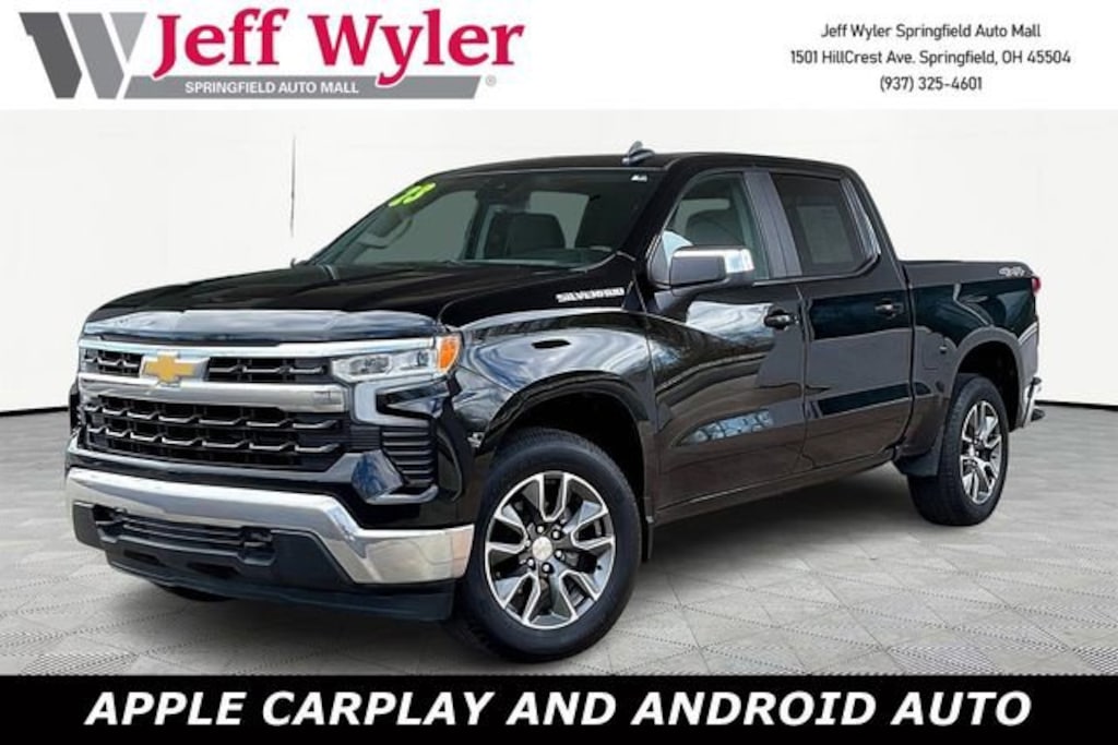 Jeff Wyler Springfield Auto Mall is delighted to offer this fantastic 2023 Chevrolet Silverado 1500 LT in Black. Well equipped with: Convenience Package (10-Way Power Driver Seat w/Lumbar, 120-Volt Bed Mounted Power Outlet, 120-Volt Instrument Panel Power Outlet, Dual Rear USB Ports (Charge Only), Dual-Zone Automatic Climate Control, Heated Driver & Front Outboard Passenger Seats, Heated Steering Wheel, Keyless Open & Start, and Wrapped Steering Wheel), High Capacity Suspension Package, Standard Suspension Package, Trailering Package (Hitch Guidance), 12.3 Multicolor Reconfigurable Digital Display, 3.42 Rear Axle Ratio, 4-Wheel Disc Brakes, 40/20/40 Front Split-Bench Seat, 6 Speakers, 6-Speaker Audio System, ABS brakes, Air Conditioning, All-Star Edition, Alloy wheels, AM/FM radio: SiriusXM with 360L, Apple CarPlay/Android Auto, Auto High-beam Headlights, Auto-Locking Rear Differential, Automatic Emergency Braking, Automatic temperature control, Bluetooth® For Phone, Brake assist, Bumpers: chrome, Chevrolet Connected Access Capable, Chrome Mirror Caps, Cloth Seat Trim, Color-Keyed Carpeting Floor Covering, Compass, Deep-Tinted Glass, Delay-off headlights, Driver door bin, Driver vanity mirror, Dual front impact airbags, Dual front side impact airbags, Electric Rear-Window Defogger, Electrical Steering Column Lock, Electronic Cruise Control, Electronic Stability Control, Following Distance Indicator, Forward Collision Alert, Front anti-roll bar, Front Center Armrest w/Storage, Front dual zone A/C, Front Frame-Mounted Black Recovery Hooks, Front Pedestrian Braking, Front reading lights, Front wheel independent suspension, Fully automatic headlights, HD Rear Vision Camera, Heated door mirrors, Heated front seats, Heated steering wheel, Illuminated entry, IntelliBeam Automatic High Beam On/Off, Lane Keep Assist w/Lane Departure Warning, LED Cargo Area Lighting, Low tire pressure warning, Not Equipped w/Steering Column Lock, Occupant sensing airbag, OnStar & Chevrolet Connected Services Capable, Outside temperature display, Overhead airbag, Overhead console, Panic alarm, Passenger door bin, Passenger vanity mirror, Power door mirrors, Power driver seat, Power Front Windows w/Driver Express Up/Down, Power Front Windows w/Passenger Express Down, Power Rear Windows w/Express Down, Power steering, Power windows, Premium audio system: Chevrolet Infotainment 3 Premium, Radio data system, Radio: Chevrolet Infotainment 3 Premium System, Rear 60/40 Folding Bench Seat (Folds Up), Rear reading lights, Rear step bumper, Rear window defroster, Remote keyless entry, Remote Vehicle Starter System, Security system, SiriusXM w/360L, Speed control, Speed-sensing steering, Split folding rear seat, Steering Wheel Audio Controls, Steering wheel mounted audio controls, Tachometer, Telescoping steering wheel, Theft Deterrent System (Unauthorized Entry), Tilt steering wheel, Traction control, Trip computer, Variably intermittent wipers, Voltmeter, Wheels: 18 x 8.5 Bright Silver Painted Aluminum, Wheels: 20 x 9 Painted Aluminum, Wi-Fi Hot Spot Capable, and Wireless Phone Projection. Ask about available certifications. Used vehicles 10 years of age or newer with less than 100,000 miles are eligible for the Wyler Assurance Program, but eligible vehicles must pass our reconditioning process and multi-point inspection. Provided the vehicle passes inspection, vehicles will be eligible for the 6 month/6,000 mile limited warranty. The 6 month/6,000 mile limited warranty is NOT available on AS-IS vehicles, wholesale vehicles, lease buyback/pass-thru vehicles or un-inspected vehicles. Note that this program can also apply to vehicles where the remaining factory coverage is less than 6 months or 6,000 miles. Please check the Federal Trade Commission (FTC) Buyers guide on the vehicle for full details as to whether or not warranty coverage may apply. Contact Dealer for additional details. The Wyler Assurance 6 month/6,000 Mile limited warranty ends 6 months from