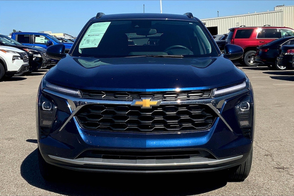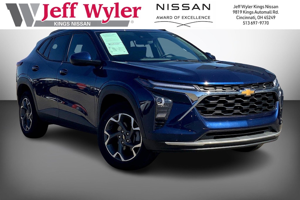 Jeff Wyler Kings Nissan is proud to offer this gorgeous 2024 Chevrolet Trax LT in Blue Glow Metallic. Well equipped with: Driver Confidence Package (Adaptive Cruise Control, Lane Change Alert w/Side Blind Zone Alert, and Rear Cross-Traffic Alert), License Plate Front Mounting Package, LT Convenience Package (Heated Driver & Front Passenger Seats, Heated Power-Adjustable Outside Mirrors, Heated Steering Wheel, Keyless Open, and Wrapped Steering Wheel), Preferred Equipment Group 1LT, 2-Way Adjustable Front Head Restraints, 3.50 Final Drive Axle Ratio, 4-Way Manual Front Passenger Seat Adjuster, 4-Wheel Disc Brakes, 6 Speakers, 6-Speaker Audio System Feature, 6-Way Manual Driver Seat Adjuster, ABS brakes, Air Conditioning, Alloy wheels, AM/FM radio: SiriusXM, Auto High-beam Headlights, Automatic temperature control, Brake assist, Bumpers: body-color, Cloth/Evotex Seat Trim, Compass, Delay-off headlights, Driver door bin, Driver vanity mirror, Dual front impact airbags, Dual front side impact airbags, Electronic Stability Control, Emergency communication system: OnStar and Chevrolet connected services capable, Exterior Parking Camera Rear, Front & Rear All-Weather Floor Mats, Front anti-roll bar, Front Bucket Seats, Front Center Armrest, Front reading lights, Front wheel independent suspension, Fully automatic headlights, Illuminated entry, Jet Black Cargo Net (LPO), Low tire pressure warning, Occupant sensing airbag, Outside temperature display, Overhead airbag, Overhead console, Panic alarm, Passenger door bin, Passenger vanity mirror, Power door mirrors, Power steering, Power windows, Premium audio system: Chevrolet Infotainment 3, Radio data system, Radio: Audio System w/AM/FM, Rear Park Assist (DISC), Rear window defroster, Rear window wiper, Remote keyless entry, Security system, SiriusXM, Speed control, Split folding rear seat, Spoiler, Steering wheel mounted audio controls, Tachometer, Telescoping steering wheel, Tilt steering wheel, Traction control, Trip computer, Variably intermittent wipers, and Wheels: 17" Gray-Painted Machined Aluminum.Ask about available certifications.