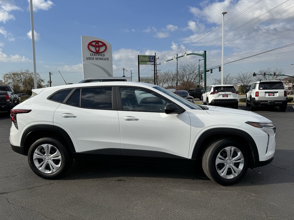 Jeff Wyler Chrysler Dodge Jeep of Lawrenceburg is excited to offer this good-looking 2025 Chevrolet Trax LS in Summit White. Driver Confidence Package (Lane Change Alert with Side Blind Zone Alert, Rear Cross-Traffic Alert, and Rear Park Assist), Preferred Equipment Group 1LS, 2-Way Adjustable Front Head Restraints, 3.50 Final Drive Axle Ratio, 4 Speakers, 4-Speaker Audio System Feature, 4-Way Manual Front Passenger Seat Adjuster, 4-Wheel Disc Brakes, 6-Way Manual Driver Seat Adjuster, ABS brakes, Air Conditioning, AM/FM radio: SiriusXM, Auto High-beam Headlights, Brake assist, Bumpers: body-color, Cloth Seat Trim, Compass, Delay-off headlights, Driver door bin, Driver vanity mirror, Dual front impact airbags, Dual front side impact airbags, Electronic Stability Control, Emergency communication system: OnStar One Essentials, Exterior Parking Camera Rear, Front anti-roll bar, Front Bucket Seats, Front Center Armrest, Front reading lights, Front wheel independent suspension, Fully automatic headlights, Illuminated entry, Low tire pressure warning, Occupant sensing airbag, Outside temperature display, Overhead airbag, Overhead console, Panic alarm, Passenger door bin, Passenger vanity mirror, Power door mirrors, Power steering, Power windows, Premium audio system: Chevrolet Infotainment 3, Radio data system, Radio: Chevrolet Infotainment 3 System with AM/FM, Rear window defroster, Rear window wiper, Remote keyless entry, Security system, SiriusXM Trial Subscription, Speed control, Split folding rear seat, Spoiler, Steering wheel mounted audio controls, Tachometer, Telescoping steering wheel, Tilt steering wheel, Traction control, Trip computer, Variably intermittent wipers, and Wheels: 17" Steel with Covers Our PRE-OWNED vehicles are put through a rigorous 167- POINT QUALITY ASSURANCE INSPECTION along with an average amount of over $1,400.00 SPENT to recondition each vehicle so we can be sure to deliver you the highest quality vehicle like you deserve! ***ONLINE PRICE DOES NOT INCLUDE WYLER FAMILY FIRST PACKAGE*** Stop by 4136 Shelbyville Road to see for yourself, or give us a call @ 502-897-3151 to schedule your test drive! Ask about available certifications.