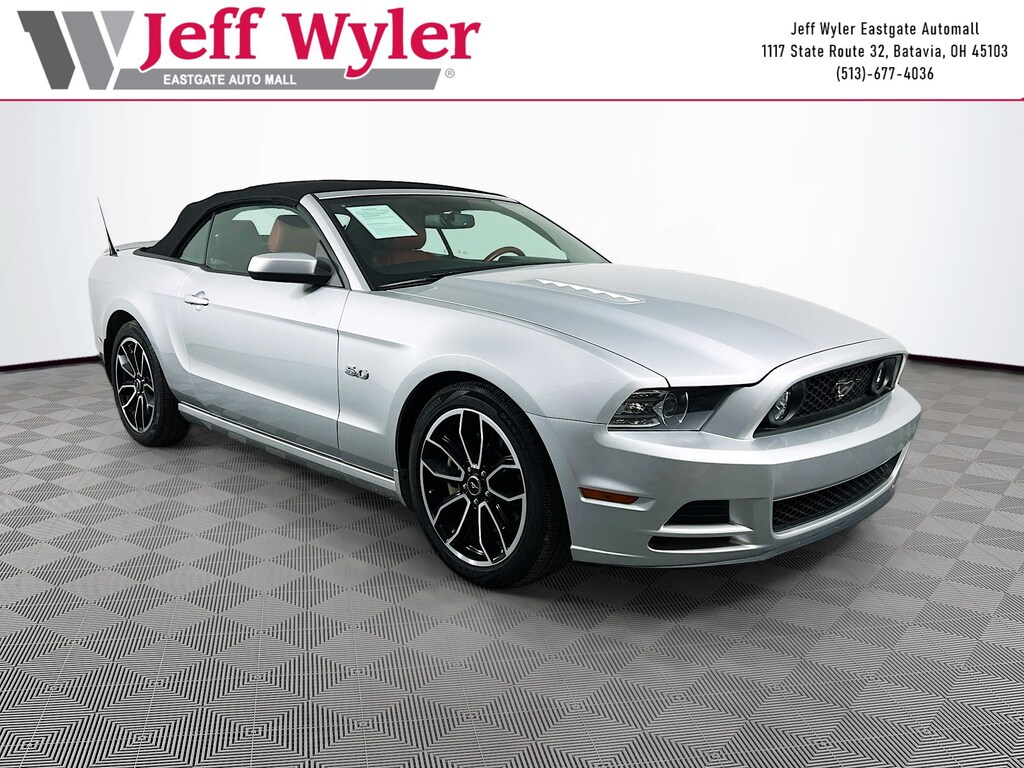 Jeff Wyler Eastgate Auto Mall is proud to offer this great 2013 Ford Mustang GT Premium in Ingot Silver. Well equipped with: Reverse Sensing System & Security Package (Active Anti-Theft System, Reverse Sensing System, and Wheel Locking Kit), 18" x 8" Sparkle Silver Painted Aluminum Wheels, 4-Wheel Disc Brakes, ABS brakes, Air Conditioning, Alloy wheels, Brake assist, Bumpers: body-color, CD player, Compass, Convertible roof lining, Delay-off headlights, Driver door bin, Driver vanity mirror, Dual front impact airbags, Dual front side impact airbags, Electronic Stability Control, Front anti-roll bar, Front Bucket Seats, Front Center Armrest, Front fog lights, Front reading lights, Front wheel independent suspension, Fully automatic headlights, Glass rear window, High-Intensity Discharge Headlights, Illuminated entry, Low tire pressure warning, Occupant sensing airbag, Outside temperature display, Panic alarm, Passenger door bin, Passenger vanity mirror, Power convertible roof, Power door mirrors, Power steering, Power windows, Radio data system, Rear anti-roll bar, Rear window defroster, Remote keyless entry, Speed control, Speed-sensing steering, Spoiler, Steering wheel mounted audio controls, Tachometer, Tilt steering wheel, Traction control, Trip computer, Variably intermittent wipers, and Voltmeter. Clean CARFAX. Awards: * 2013 KBB.com 5-Year Cost to Own Awards * 2013 KBB.com Brand Image Awards Ask about available certifications. Used vehicles 10 years of age or newer with less than 100,000 miles are eligible for the Wyler Assurance Program, but eligible vehicles must pass our reconditioning process and multi-point inspection. Provided the vehicle passes inspection, vehicles will be eligible for the 6 month/6,000 mile limited warranty. The 6 month/6,000 mile limited warranty is NOT available on AS-IS vehicles, wholesale vehicles, lease buyback/pass-thru vehicles or un-inspected vehicles. Note that this program can also apply to vehicles where the remaining factory coverage is less than 6 months or 6,000 miles. Please check the Federal Trade Commission (FTC) Buyers guide on the vehicle for full details as to whether or not warranty coverage may apply. Contact Dealer for additional details. The Wyler Assurance 6 month/6,000 Mile limited warranty ends 6 months from the date of the Retail Purchase Agreement (BUYERS ORDER) or when the vehicle's odometer registers 6,000 additional miles to the mileage listed on the BUYERS ORDER, whichever comes first. Your Deductible - The warranty holder on your contract pays the first $100 of each covered repair.