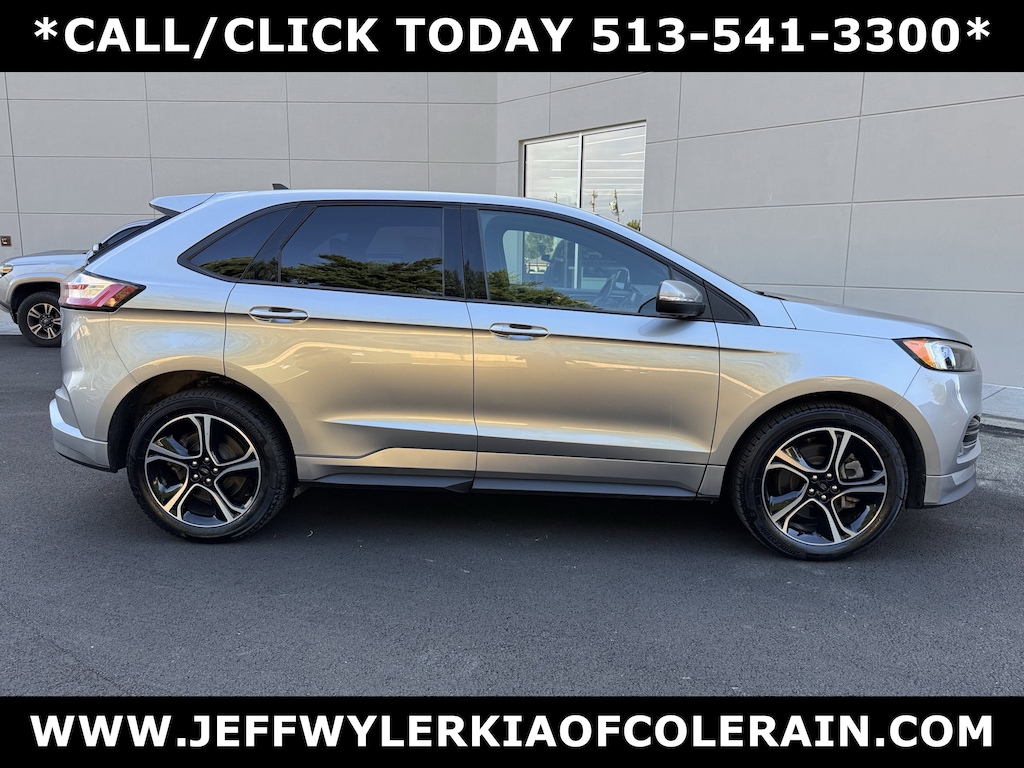 Jeff Wyler Kia of Colerain is honored to offer this terrific-looking 2022 Ford Edge ST in Iconic Silver Metallic. Equipment Group 400A, 12 Speakers, 3.39 Axle Ratio, 4-Wheel Disc Brakes, ABS brakes, Air Conditioning, Alloy wheels, AM/FM radio: SiriusXM with 360L, Auto High-beam Headlights, Auto-dimming Rear-View mirror, Automatic temperature control, Brake assist, Bumpers: body-color, Compass, Delay-off headlights, Driver door bin, Driver vanity mirror, Dual front impact airbags, Dual front side impact airbags, Electronic Stability Control, Emergency communication system: SYNC 4 911 Assist, FordPass Connect, Four wheel independent suspension, Front anti-roll bar, Front Bucket Seats, Front Center Armrest w/Storage, Front dual zone A/C, Front fog lights, Front reading lights, Fully automatic headlights, Heated door mirrors, Heated front seats, Illuminated entry, Knee airbag, Leather-Trimmed Heated ST Bolstered Bucket Seats, Low tire pressure warning, Memory seat, Occupant sensing airbag, Outside temperature display, Overhead airbag, Overhead console, Panic alarm, Passenger door bin, Passenger vanity mirror, Power door mirrors, Power driver seat, Power Liftgate, Power passenger seat, Power steering, Power windows, Radio: B&O Sound System by Bang & Olufsen, Rain sensing wipers, Rear anti-roll bar, Rear Parking Sensors, Rear reading lights, Rear seat center armrest, Rear window defroster, Rear window wiper, Remote keyless entry, SiriusXM w/360L, Speed control, Speed-Sensitive Wipers, Split folding rear seat, Spoiler, Steering wheel mounted audio controls, SYNC 4A w/Enhanced Voice Recognition, Tachometer, Telescoping steering wheel, Tilt steering wheel, Traction control, Trip computer, Turn signal indicator mirrors, Variably intermittent wipers, and Wheels: 20" Bright-Machined Aluminum Our PRE-OWNED vehicles are put through a rigorous 167- POINT QUALITY ASSURANCE INSPECTION along with an average amount of over $1,400.00 SPENT to recondition each vehicle so we can be sure to deliver you the highest quality vehicle like you deserve! ***ONLINE PRICE DOES NOT INCLUDE WYLER FAMILY FIRST PACKAGE***