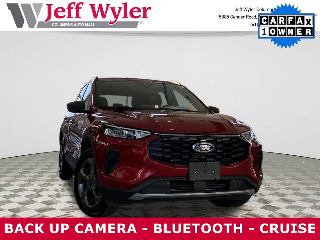 2025 Ford Escape Red Metallic 1.5L EcoBoost 8-Speed Automatic ST-Line AWD AWD. CARFAX One-Owner. Clean CARFAX.26/32 City/Highway MPGCome visit the all new Jeff Wyler Chevrolet of Columbus the official Home of the Fresh Start Program! See how easy it is drive your new vehicle home today.Ask about available certifications.