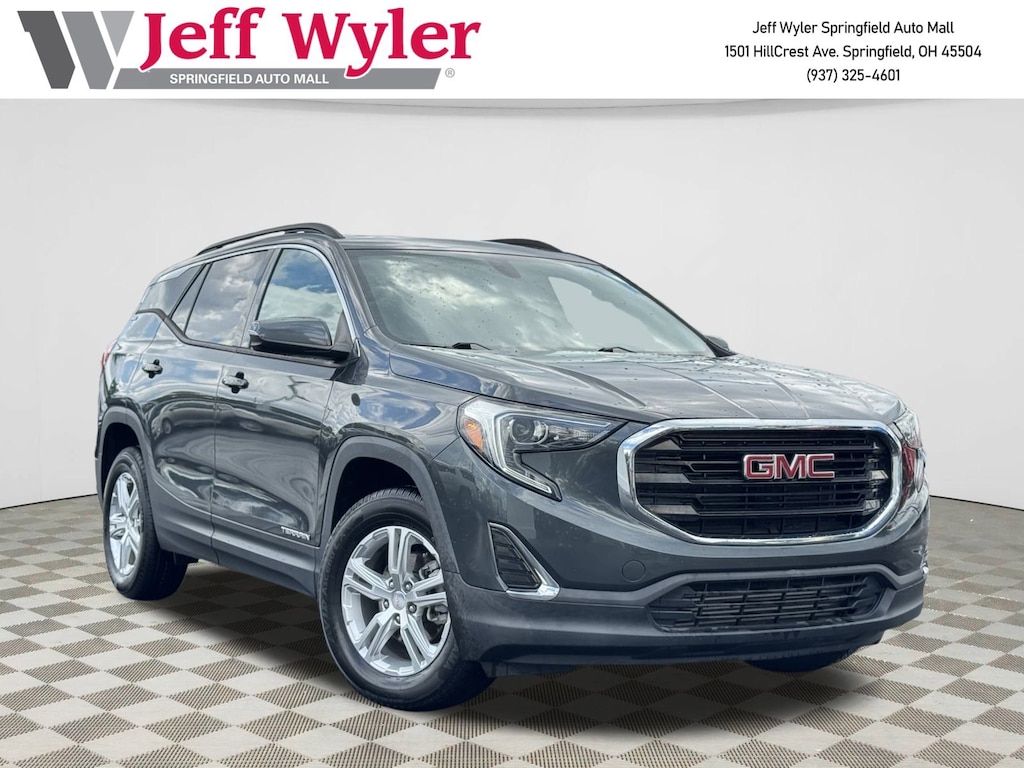 Jeff Wyler Springfield Auto Mall is excited to offer this good-looking 2018 GMC Terrain SLE in Graphite Gray Metallic. Well equipped with: Driver Alert Package I (Lane Change Alert w/Side Blind Zone Alert, Outside Heated Power-Adjustable Mirrors, Rear Cross-Traffic Alert, and Rear Park Assist & Safety Alert Seat), Driver Convenience Package (8-Way Power Driver Seat Adjuster, Driver & Front Passenger Heated Seats, Dual-Zone Automatic Climate Control, Power Driver Lumbar Control, Remote Start, and Roof-Mounted Luggage Rack Black Side Rails), Infotainment Package I (110-Volt Power Outlet, 2 USB Data Ports, 4.2" Multi-Color Enhanced Driver Information Screen, Radio: GMC Infotainment Audio System w/Navigation, SD Card Reader, and SiriusXM Satellite Radio), Preferred Equipment Group 3SB (Diesel B20 Fuel, Electric Auxiliary Cabin Heater, and Power Programmable Rear Liftgate), 2 USB Data Ports w/Auxiliary Input Jack, 2.89 Axle Ratio, 4-Way Manual Front Passenger Seat, 4-Wheel Disc Brakes, 6 Speakers, 6-Speaker Audio System Feature, ABS brakes, Air Conditioning, Alloy wheels, AM/FM radio, Apple CarPlay/Android Auto, Auto-dimming Rear-View mirror, Automatic temperature control, Bluetooth® For Phone, Brake assist, Bumpers: body-color, Compass, Delay-off headlights, Driver door bin, Driver vanity mirror, Dual front impact airbags, Dual front side impact airbags, Electronic Stability Control, Emergency communication system: OnStar Guidance, Exterior Parking Camera Rear, Four wheel independent suspension, Front anti-roll bar, Front Bucket Seats, Front Center Armrest, Front dual zone A/C, Front reading lights, Fully automatic headlights, Heated door mirrors, Heated front seats, High-Intensity Discharge Headlights, Illuminated entry, Low tire pressure warning, Occupant sensing airbag, Outside temperature display, Overhead airbag, Overhead console, Panic alarm, Passenger door bin, Passenger vanity mirror, Power door mirrors, Power driver seat, Power Liftgate, Power steering, Power windows, Premium Cloth Seat Trim, Radio data system, Radio: GMC Infotainment Audio System w/7" Display, Rear anti-roll bar, Rear seat center armrest, Rear window defroster, Rear window wiper, Remote keyless entry, Roof rack: rails only, Security system, Skyscape Power Sunroof w/Power Sunscreen, Speed control, Speed-sensing steering, Split folding rear seat, Spoiler, Steering wheel mounted audio controls, Tachometer, Telescoping steering wheel, Tilt steering wheel, Traction control, Trip computer, Variably intermittent wipers, and Wheels: 17" x 7" Silver Painted Aluminum. Ask about available certifications. Used vehicles 10 years of age or newer with less than 100,000 miles are eligible for the Wyler Assurance Program, but eligible vehicles must pass our reconditioning process and multi-point inspection. Provided the vehicle passes inspection, vehicles will be eligible for the 6 month/6,000 mile limited warranty. The 6 month/6,000 mile limited warranty is NOT available on AS-IS vehicles, wholesale vehicles, lease buyback/pass-thru vehicles or un-inspected vehicles. Note that this program can also apply to vehicles where the remaining factory coverage is less than 6 months or 6,000 miles. Please check the Federal Trade Commission (FTC) Buyers guide on the vehicle for full details as to whether or not warranty coverage may apply. Contact Dealer for additional details. The Wyler Assurance 6 month/6,000 Mile limited warranty ends 6 months from the date of the Retail Purchase Agreement (BUYERS ORDER) or when the vehicle's odometer registers 6,000 additional miles to the mileage listed on the BUYERS ORDER, whichever comes first. Your Deductible - The warranty holder on your contract pays the first $100 of each covered repair.