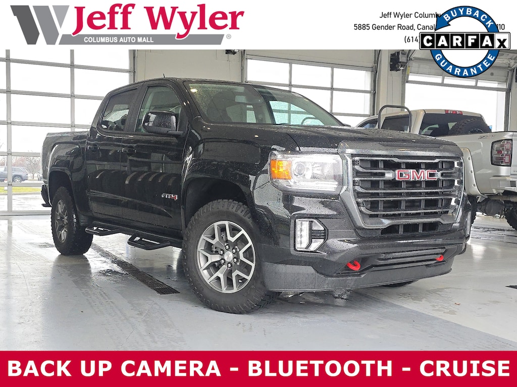 2022 GMC Canyon Onyx Black V6 8-Speed Automatic AT4 w/Leather 4WD 4WD. Clean CARFAX.Odometer is 18403 miles below market average!Come visit the all new Jeff Wyler Chevrolet of Columbus the official Home of the Fresh Start Program! See how easy it is drive your new vehicle home today.