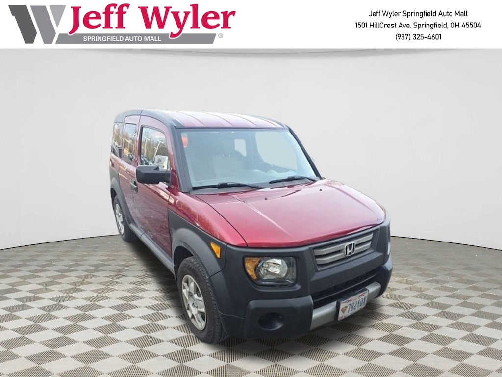 Jeff Wyler Springfield Auto Mall is honored to offer this fantastic-looking 2008 Honda Element LX in Red. Well equipped with: 16" Wheels w/Full Covers, 4 Speakers, 4-Wheel Disc Brakes, 4.50 Axle Ratio, ABS brakes, Air Conditioning, AM/FM radio, AM/FM/CD Audio System w/4 Speakers, Brake assist, CD player, Driver door bin, Dual front impact airbags, Dual front side impact airbags, Electronic Stability Control, Four wheel independent suspension, Front anti-roll bar, Front Bucket Seats, Illuminated entry, Low tire pressure warning, Occupant sensing airbag, Overhead airbag, Panic alarm, Passenger door bin, Power door mirrors, Power steering, Power windows, Premium Cloth Seat Trim, Rear anti-roll bar, Rear window defroster, Rear window wiper, Remote keyless entry, Speed control, Speed-sensing steering, Split folding rear seat, Tachometer, Tilt steering wheel, and Traction control. Awards: * 2008 KBB.com Brand Image AwardsKelley Blue Book Brand Image Awards are based on the Brand Watch(tm) study from Kelley Blue Book Market Intelligence. Award calculated among non-luxury shoppers. For more information, visit www.kbb.com. Kelley Blue Book is a registered trademark of Kelley Blue Book Co., Inc. Reviews: * If you love traveling the great outdoors and need a smart, affordable vehicle to transport you and your many pieces of gear without hassle, the 2008 Honda Element will work for you. Source: KBB.comAsk about available certifications. Used vehicles 10 years of age or newer with less than 100,000 miles are eligible for the Wyler Assurance Program, but eligible vehicles must pass our reconditioning process and multi-point inspection. Provided the vehicle passes inspection, vehicles will be eligible for the 6 month/6,000 mile limited warranty. The 6 month/6,000 mile limited warranty is NOT available on AS-IS vehicles, wholesale vehicles, lease buyback/pass-thru vehicles or un-inspected vehicles. Note that this program can also apply to vehicles where the remaining factory coverage is less than 6 months or 6,000 miles. Please check the Federal Trade Commission (FTC) Buyers guide on the vehicle for full details as to whether or not warranty coverage may apply. Contact Dealer for additional details. The Wyler Assurance 6 month/6,000 Mile limited warranty ends 6 months from the date of the Retail Purchase Agreement (BUYERS ORDER) or when the vehicle's odometer registers 6,000 additional miles to the mileage listed on the BUYERS ORDER, whichever comes first. Your Deductible - The warranty holder on your contract pays the first $100 of each covered repair.