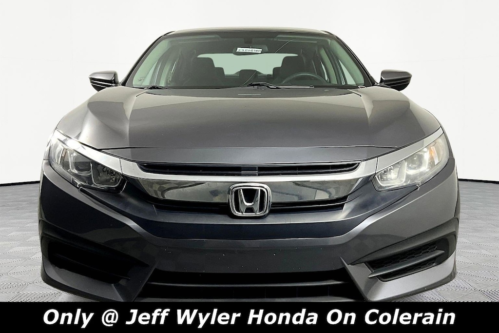 Jeff Wyler Honda of Colerain is honored to offer this good-looking 2016 Honda Civic LX in Modern Steel Metallic. Well equipped with: 16" Wheels w/Full Covers, 4 Speakers, 4-Wheel Disc Brakes, ABS brakes, Air Conditioning, AM/FM radio, Automatic temperature control, Brake assist, Bumpers: body-color, Cloth Seat Trim, Compass, Delay-off headlights, Driver door bin, Driver vanity mirror, Dual front impact airbags, Dual front side impact airbags, Electronic Stability Control, Exterior Parking Camera Rear, Four wheel independent suspension, Front anti-roll bar, Front Bucket Seats, Front Center Armrest, Front reading lights, Fully automatic headlights, Illuminated entry, Low tire pressure warning, Occupant sensing airbag, Outside temperature display, Overhead airbag, Panic alarm, Passenger door bin, Passenger vanity mirror, Power door mirrors, Power steering, Power windows, Radio data system, Radio: 160-Watt AM/FM Audio System, Rear anti-roll bar, Rear window defroster, Reclining Front Bucket Seats, Remote keyless entry, Security system, Speed control, Speed-sensing steering, Steering wheel mounted audio controls, Tachometer, Telescoping steering wheel, Tilt steering wheel, and Traction control.