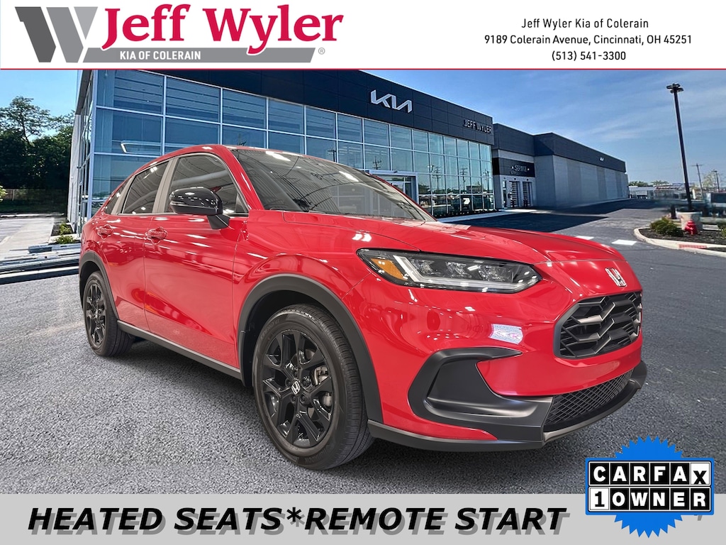Jeff Wyler Kia of Colerain is pumped up to offer this superb 2025 Honda HR-V Sport in Milano Red. 18" Gloss Black Alloy Wheels, 180-Watt Audio System with 6 Speakers, 4-Wheel Disc Brakes, 5.436 Axle Ratio, 6 Speakers, ABS brakes, Adaptive Cruise Control: Adaptive Cruise Control (ACC) with Low-Speed Follow, Air Conditioning, Alloy wheels, AM/FM radio, Apple CarPlay/Android Auto, Auto High-beam Headlights, Automatic temperature control, Blind Spot Information (BSI) System warning, Brake assist, Bumpers: body-color, Cloth Seat Trim, Delay-off headlights, Driver door bin, Driver vanity mirror, Dual front impact airbags, Dual front side impact airbags, Electronic Stability Control, Exterior Parking Camera Rear, Four wheel independent suspension, Front anti-roll bar, Front Bucket Seats, Front Center Armrest, Front reading lights, Fully automatic headlights, Heated door mirrors, Heated Front Bucket Seats, Heated front seats, Illuminated entry, Knee airbag, Leather Shift Knob, Leather steering wheel, Low tire pressure warning, Occupant sensing airbag, Outside temperature display, Overhead airbag, Panic alarm, Passenger door bin, Passenger vanity mirror, Power door mirrors, Power steering, Power windows, Radio data system, Rear anti-roll bar, Rear reading lights, Rear side impact airbag, Rear window defroster, Rear window wiper, Remote keyless entry, Security system, Speed control, Speed-sensing steering, Split folding rear seat, Spoiler, Steering wheel mounted audio controls, Tachometer, Telescoping steering wheel, Tilt steering wheel, Traction control, Trip computer, Turn signal indicator mirrors, and Variably intermittent wipers Our PRE-OWNED vehicles are put through a rigorous 167- POINT QUALITY ASSURANCE INSPECTION along with an average amount of over $1,400.00 SPENT to recondition each vehicle so we can be sure to deliver you the highest quality vehicle like you deserve! ***ONLINE PRICE DOES NOT INCLUDE WYLER FAMILY FIRST PACKAGE***
