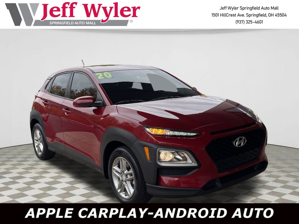 Jeff Wyler Springfield Auto Mall is excited to offer this terrific 2020 Hyundai Kona SE in Pulse Red. Well equipped with: Option Group 01, 3.510 Axle Ratio, 4-Wheel Disc Brakes, 6 Speakers, ABS brakes, Air Conditioning, Alloy wheels, AM/FM radio, Apple CarPlay & Android Auto, Brake assist, Bumpers: body-color, Cargo Net, Carpeted Floor Mats, Cloth Seat Trim, Delay-off headlights, Driver door bin, Driver vanity mirror, Dual front impact airbags, Dual front side impact airbags, Electronic Stability Control, Exterior Parking Camera Rear, Front anti-roll bar, Front Bucket Seats, Front Center Armrest, Front reading lights, Front wheel independent suspension, Fully automatic headlights, Illuminated entry, Low tire pressure warning, Occupant sensing airbag, Overhead airbag, Overhead console, Panic alarm, Passenger door bin, Passenger vanity mirror, Power door mirrors, Power steering, Power windows, Radio: AM/FM/MP3 Audio System, Rear seat center armrest, Rear window defroster, Rear window wiper, Remote keyless entry, Security system, Speed control, Speed-sensing steering, Split folding rear seat, Spoiler, Steering wheel mounted audio controls, Tachometer, Telescoping steering wheel, Tilt steering wheel, Traction control, Trip computer, Variably intermittent wipers, and Wheels: 16 x 6.5J Alloy. Awards: * 2020 KBB.com Best Buy Awards * 2020 KBB.com 10 Coolest New Cars Under $20,000 Ask about available certifications. Used vehicles 10 years of age or newer with less than 100,000 miles are eligible for the Wyler Assurance Program, but eligible vehicles must pass our reconditioning process and multi-point inspection. Provided the vehicle passes inspection, vehicles will be eligible for the 6 month/6,000 mile limited warranty. The 6 month/6,000 mile limited warranty is NOT available on AS-IS vehicles, wholesale vehicles, lease buyback/pass-thru vehicles or un-inspected vehicles. Note that this program can also apply to vehicles where the remaining factory coverage is less than 6 months or 6,000 miles. Please check the Federal Trade Commission (FTC) Buyers guide on the vehicle for full details as to whether or not warranty coverage may apply. Contact Dealer for additional details. The Wyler Assurance 6 month/6,000 Mile limited warranty ends 6 months from the date of the Retail Purchase Agreement (BUYERS ORDER) or when the vehicle's odometer registers 6,000 additional miles to the mileage listed on the BUYERS ORDER, whichever comes first. Your Deductible - The warranty holder on your contract pays the first $100 of each covered repair.