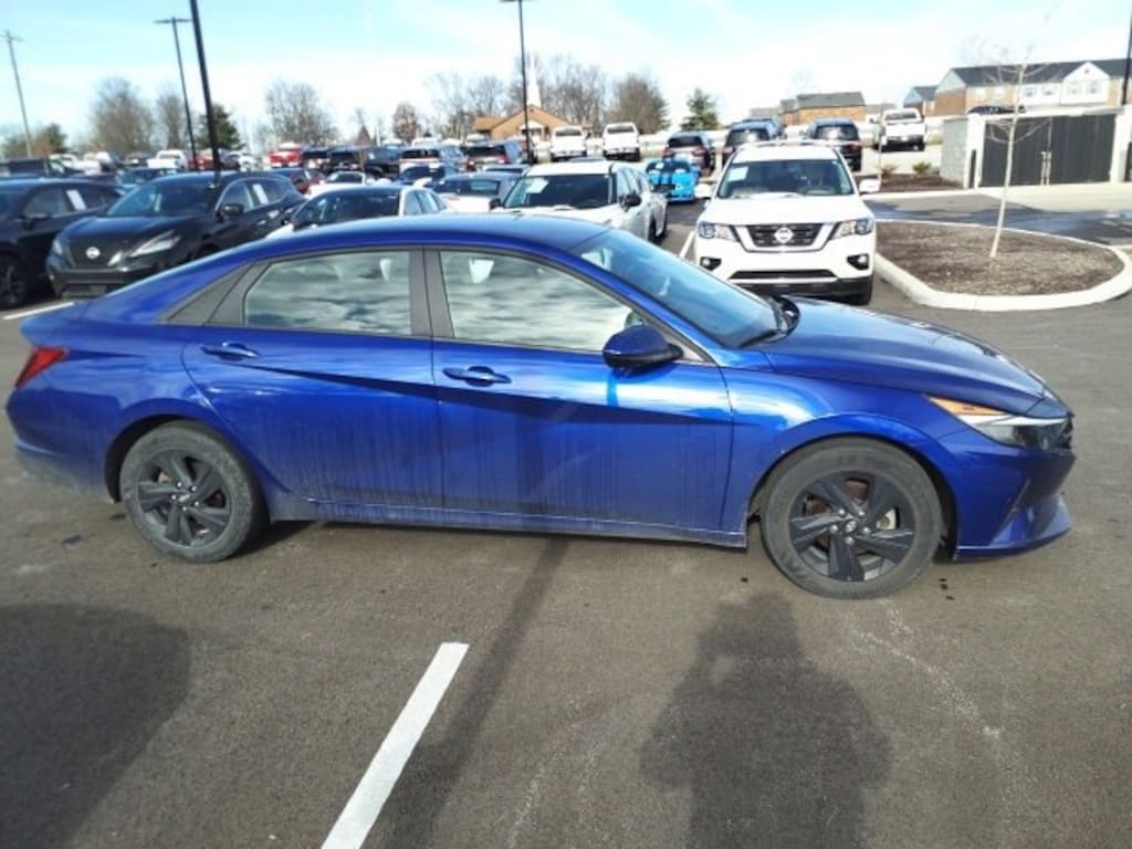 Jeff Wyler Eastgate Auto Mall is honored to offer this terrific 2022 Hyundai Elantra SEL in Intense Blue. Well equipped with: Option Group 01, 16" x 6.5J Alloy Wheels, 4-Wheel Disc Brakes, 6 Speakers, ABS brakes, Air Conditioning, Alloy wheels, AM/FM radio: SiriusXM, Apple CarPlay & Android Auto, Auto High-beam Headlights, Automatic temperature control, Brake assist, Bumpers: body-color, Cargo Net, Carpeted Floor Mats, Cloth Seat Trim, Delay-off headlights, Driver door bin, Driver vanity mirror, Dual front impact airbags, Dual front side impact airbags, Electronic Stability Control, Emergency communication system: Blue Link Connected Car Service (3-year complimentary subscription), Exterior Parking Camera Rear, Front anti-roll bar, Front Bucket Seats, Front Center Armrest, Front dual zone A/C, Front reading lights, Front wheel independent suspension, Fully automatic headlights, Illuminated entry, Low tire pressure warning, Occupant sensing airbag, Outside temperature display, Overhead airbag, Overhead console, Panic alarm, Passenger door bin, Passenger vanity mirror, Power door mirrors, Power steering, Power windows, Radio: AM/FM/HD/SiriusXM Display Audio, Rear Bumper Applique, Rear window defroster, Remote keyless entry, Reversible Cargo Tray, Security system, Speed control, Speed-sensing steering, Steering wheel mounted audio controls, Tachometer, Telescoping steering wheel, Tilt steering wheel, Traction control, Trip computer, and Variably intermittent wipers. Clean CARFAX. Ask about available certifications. Used vehicles 10 years of age or newer with less than 100,000 miles are eligible for the Wyler Assurance Program, but eligible vehicles must pass our reconditioning process and multi-point inspection. Provided the vehicle passes inspection, vehicles will be eligible for the 6 month/6,000 mile limited warranty. The 6 month/6,000 mile limited warranty is NOT available on AS-IS vehicles, wholesale vehicles, lease buyback/pass-thru vehicles or un-inspected vehicles. Note that this program can also apply to vehicles where the remaining factory coverage is less than 6 months or 6,000 miles. Please check the Federal Trade Commission (FTC) Buyers guide on the vehicle for full details as to whether or not warranty coverage may apply. Contact Dealer for additional details. The Wyler Assurance 6 month/6,000 Mile limited warranty ends 6 months from the date of the Retail Purchase Agreement (BUYERS ORDER) or when the vehicle's odometer registers 6,000 additional miles to the mileage listed on the BUYERS ORDER, whichever comes first. Your Deductible - The warranty holder on your contract pays the first $100 of each covered repair.