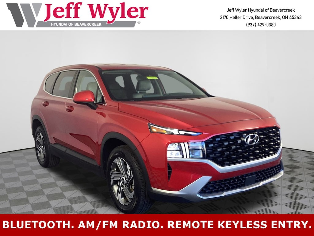 CARFAX One-Owner. Clean CARFAX. Certified. Hyundai Combined Details: * Vehicle History (for Hyundai Certified Used Vehicles program) * Powertrain Limited Warranty: 120 Month/100,000 Mile (whichever comes first) from original in-service date (for Hyundai Certified Used Vehicles program) * Roadside Assistance (for Hyundai Certified Used Vehicles program) * Warranty Deductible: $50 (for Hyundai Certified Used Vehicles program) * 173+ Point Inspection (for Hyundai Certified Used Vehicles program), 117 Point Inspection (for Hyundai Select Used program) * Includes 10-year/Unlimited Mileage Roadside Assistance with Rental Car and Trip Interruption Reimbursement; Please See Dealers for Specific Vehicle Eligibility Requirements. 10-Year/100,000 Mile Hybrid/EV Battery Warranty. 3-Months SiriusXM Trial Subscription. Complimentary 1 Year (Connected Care & Remote Pkgs). (for Hyundai Certified Used Vehicles program), 6 Model Years Old and Newer With 80,000 - 120,000 Miles, 7-10 Model Years Old Vehicles With 120,000 Miles or Less. Powertrain Warranty 90 Days/5,000 Miles, HEV/PHEV Battery Warranty 10 Years/100,000 Miles. Roadside Assistance 90 Days/Unlimited Miles. Rental Car $35/Day Up to 5 Days. 3-Months SiriusXM Trial Subscription. (for Hyundai Select Used program) * Limited Warranty: 60 Month/60,000 Mile (whichever comes first) from original in-service date (for Hyundai Certified Used Vehicles program)Jeff Wyler Hyundai of Beavercreek is delighted to offer this terrific 2023 Hyundai Santa Fe SE in Calypso Red. Well equipped with: Option Group 01, 18" x 7.5J Alloy Wheels, 4-Wheel Disc Brakes, 6 Speakers, ABS brakes, Air Conditioning, Alloy wheels, AM/FM radio, Apple CarPlay & Android Auto, Auto High-beam Headlights, Axle Ratio: 3.798, Brake assist, Bumper Applique, Bumpers: body-color, Carpeted Floor Mats, Delay-off headlights, Driver door bin, Driver vanity mirror, Dual front impact airbags, Dual front side impact airbags, Electronic Stability Control, Exterior Parking Camera Rear, Four wheel independent suspension, Front anti-roll bar, Front Bucket Seats, Front Center Armrest, Front reading lights, Fully automatic headlights, Illuminated entry, Low tire pressure warning, Occupant sensing airbag, Outside temperature display, Overhead airbag, Overhead console, Panic alarm, Passenger door bin, Passenger vanity mirror, Power door mirrors, Power steering, Power windows, Radio: AM/FM Display Audio, Rear anti-roll bar, Rear seat center armrest, Rear window defroster, Rear window wiper, Remote keyless entry, Security system, Speed control, Speed-sensing steering, Split folding rear seat, Spoiler, Stain-Resistant Cloth Seat Trim, Steering wheel mounted audio controls, Tachometer, Telescoping steering wheel, Tilt steering wheel, Traction control, Trip computer, and Variably intermittent wipers.Come see the excitement at Jeff Wyler Hyundai of Beavercreek! Visit us online at www.jeffwylerhyundaiofbeavercreek.com Proudly Serving: Cincinnati, Dayton, Centeville, Ketttering, Moraine,Beavercreek, Xenia,Oakwood, Trotwood, Vandalia, Kettering, Wright Patterson, Riverside, Engelwood, Miamisburg, Huber Heights, Springboro, Brookville, Fairborn, West Carrollton, Yellow Springs, Bellbrook, Springfield Columbus, Hamilton, West Chester, Monroe, Fairfield. PROUDLY SERVING: CINCINNATI, DAYTON,COLUMBUS, LOUISVILLE, LEXINGTON, INDIANAPOLIS,HAMILTON, FLORENCE, ALEXANDRIA, BEAVERCREEK, SPRINGDALE, WEST CHESTER, MONROE, FAIRFIELD, KENWOOD, NEWPORT AND ALL OF GREATER CINCINNATI OHIO, INDIANA, AND NORTHERN KENTUCKY.